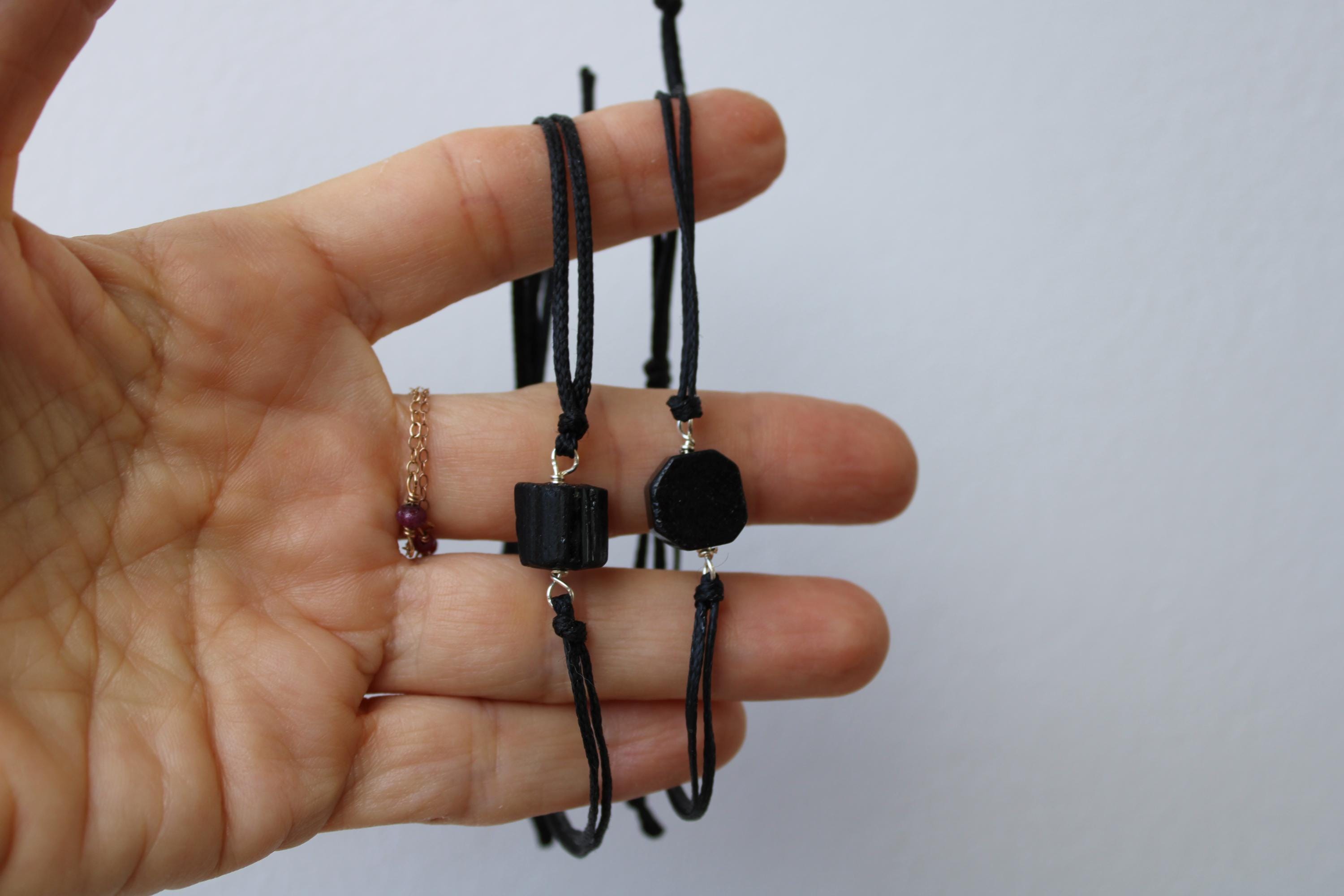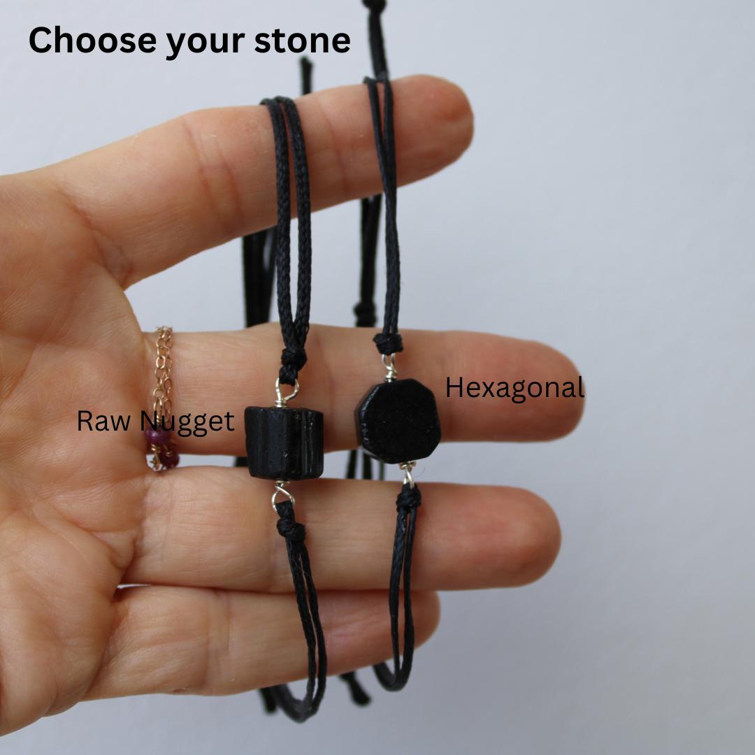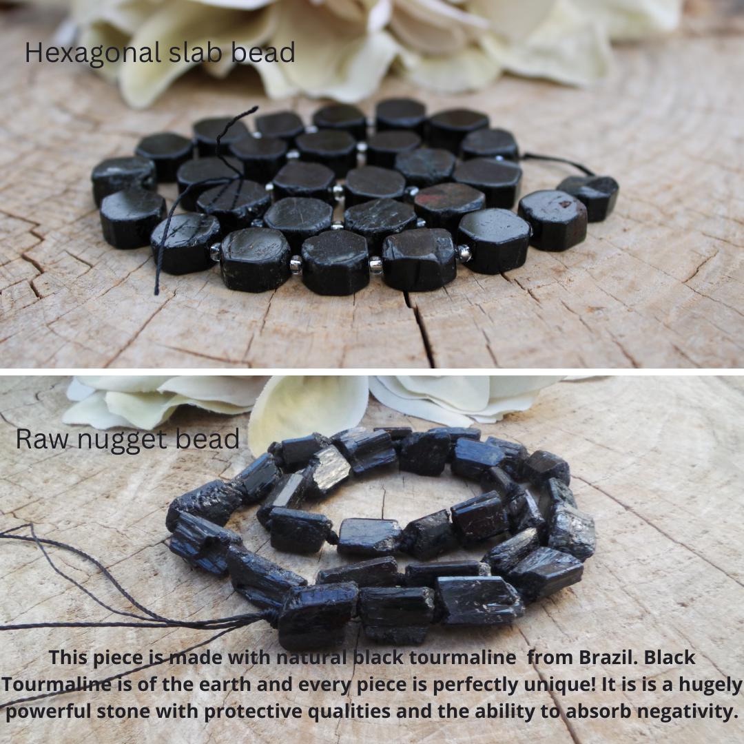 •Made with a natural black tourmaline stone These originate from Brazil and each one is unique. Choose between a hexagonal slab or a raw nugget.