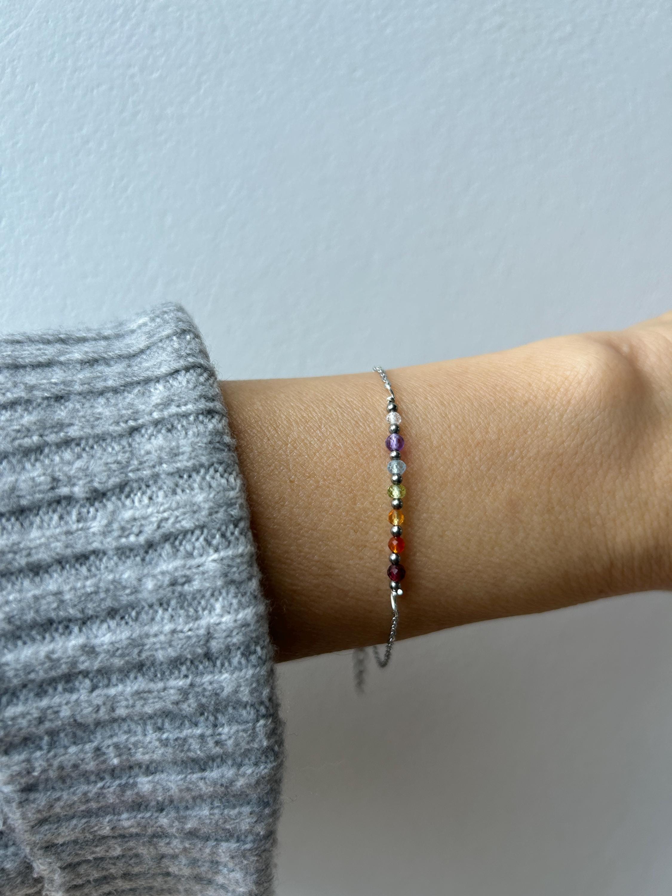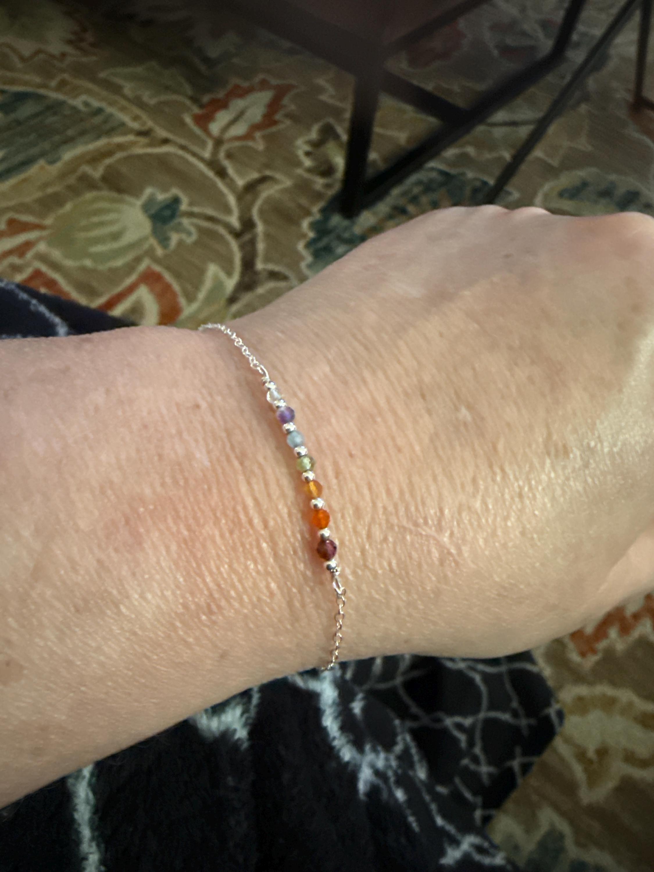 This dainty little bracelet is designed to balance the chakras. Crystals come in two sizes.