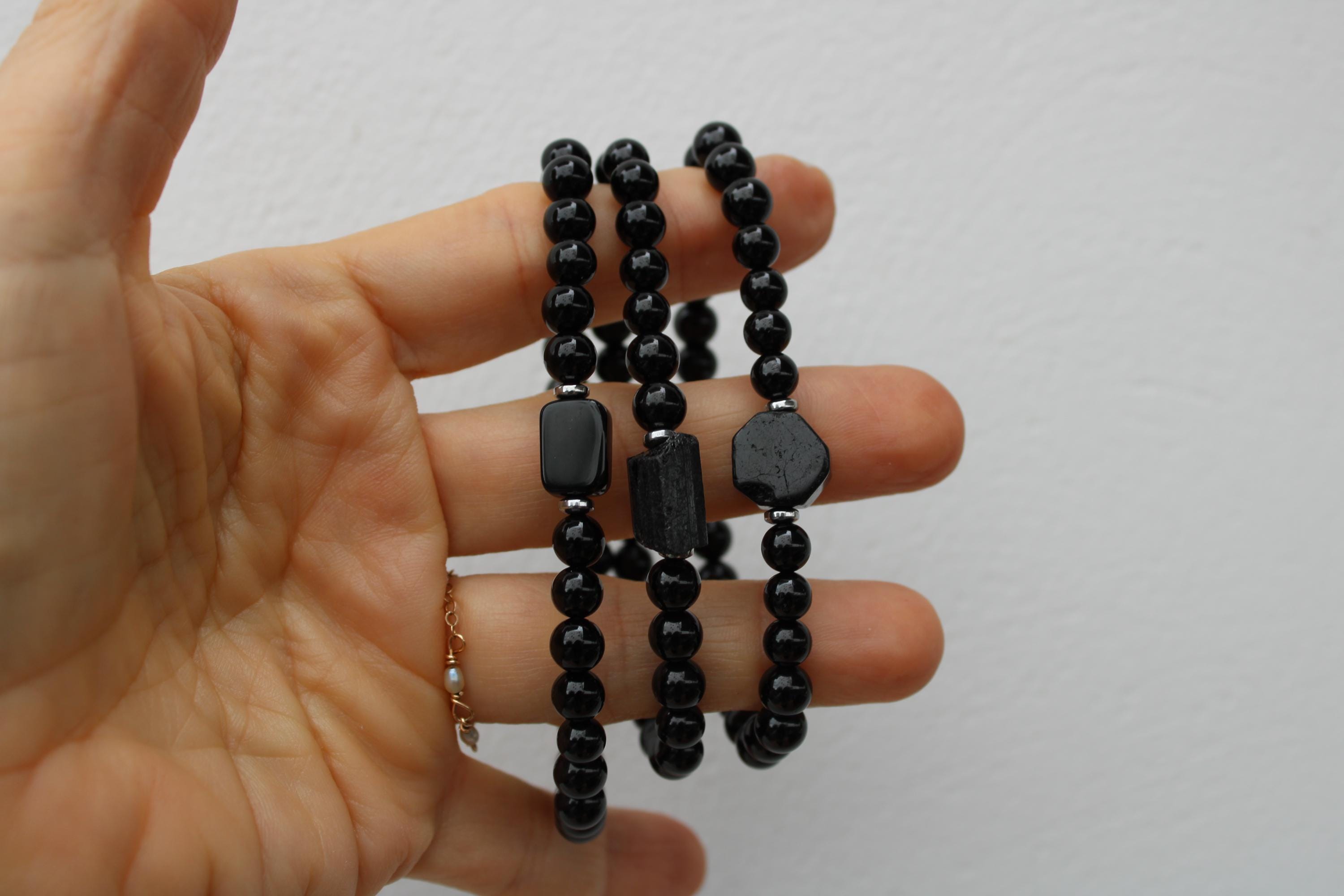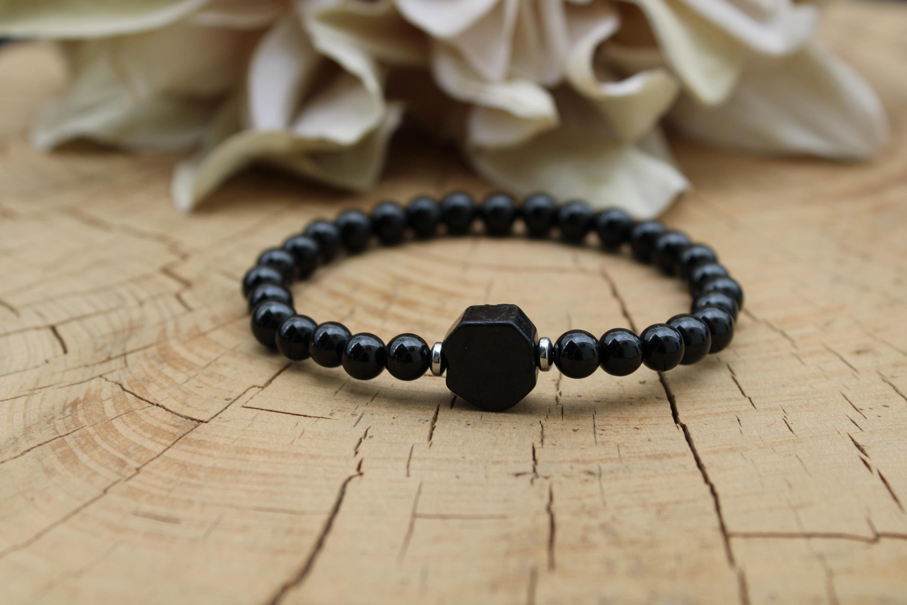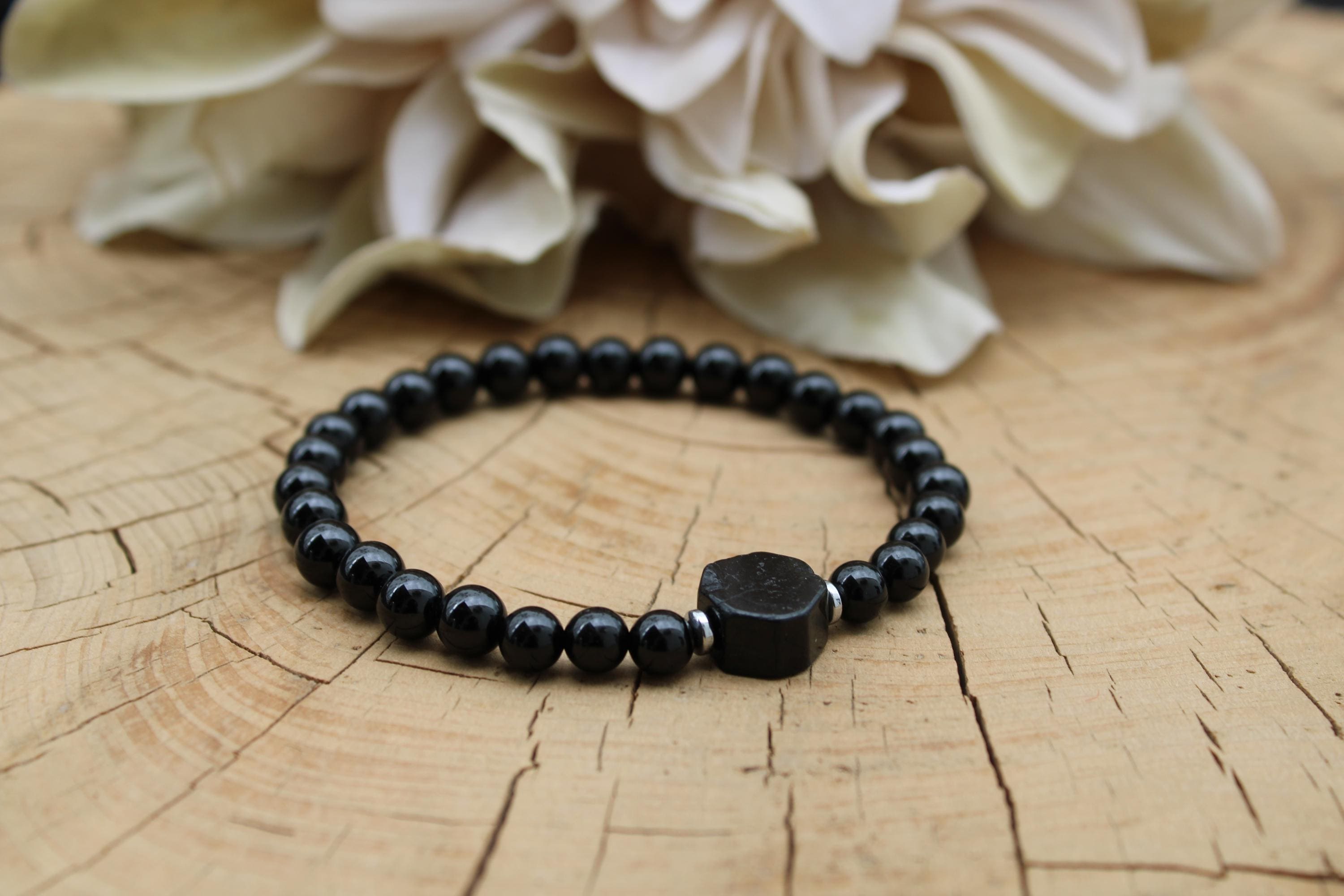This bracelet is made with black tourmaline which is a highly protective stone. This is a unisex piece so please choose the size accordingly.