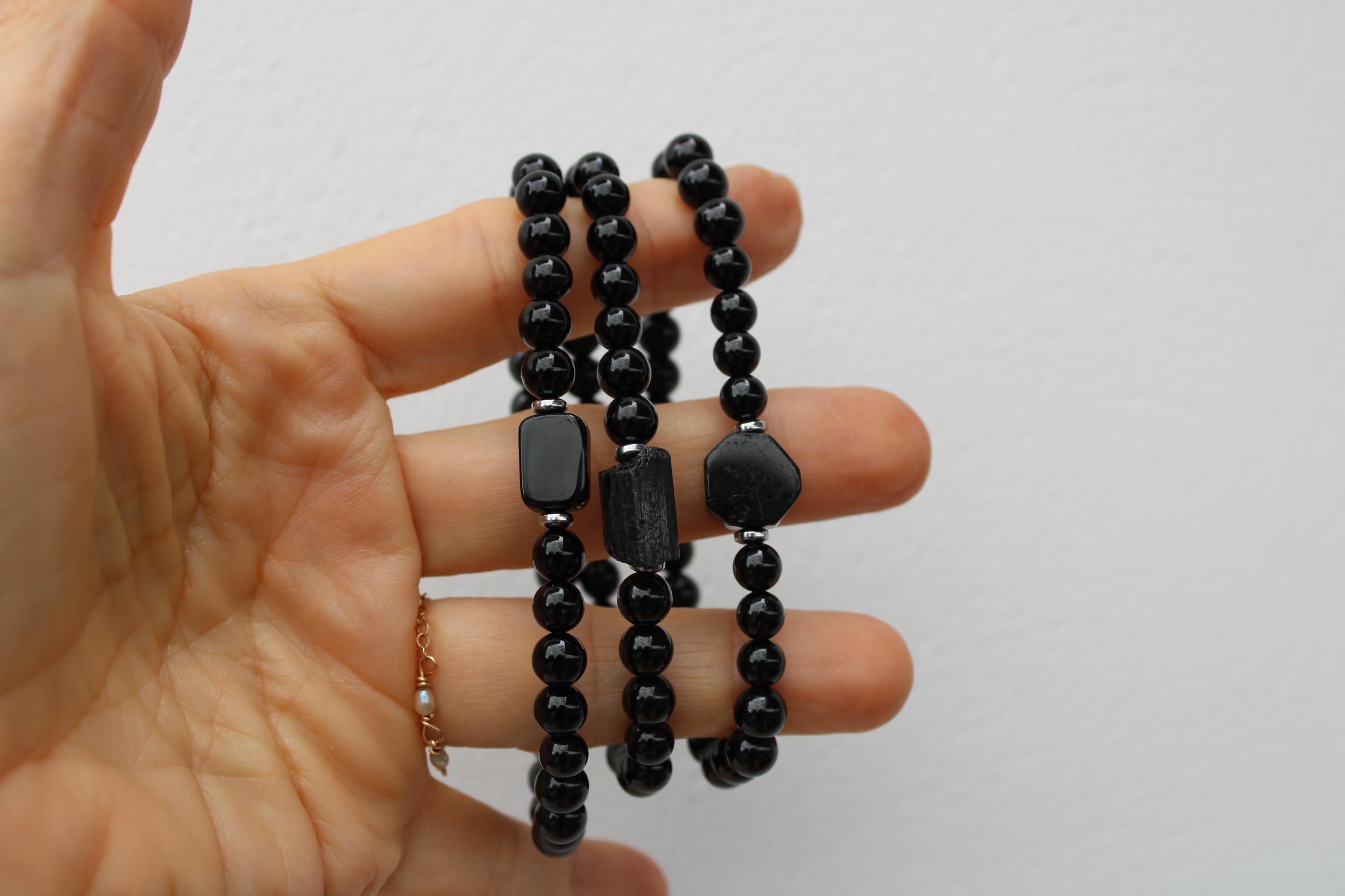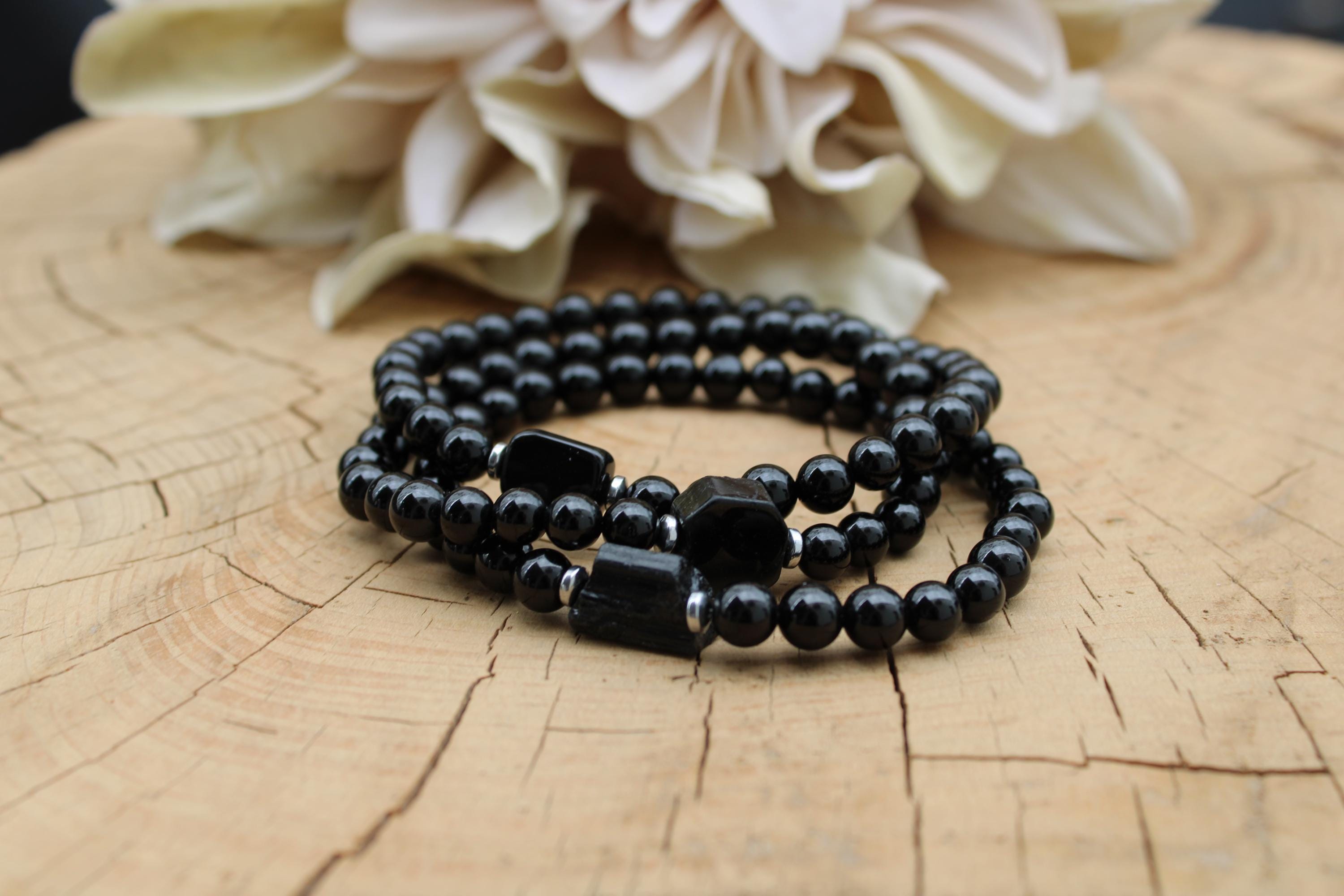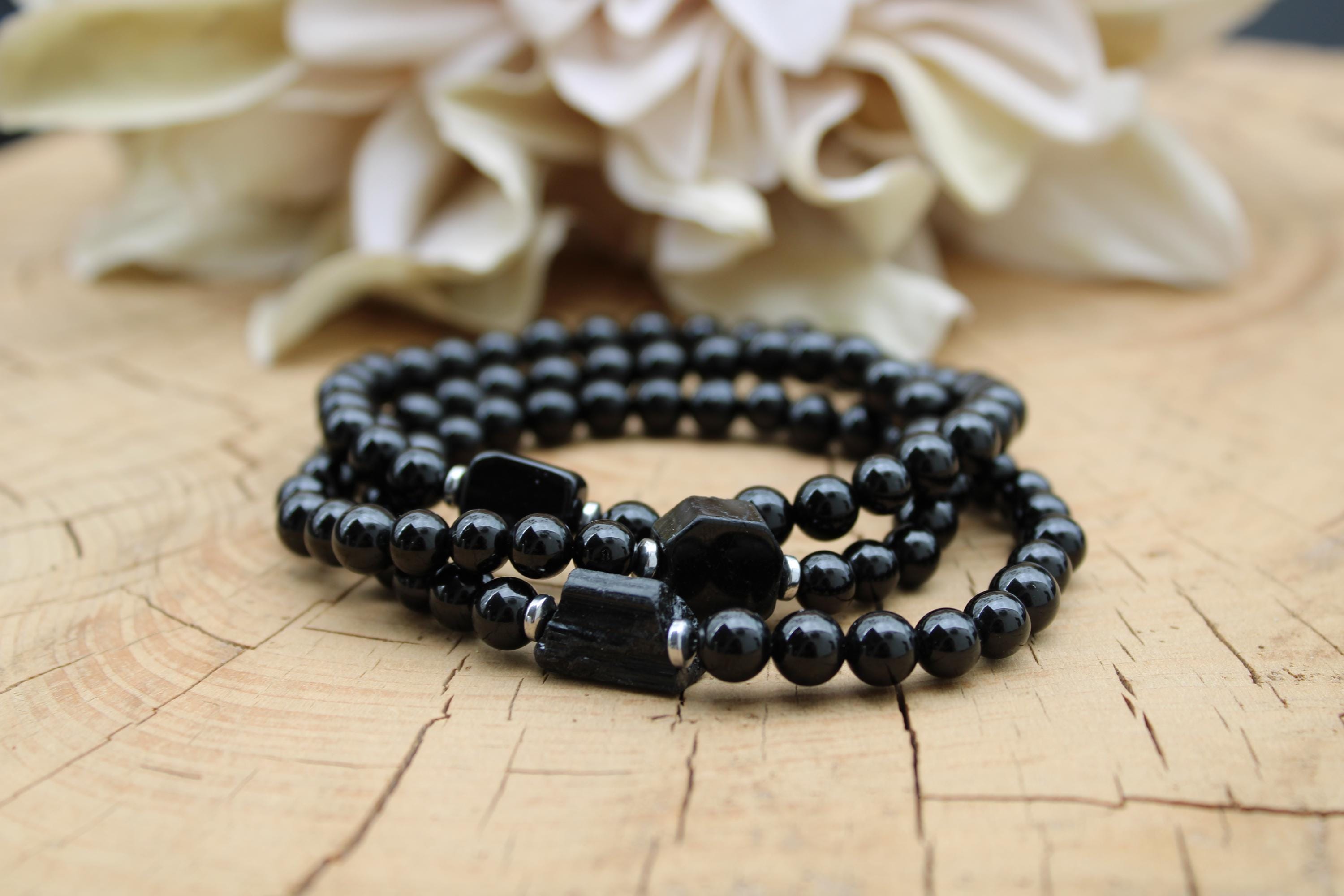 This bracelet is made with black tourmaline which is a highly protective stone. This is a unisex piece so please choose the size accordingly.