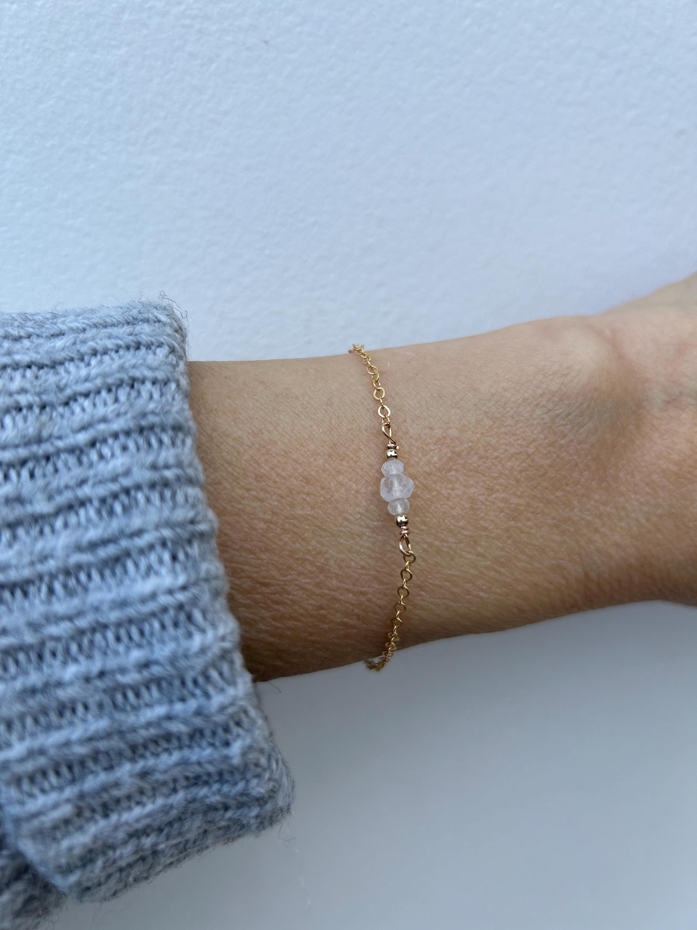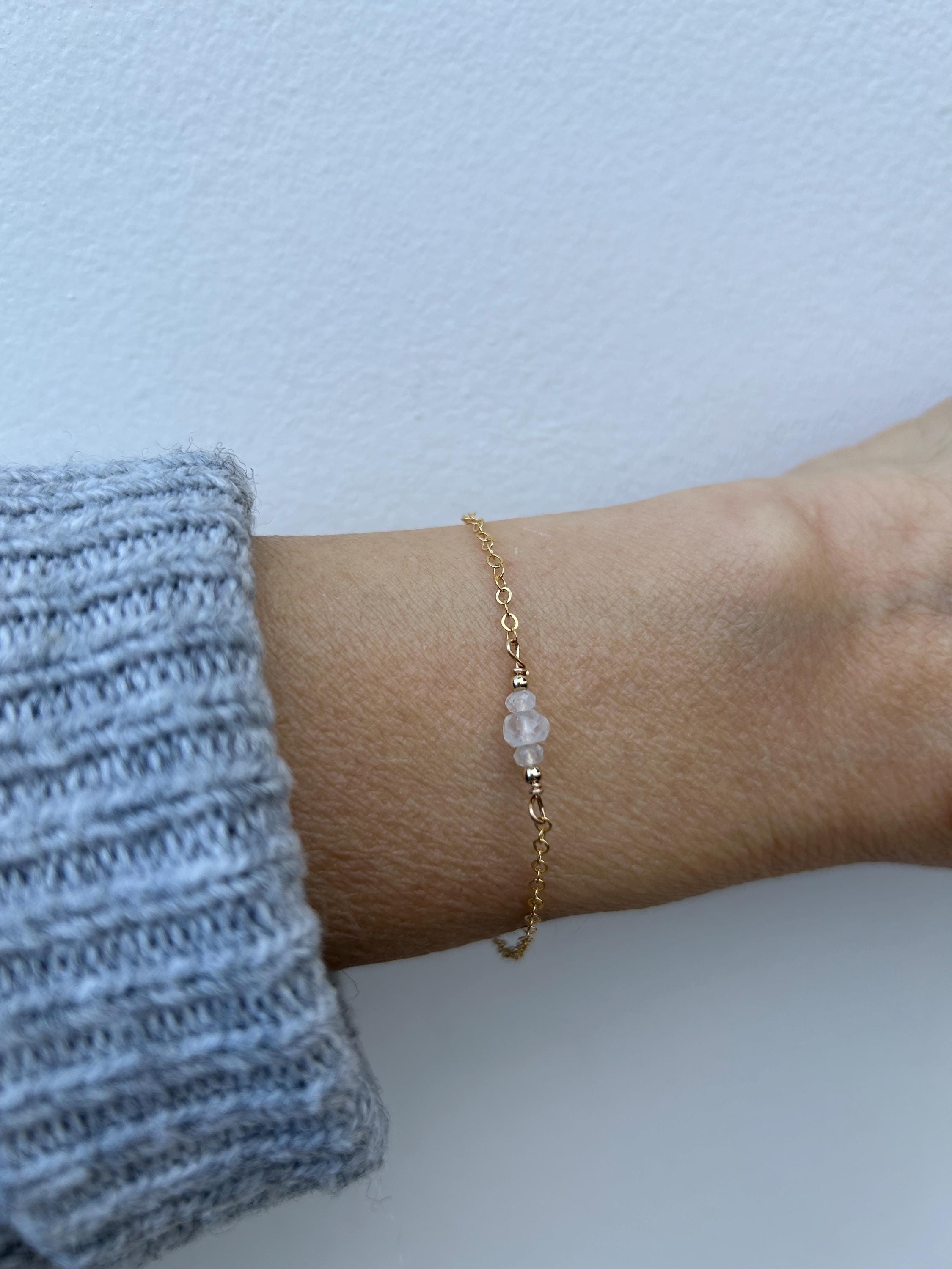 Beautiful crystals are combined with a delicate chain to create this little bracelet. Moonstone is also the birthstone of anyone born in the month of June.