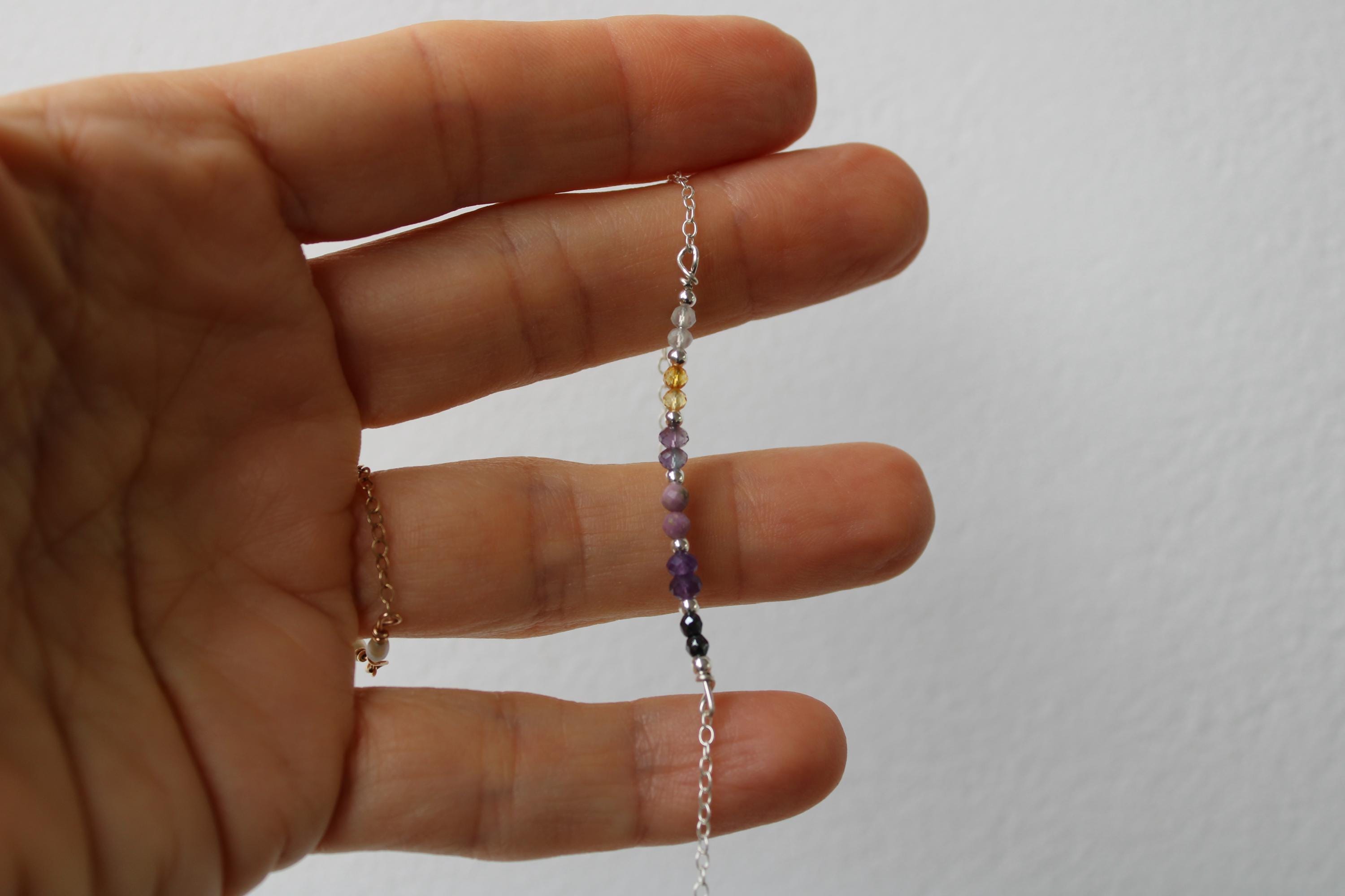 Beautiful crystals are combined with a delicate chain to create this lovely bracelet with powerful metaphysical properties.