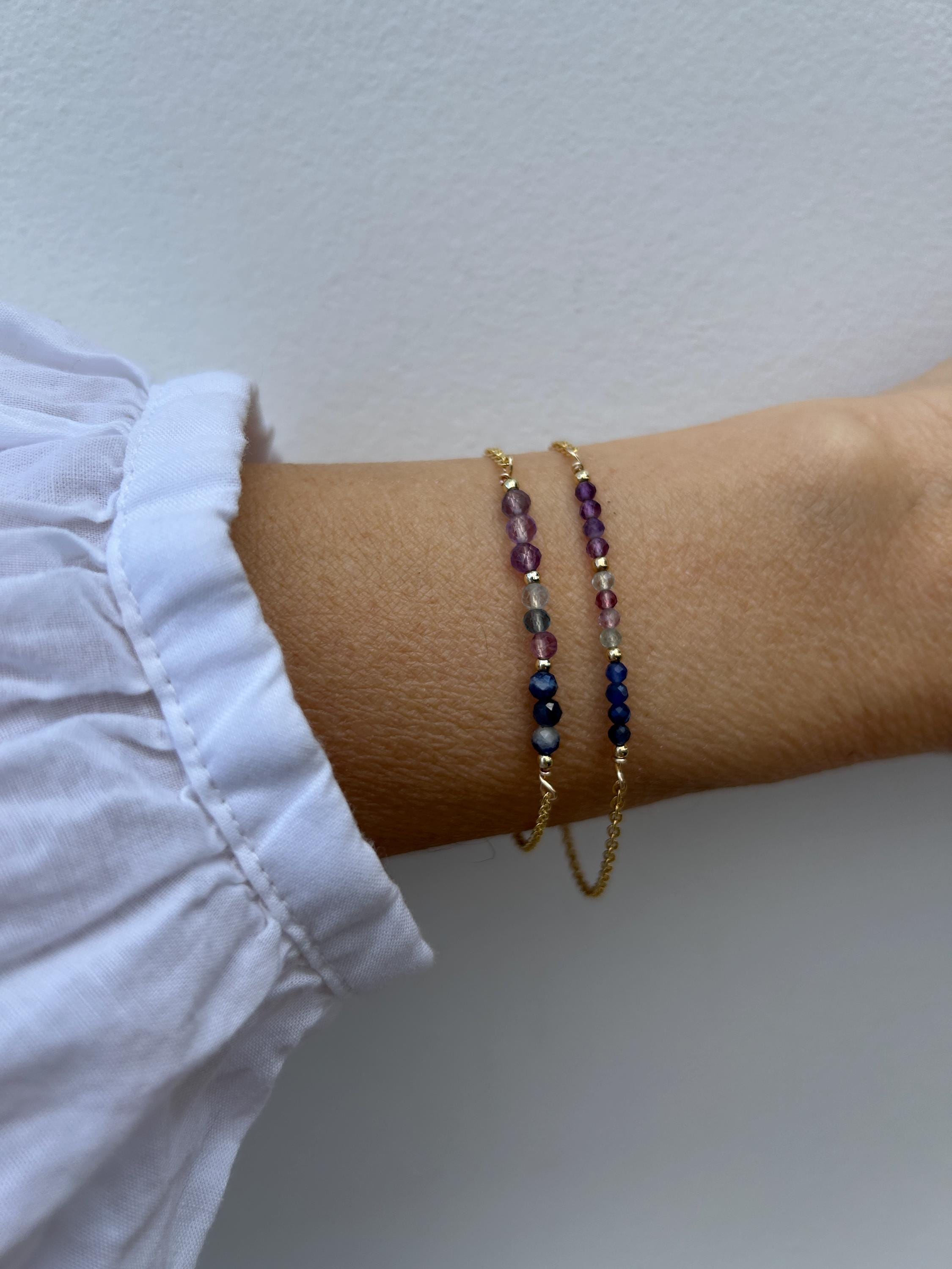 Made with a line up of high quality micro faceted gemstones. These include sodalite, rainbow fluorite and amethyst.
