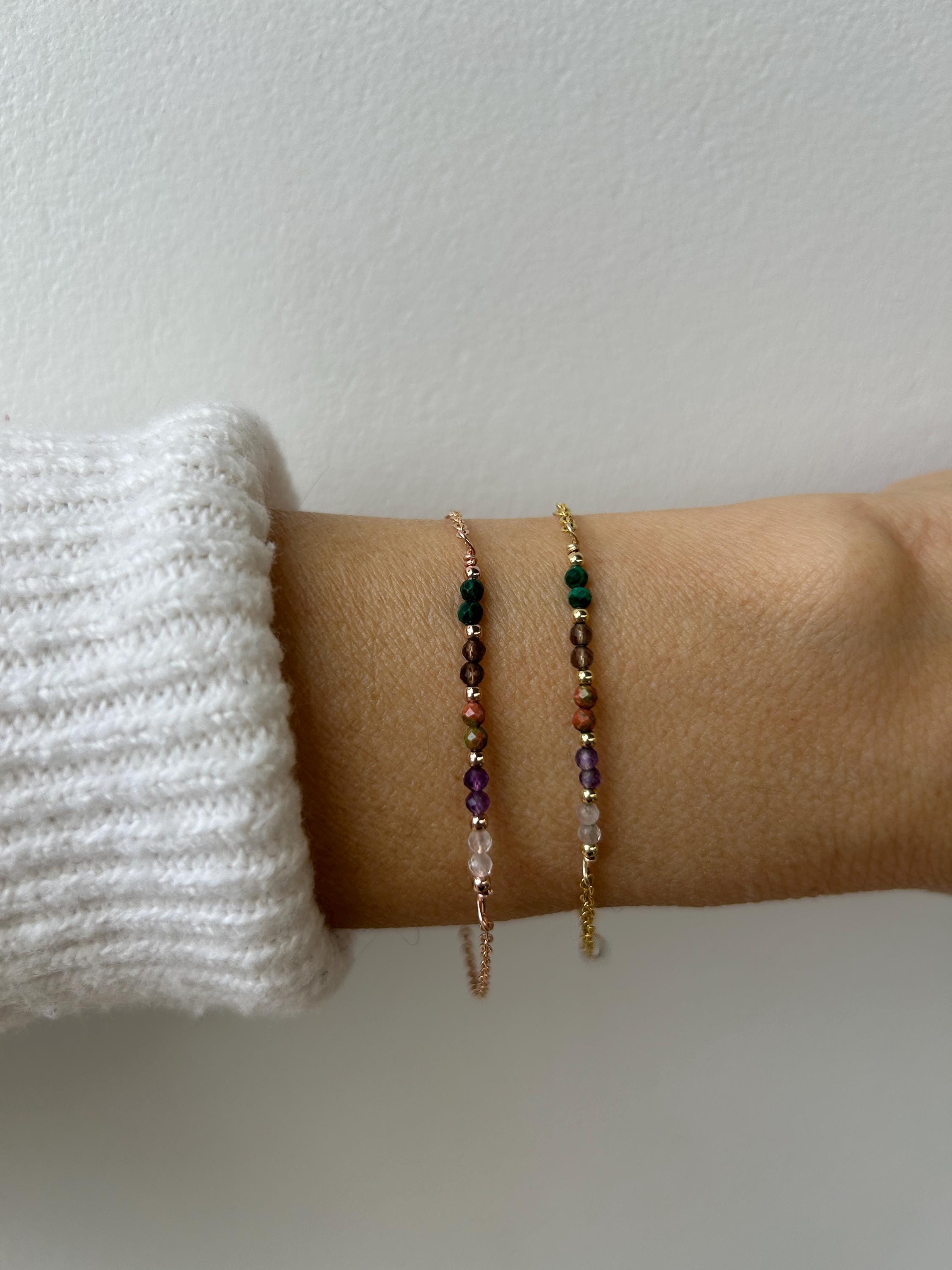 This dainty little bracelet features beautiful gemstones associated with combatting depression and promoting well being and self love.