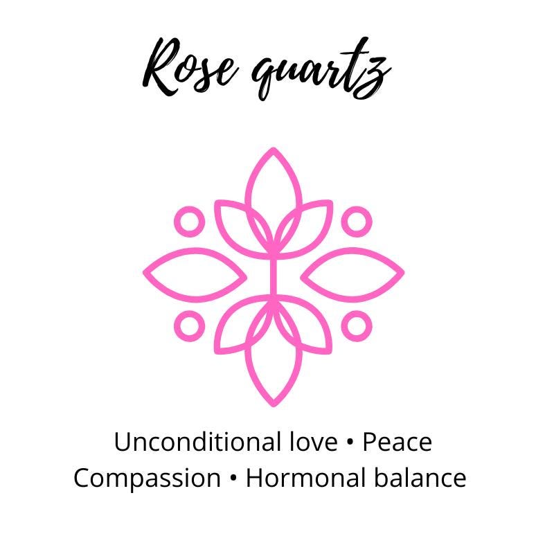 Rose Quartz is the stone of universal love. It restores trust and harmony in relationships, encouraging unconditional love. Rose Quartz purifies and opens the heart at all levels to promote love, self-love, friendship, deep inner healing and feelings of peace.