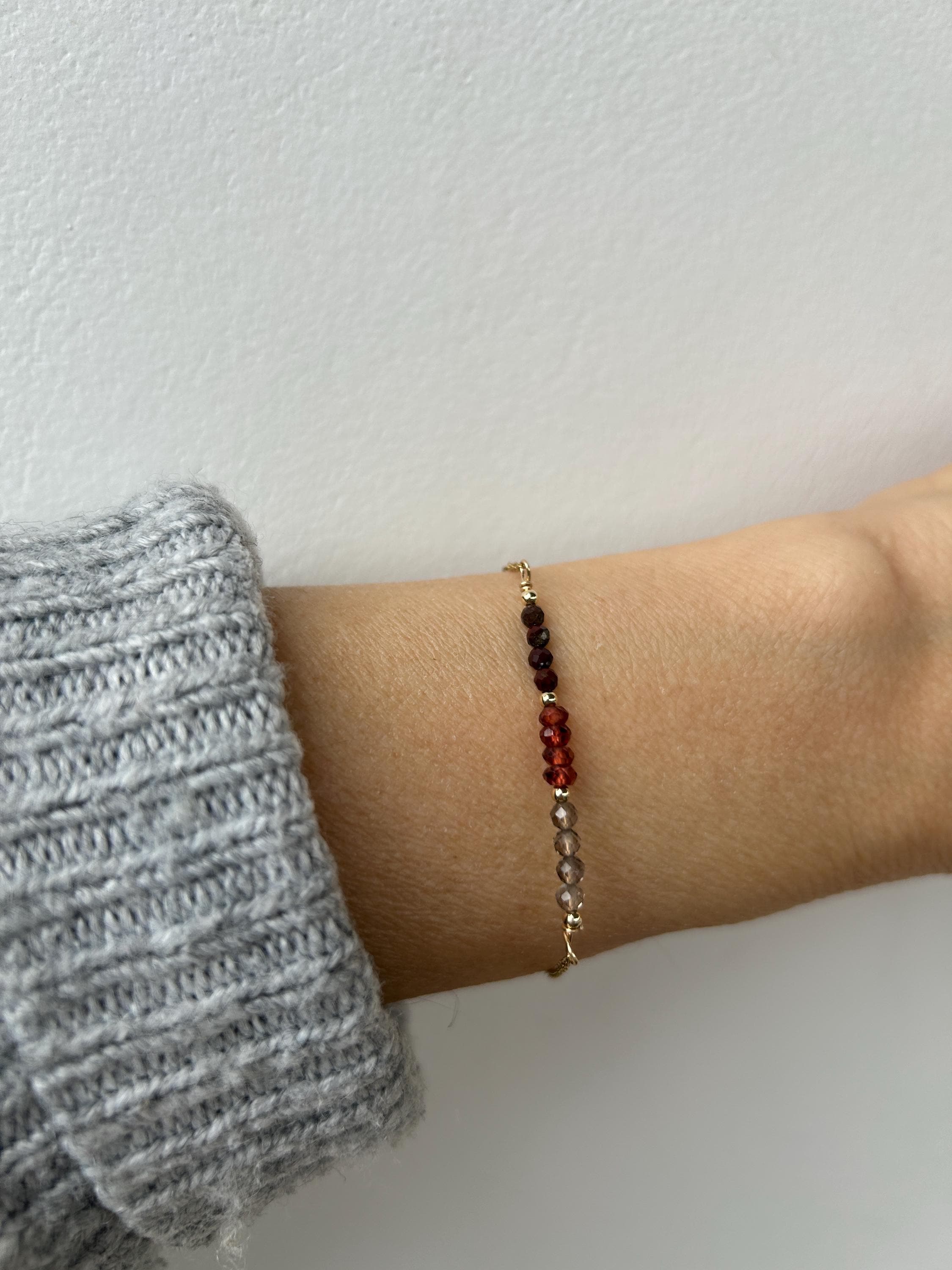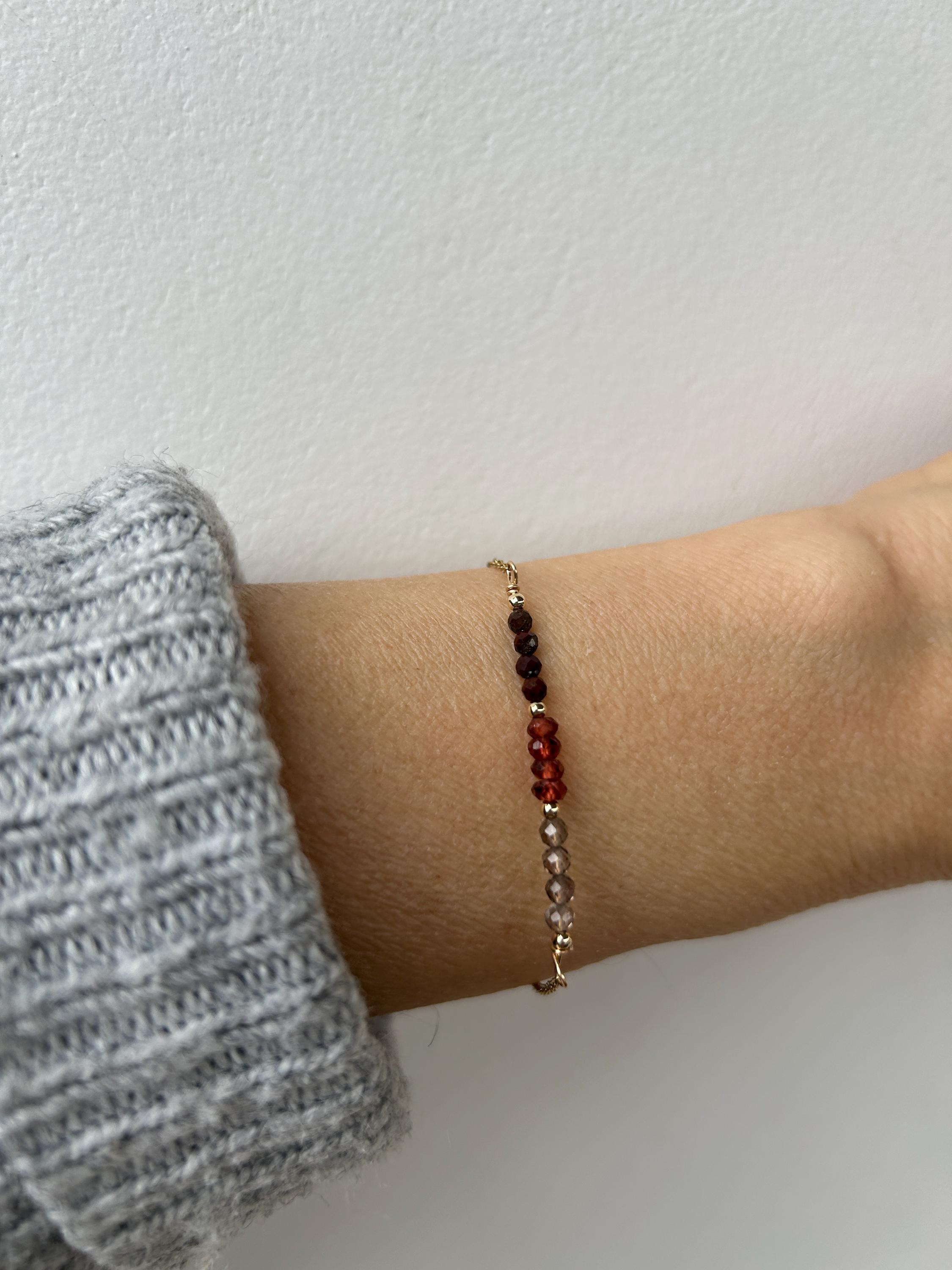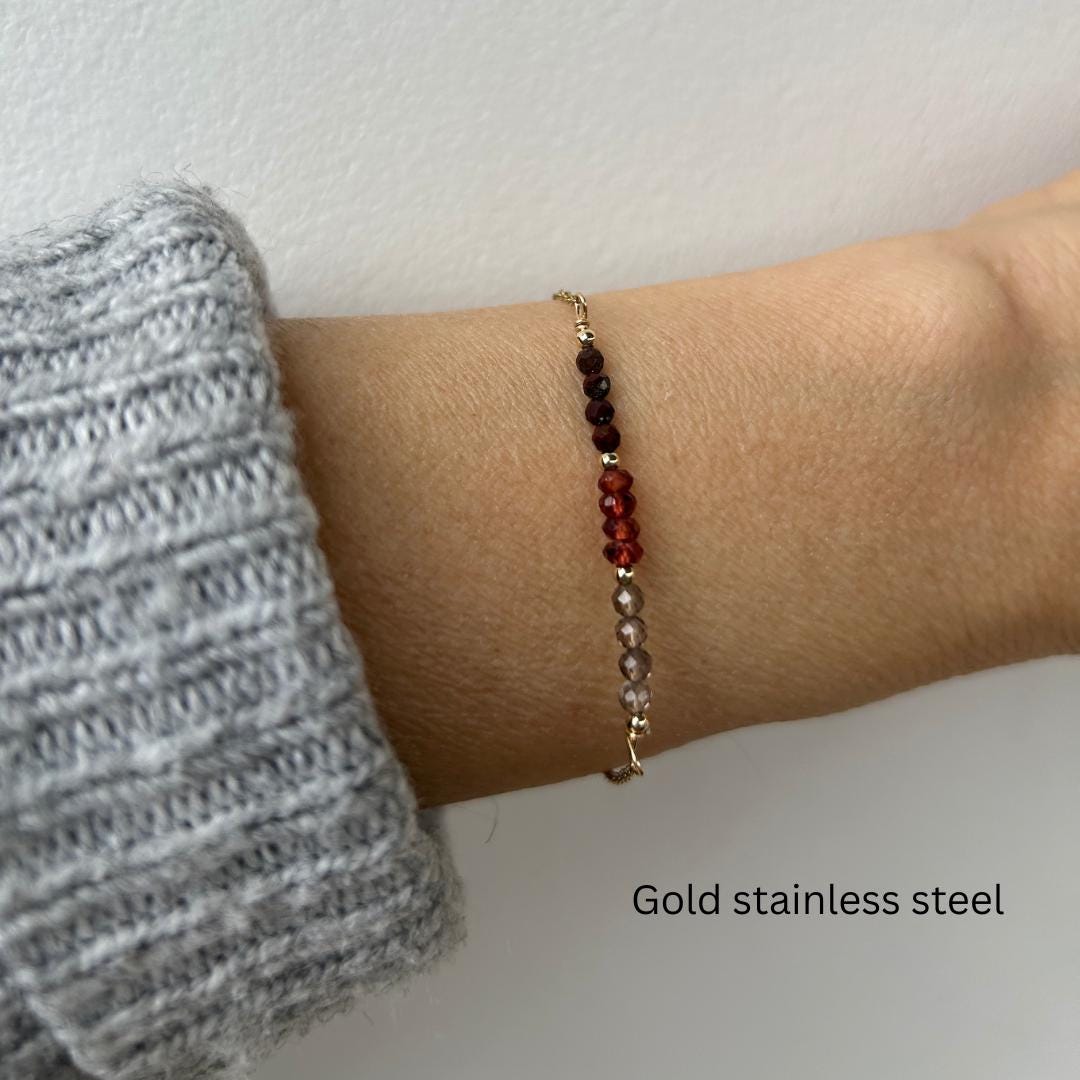 •Made with a line up of high quality micro faceted gemstones in between seamless gold/rosegold filled/sterling silver or stainless steel beads.