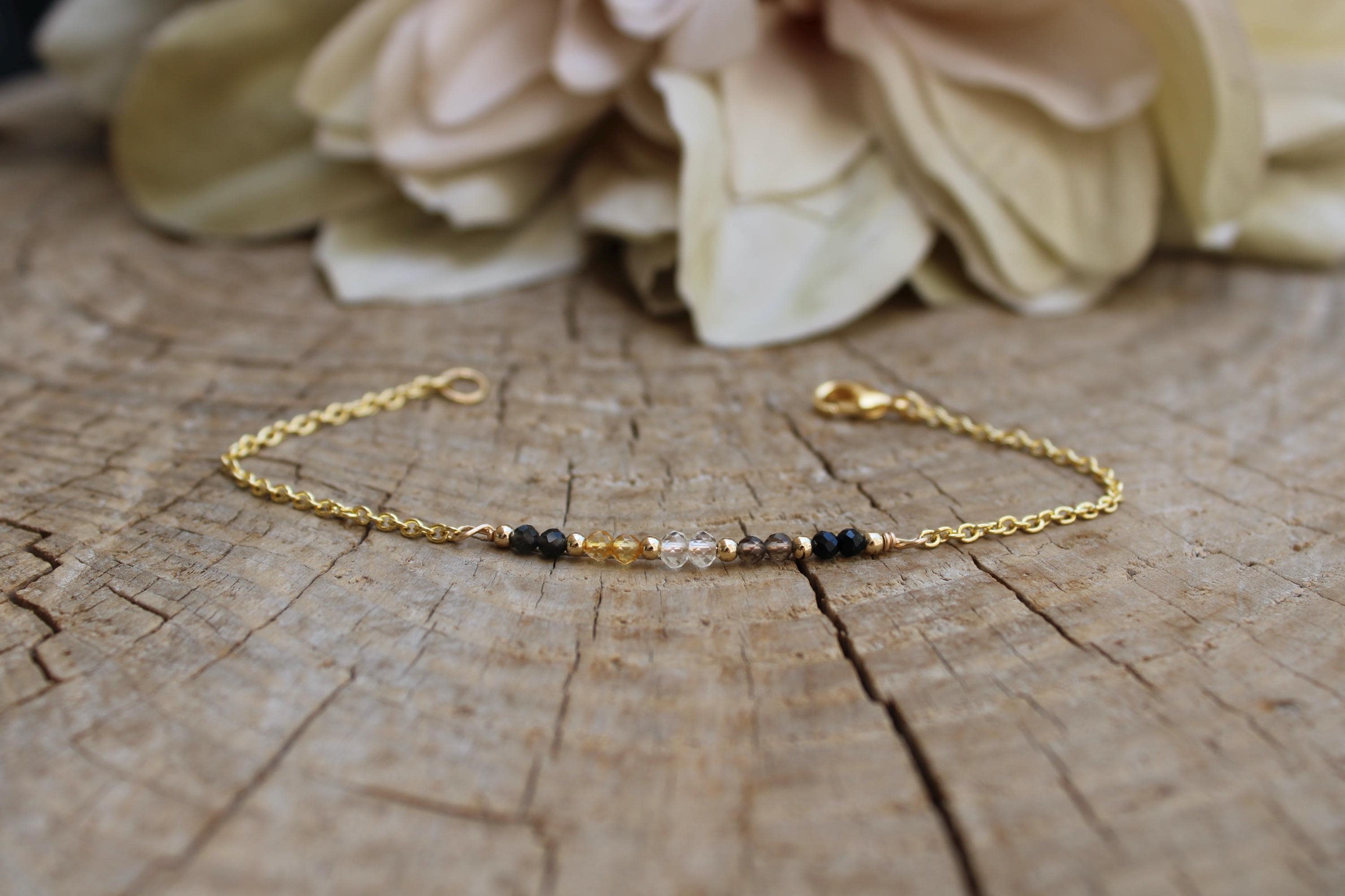 •The gemstones included are black tourmaline, smoky quartz, clear quartz, citrine and gold sheen obsidian.