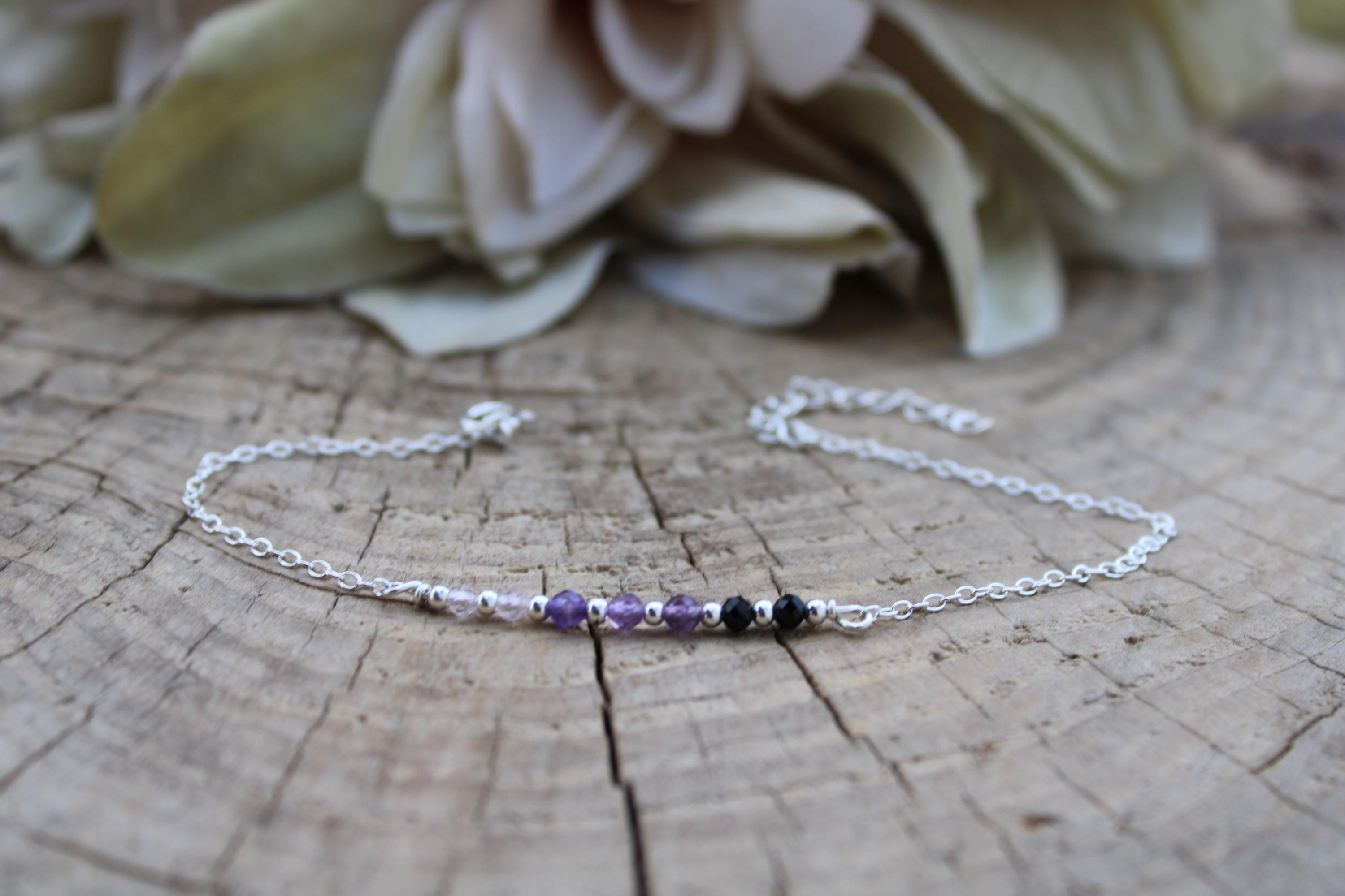 •Made with AAA quality micro faceted tourmaline, rose quartz and amethyst crystals that are separated by seamless gold /rose gold filled, sterling silver or stainless steel beads.