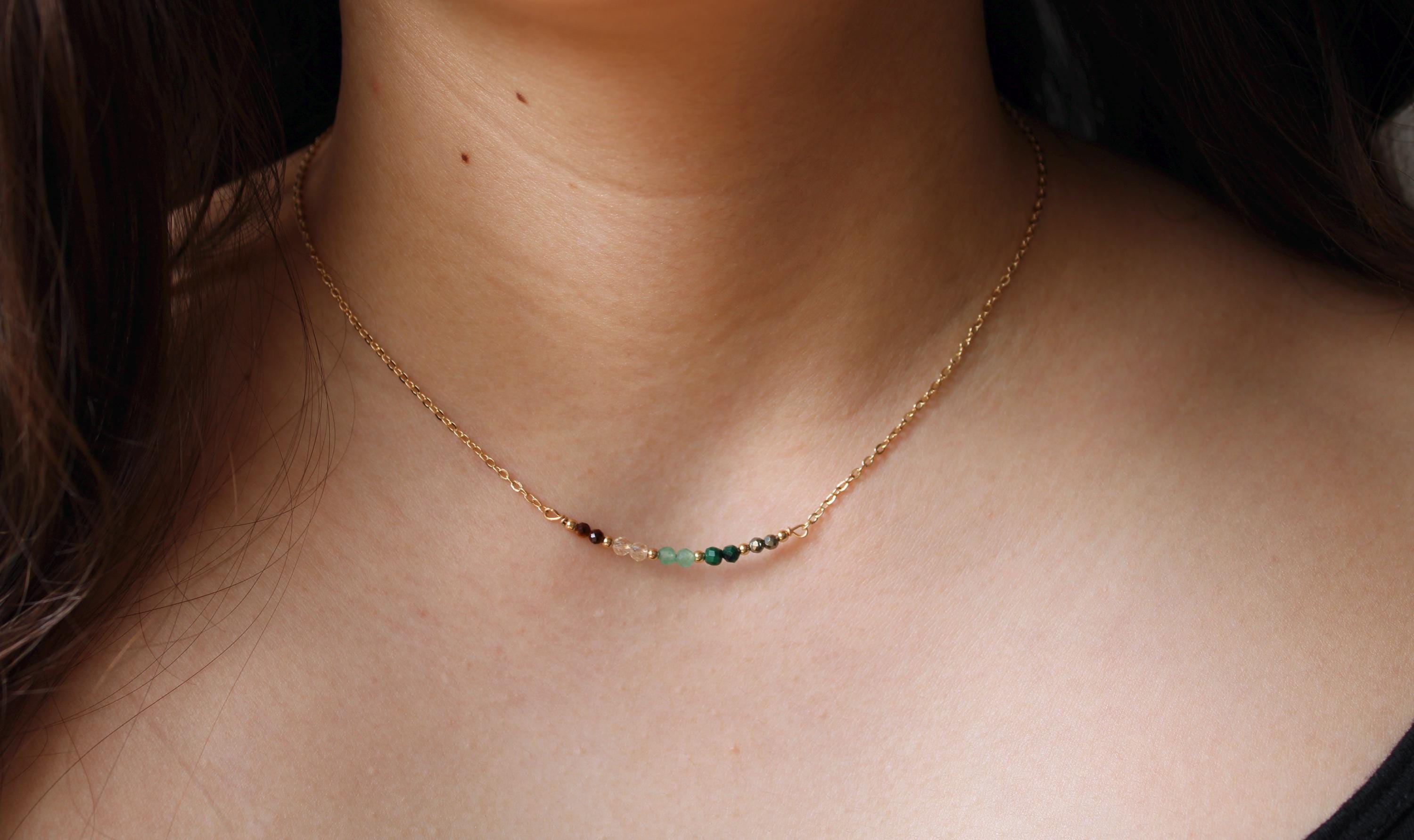 This little necklace combines gemstones that are associated with prosperity, abundance and attracting wealth and luck.