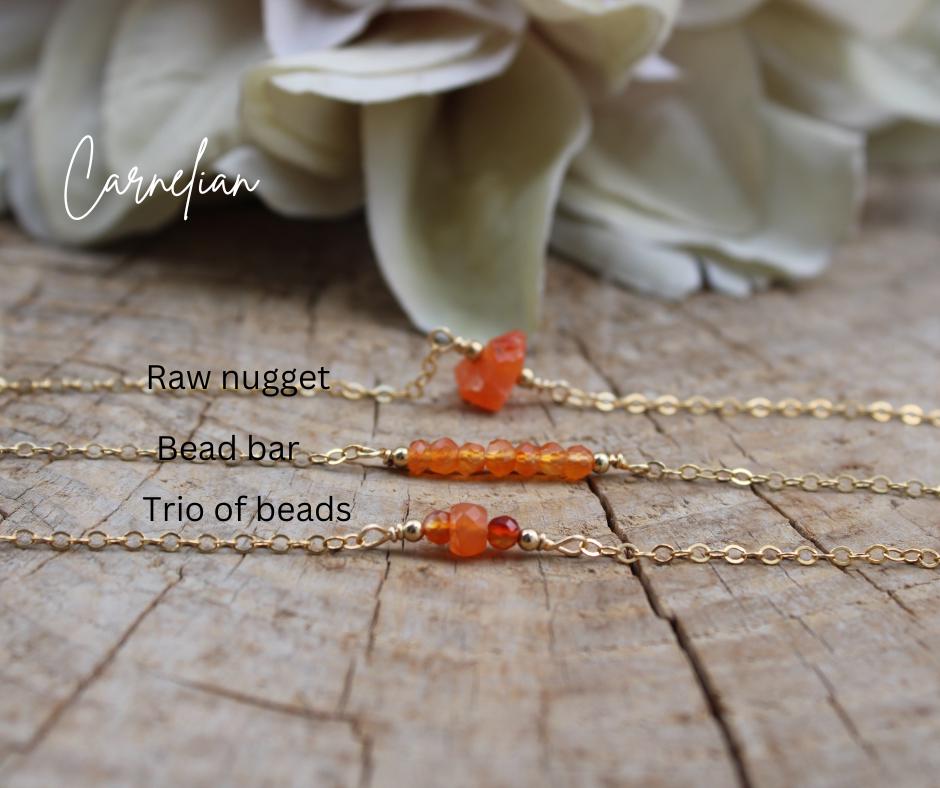 •Choose between a raw nugget, a bead bar or a trio of beads.