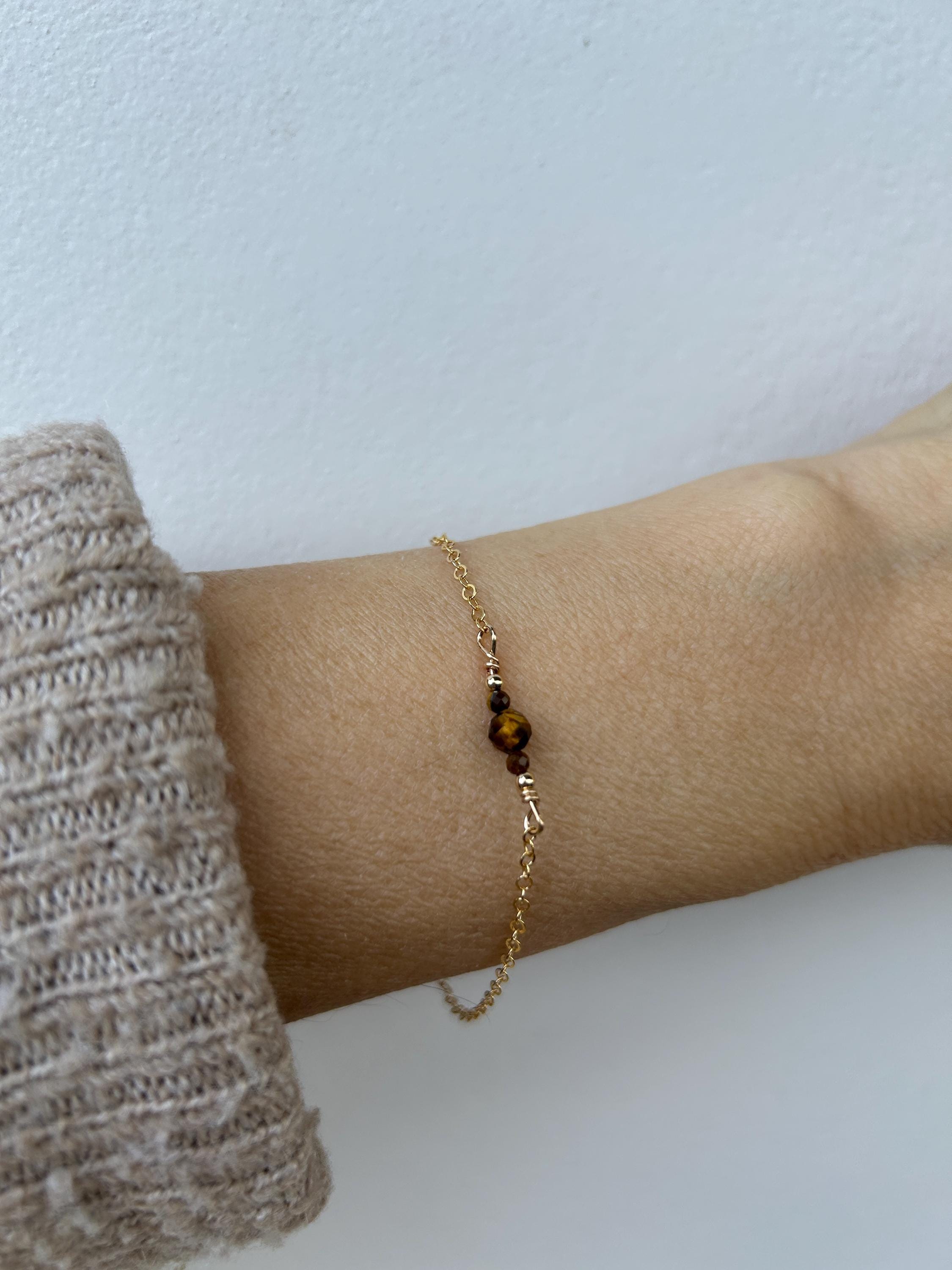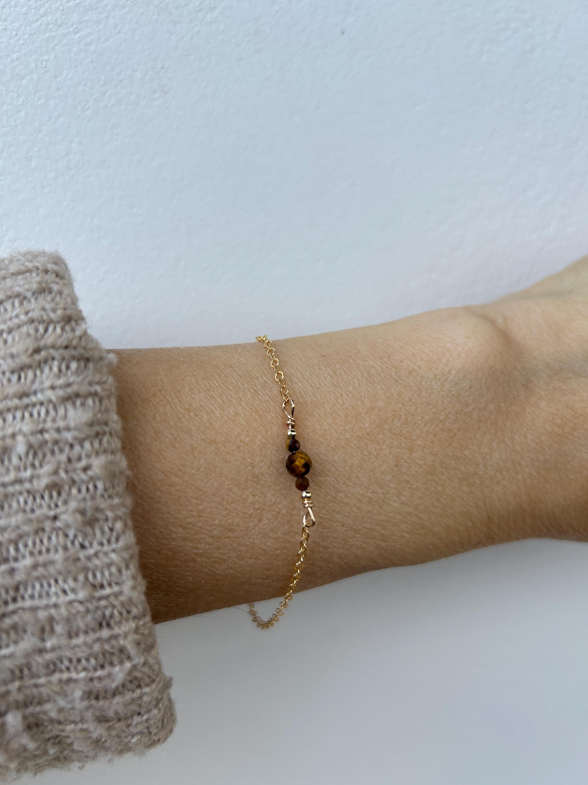This dainty bracelet looks great worn alone or stacked with other dainty pieces. Tiger's eye is also associated with luck, abundance and protection.