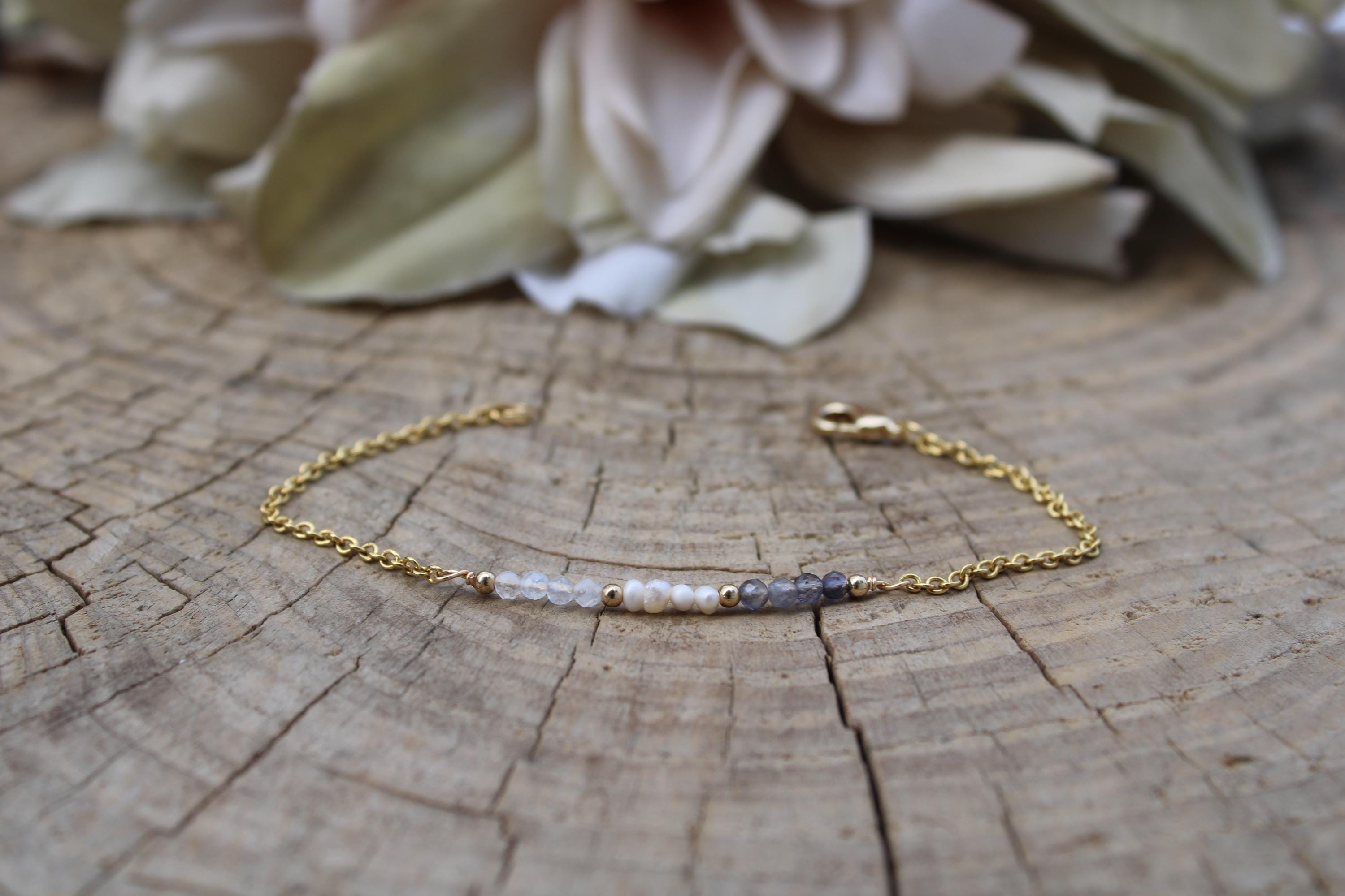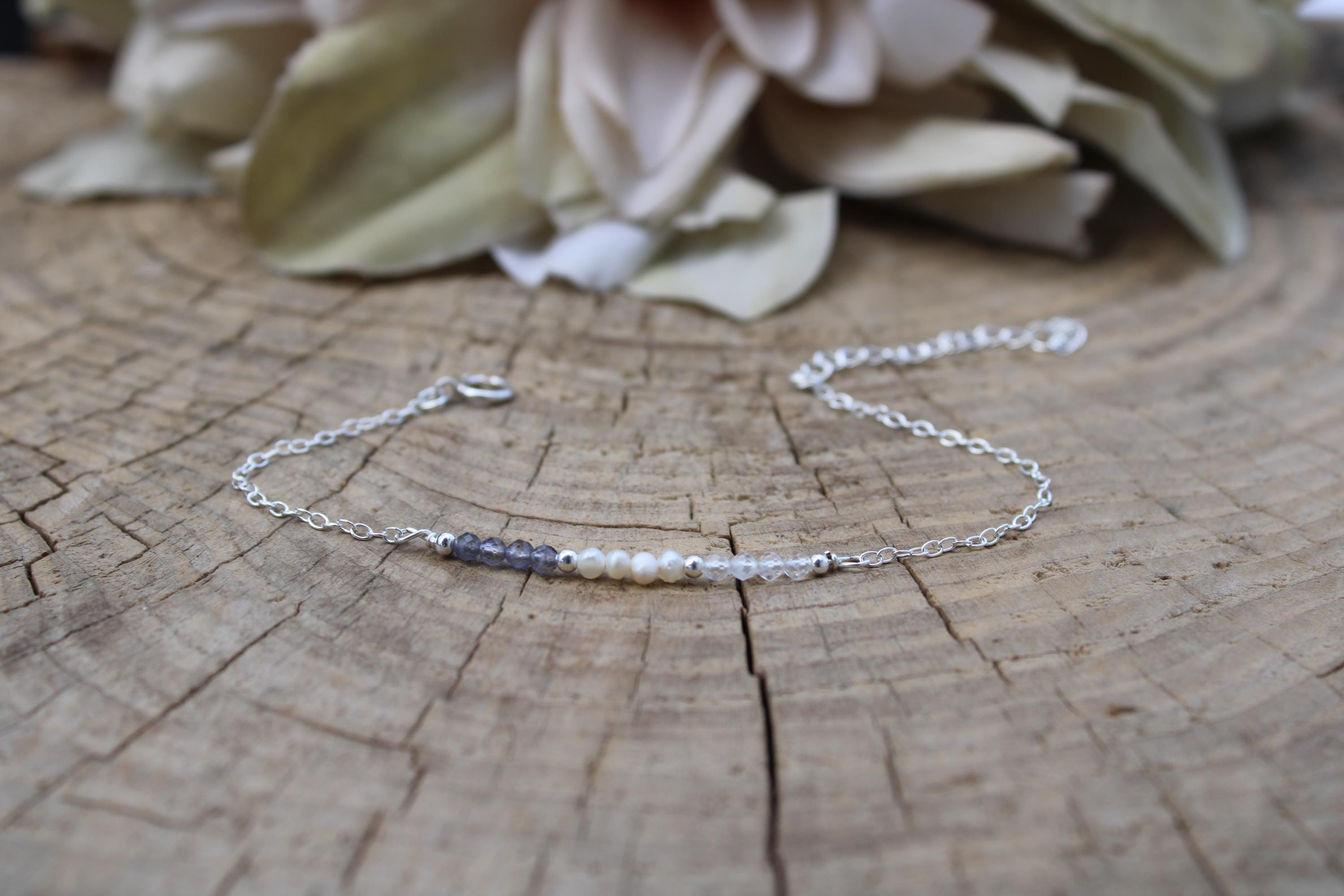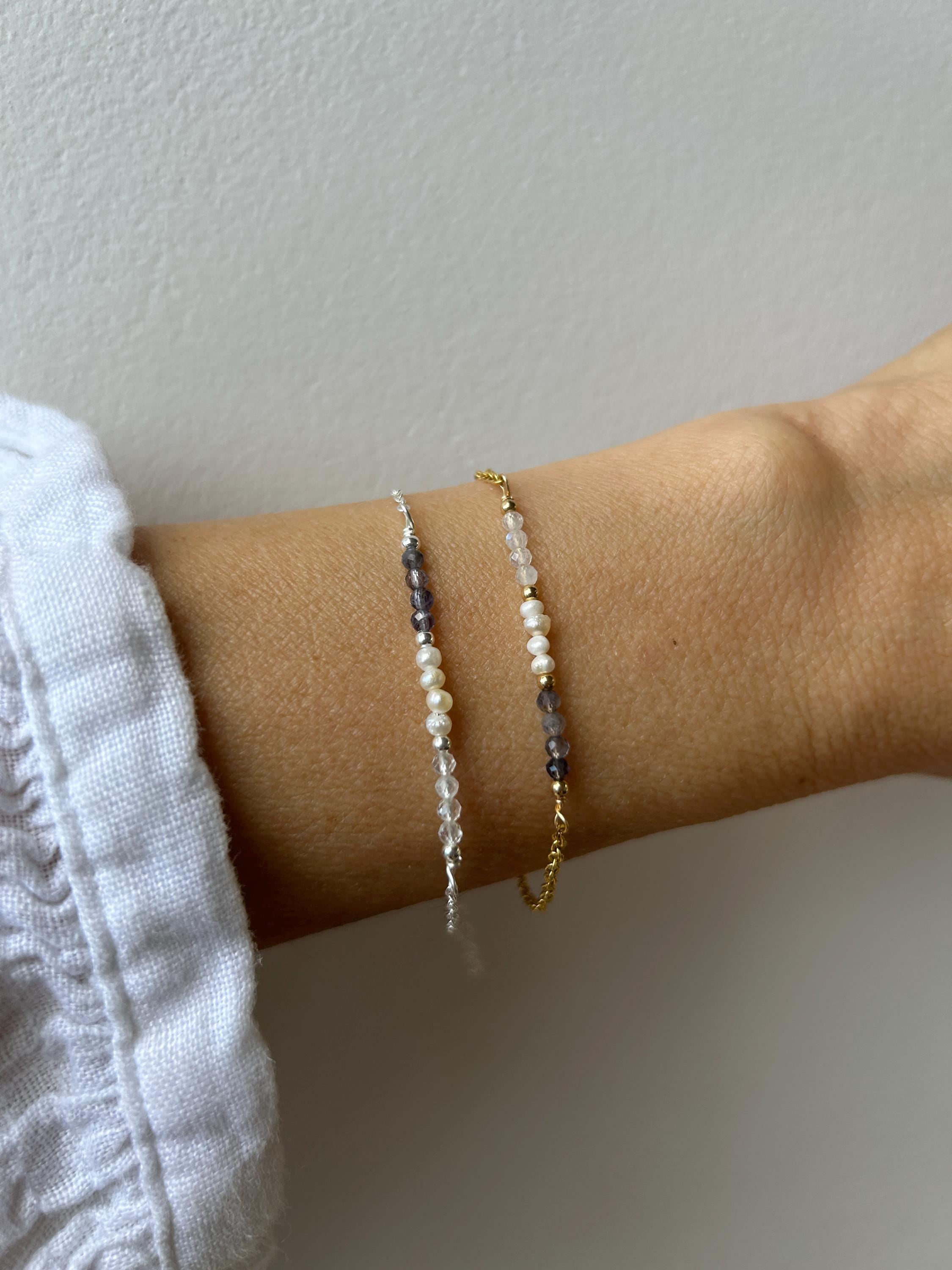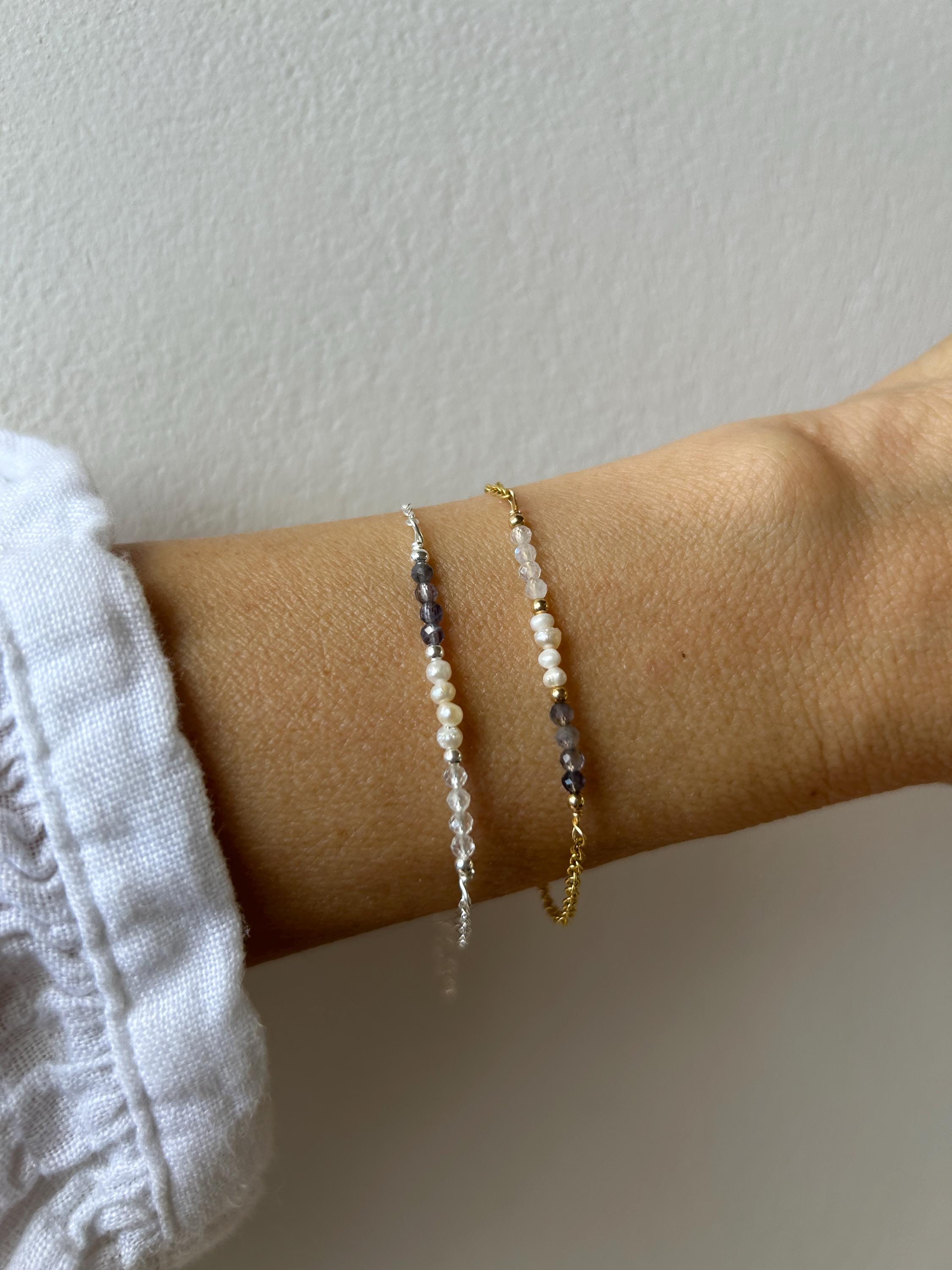 •Made with a line up of AAA quality micro faceted gemstones. These are very small measuring around 2.5mm. These include iolite and moonstone and tiny freshwater pearls.