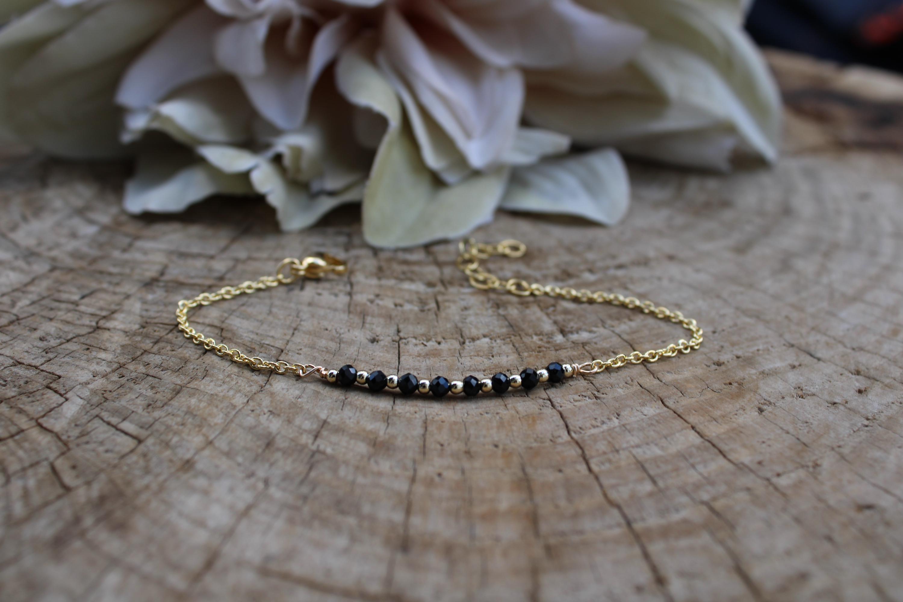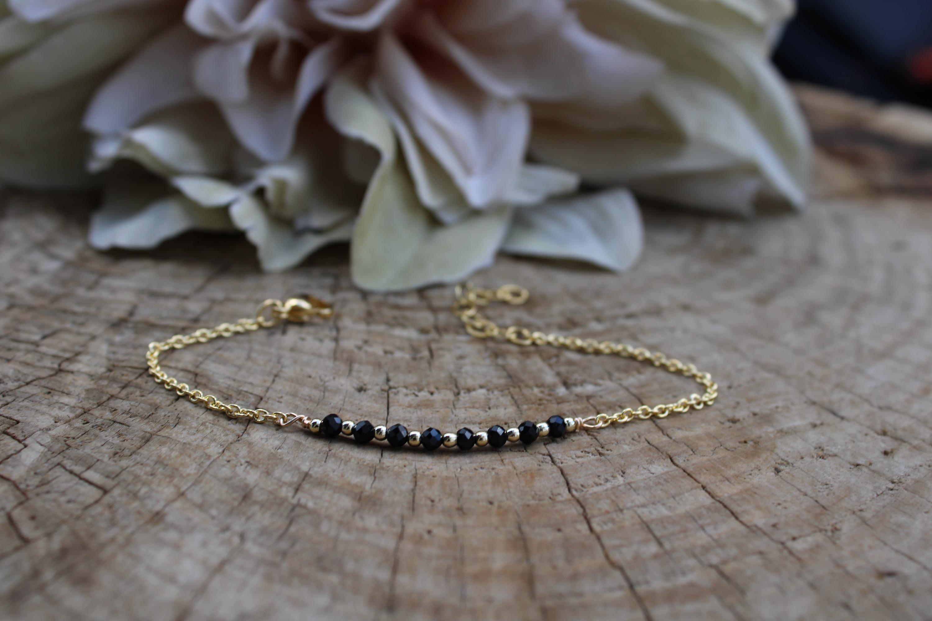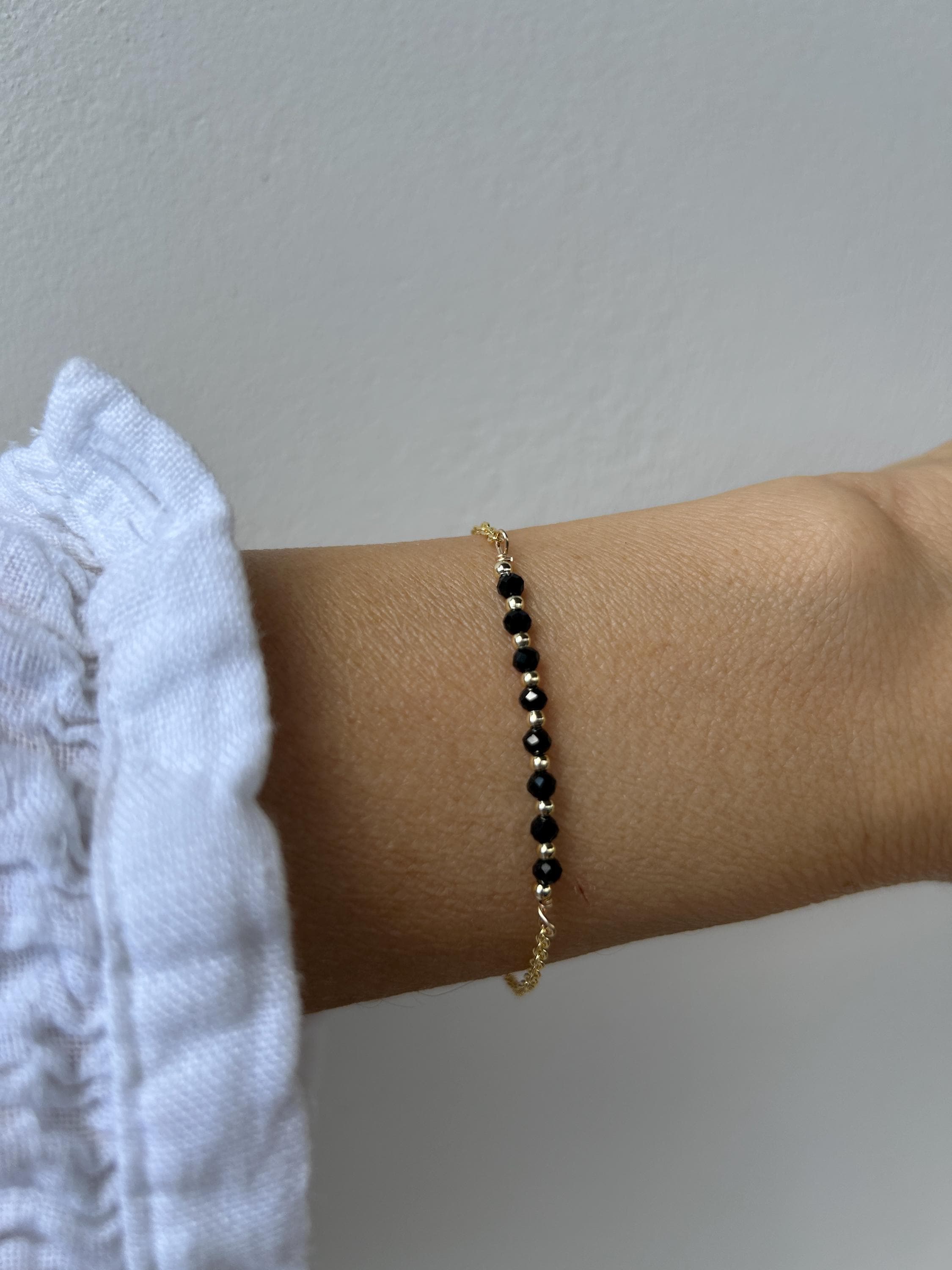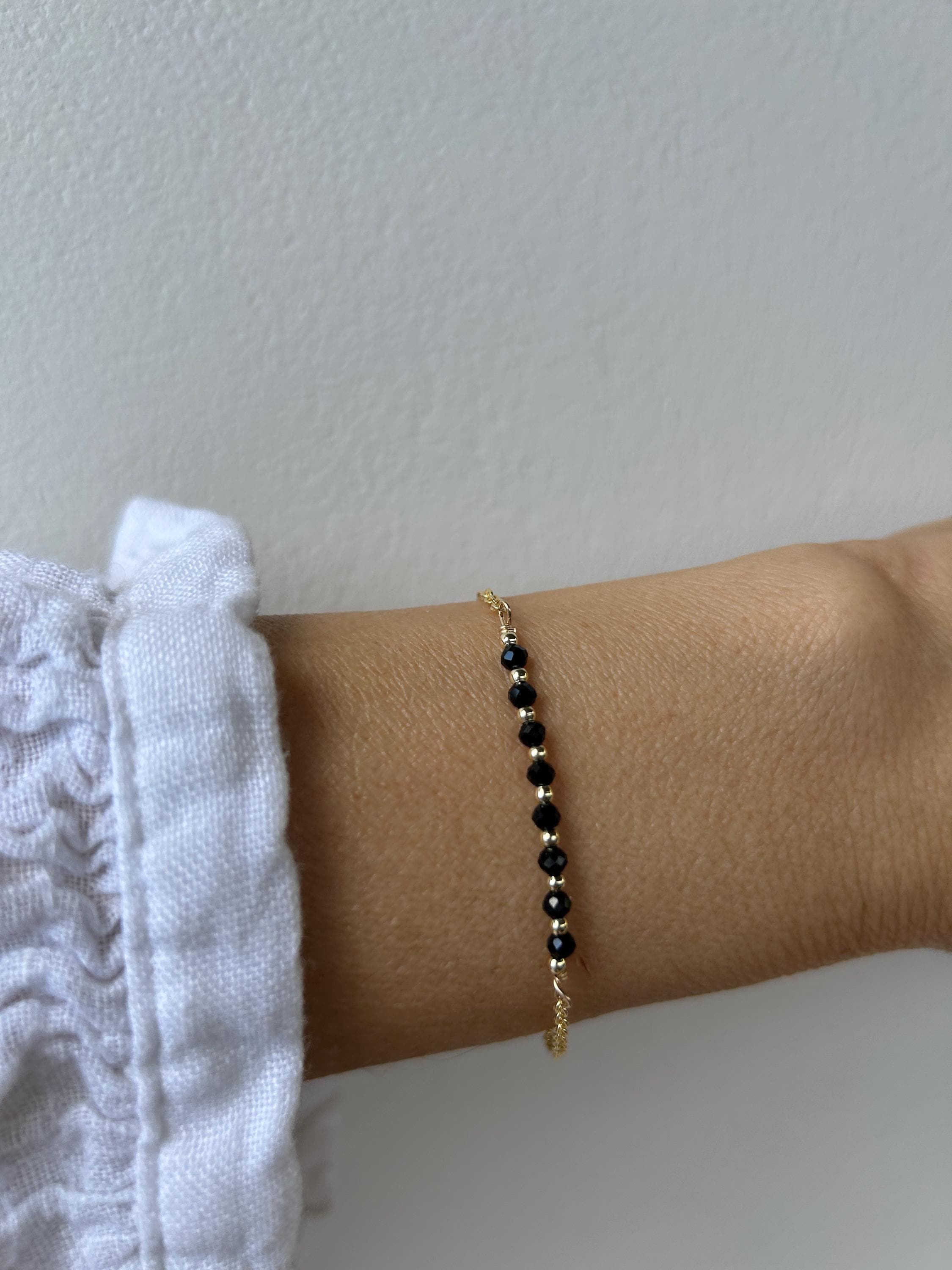 Beautiful crystals are combined with a delicate chain to create this lovely bracelet with calming and protective properties.