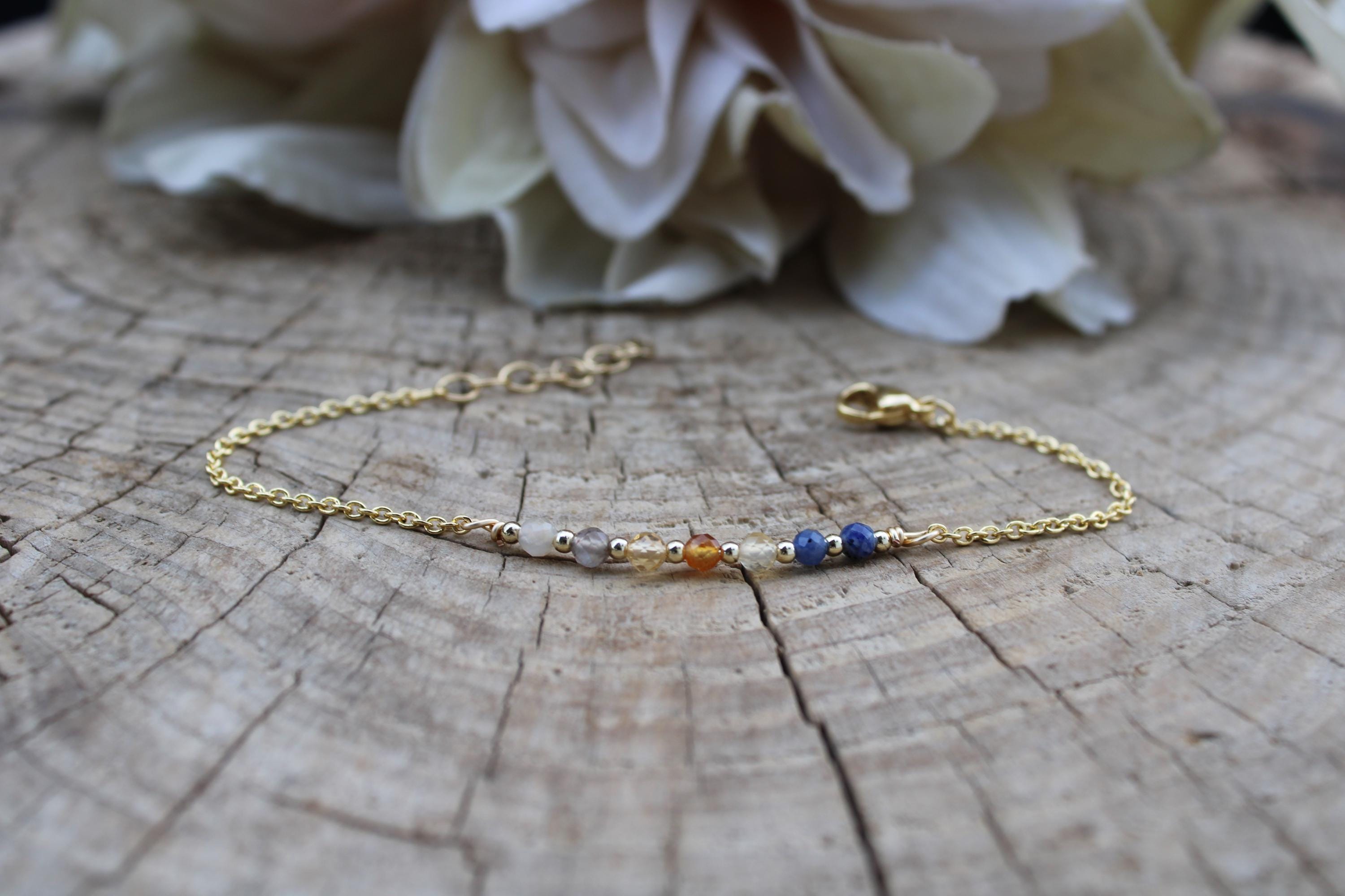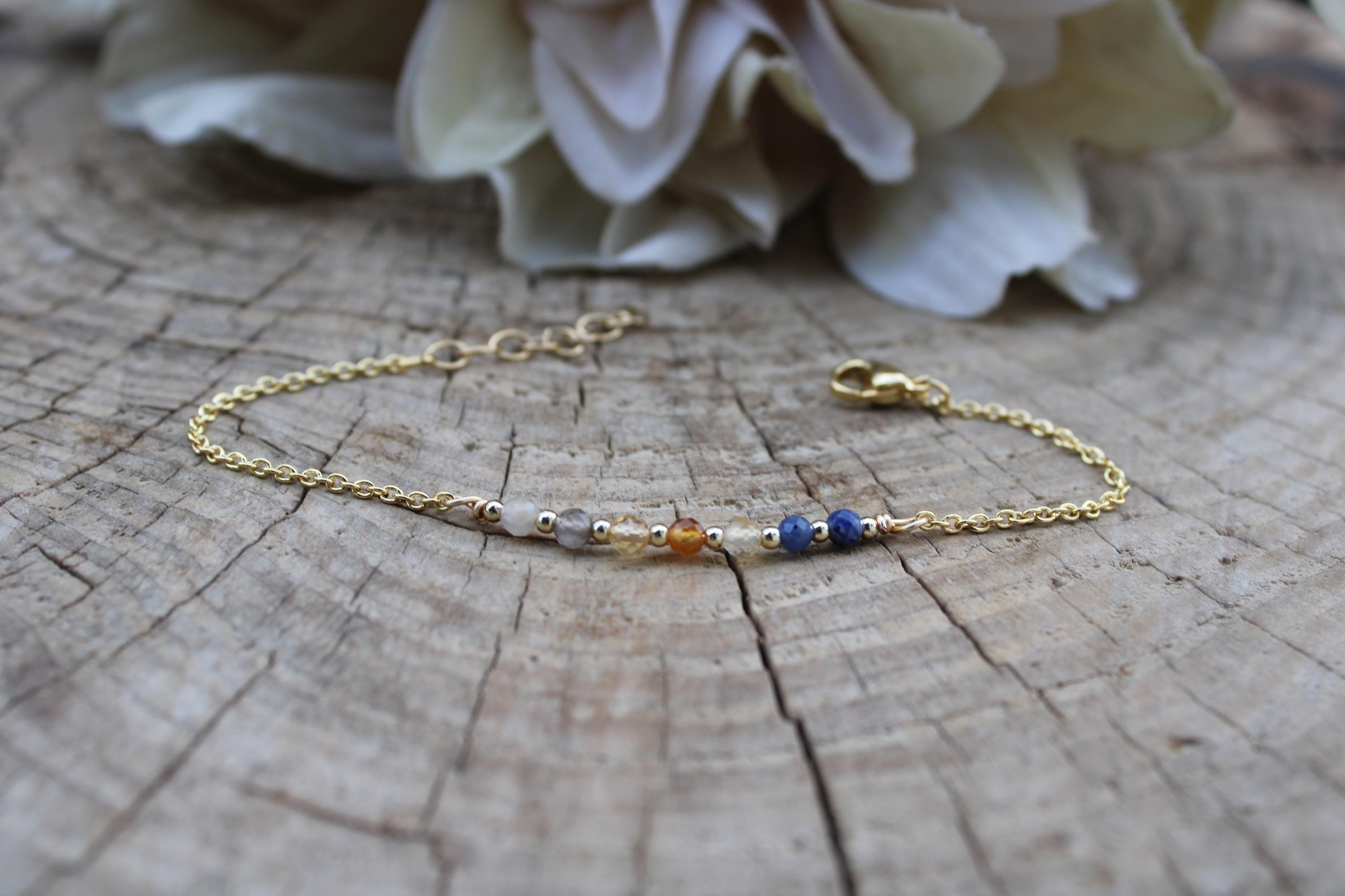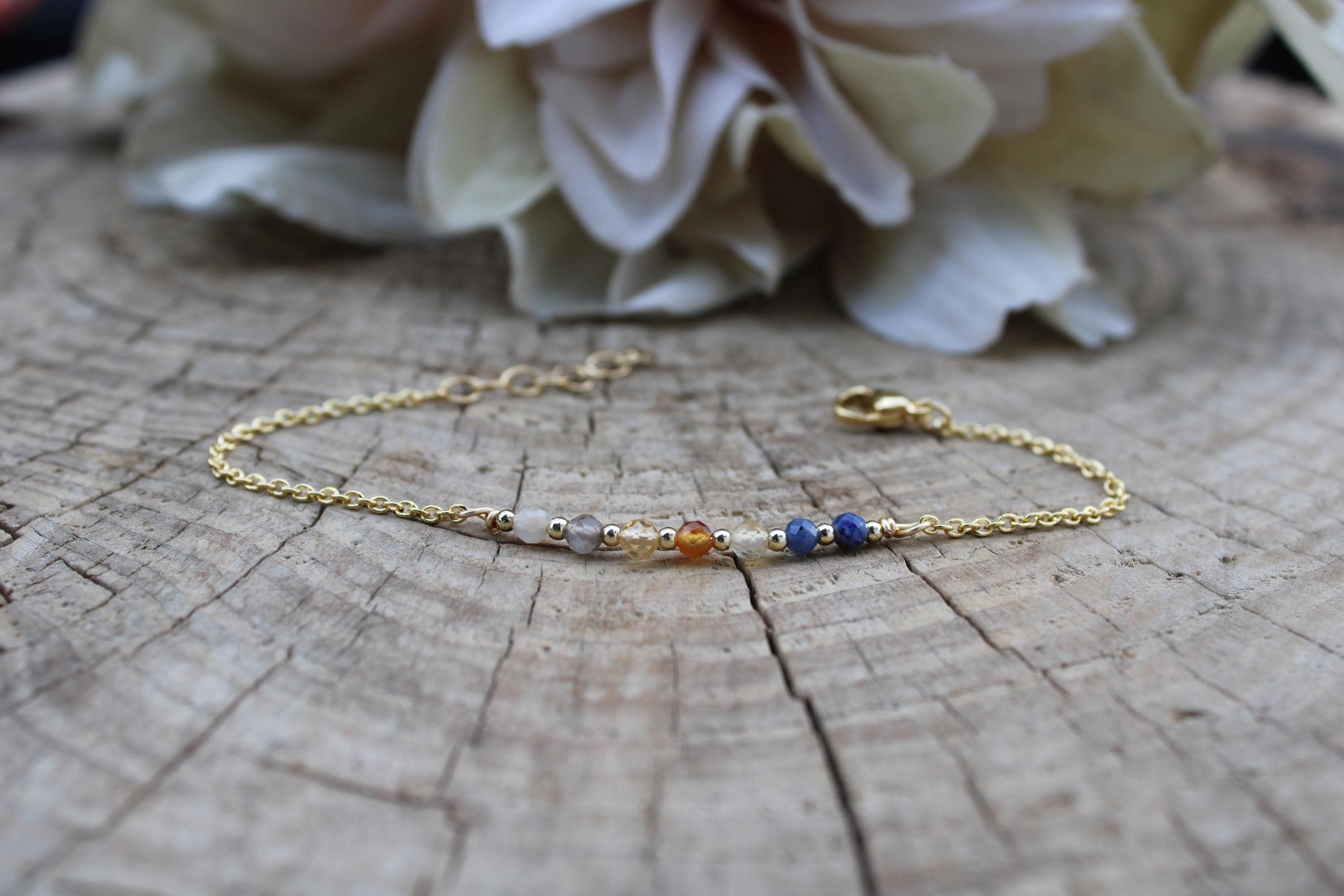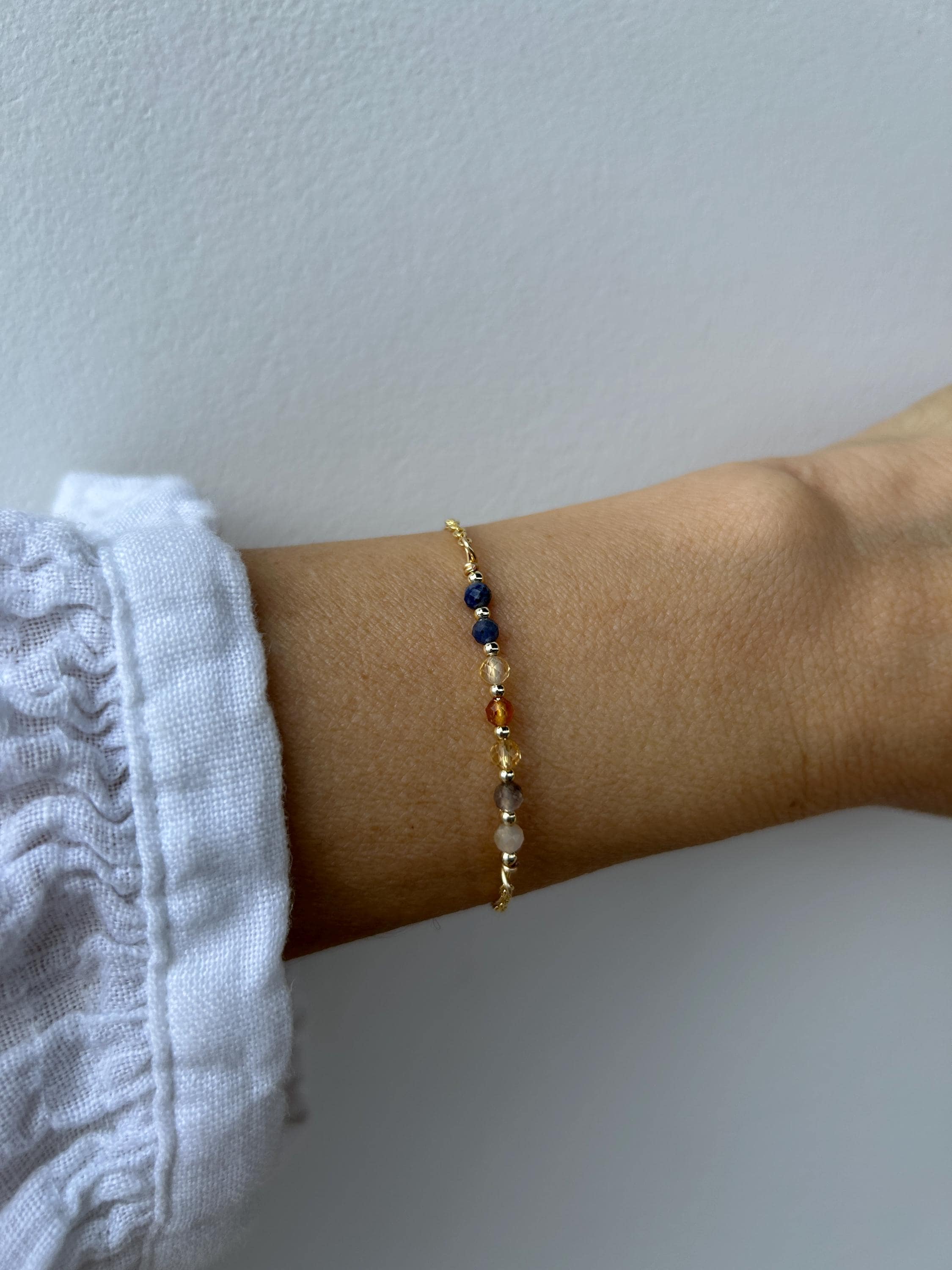 Beautiful crystals are combined with a delicate chain to create this lovely bracelet with powerful metaphysical properties. As it contains crystals ending in "ite" which are generally water unsafe crystals so please keep this in mind before placing an order.