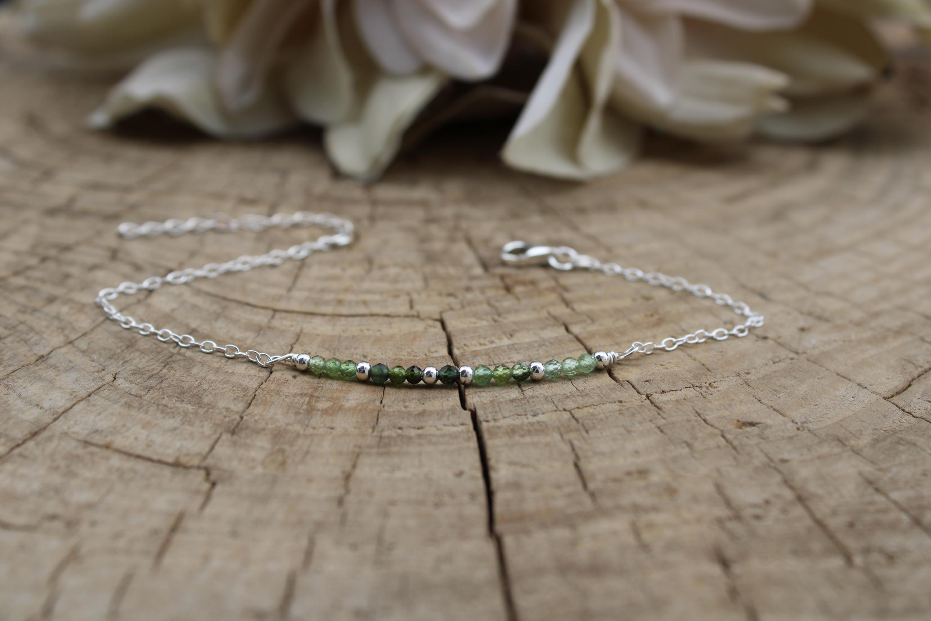 â˘Made with faceted AA+ green tourmaline gemstones. They are a shaded green colour and are nicely cut for maximum sparkle. Beads are very small and measure around 2mm in diameter.
