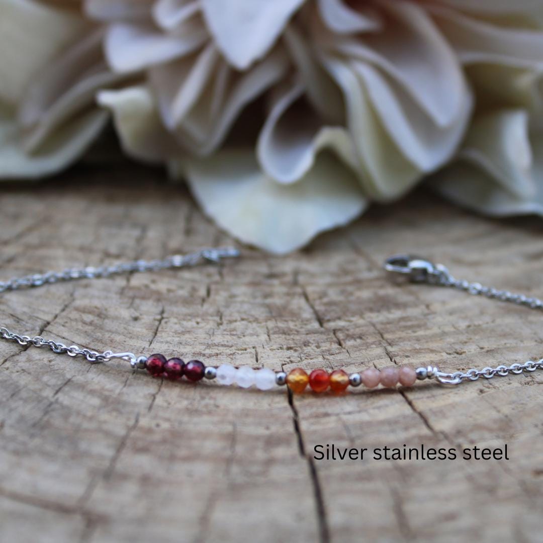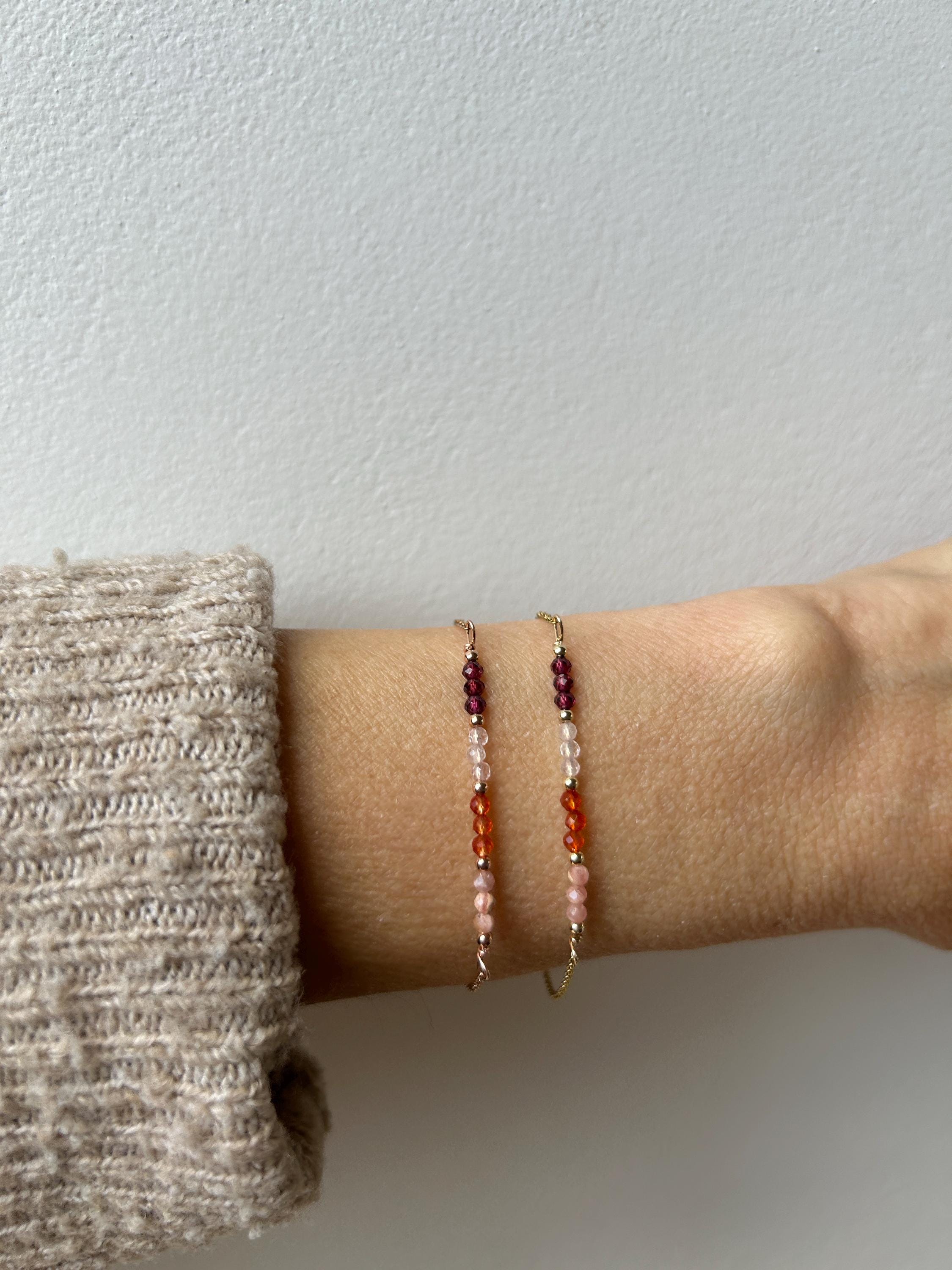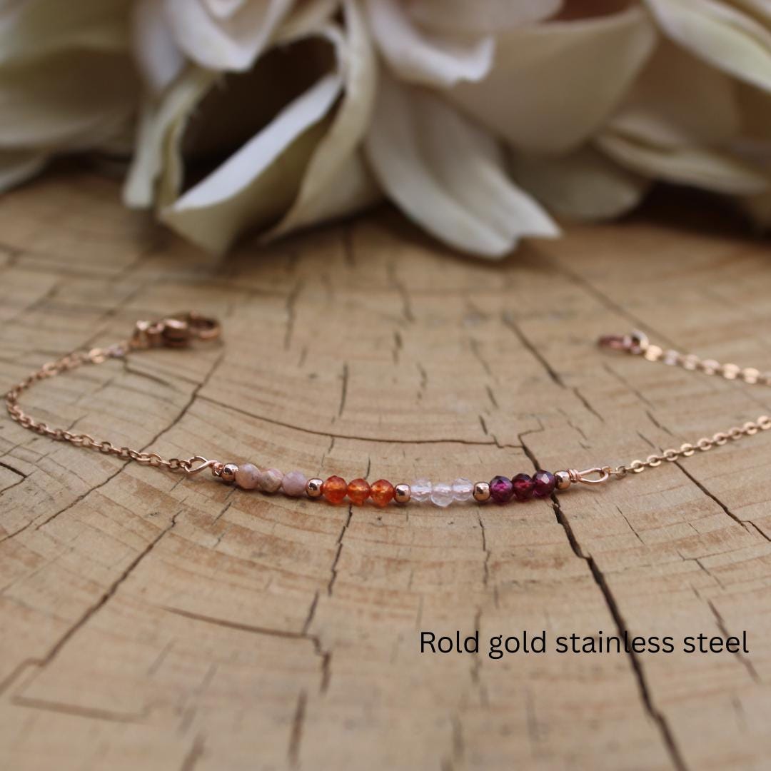 This little bracelet combines four different gemstones in beautiful hues of pink, peach and orange that are have powerful metaphysical properties.