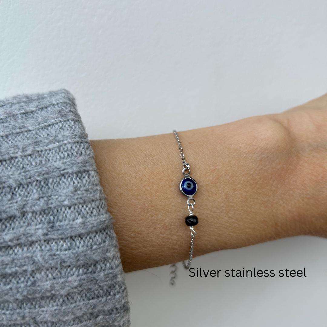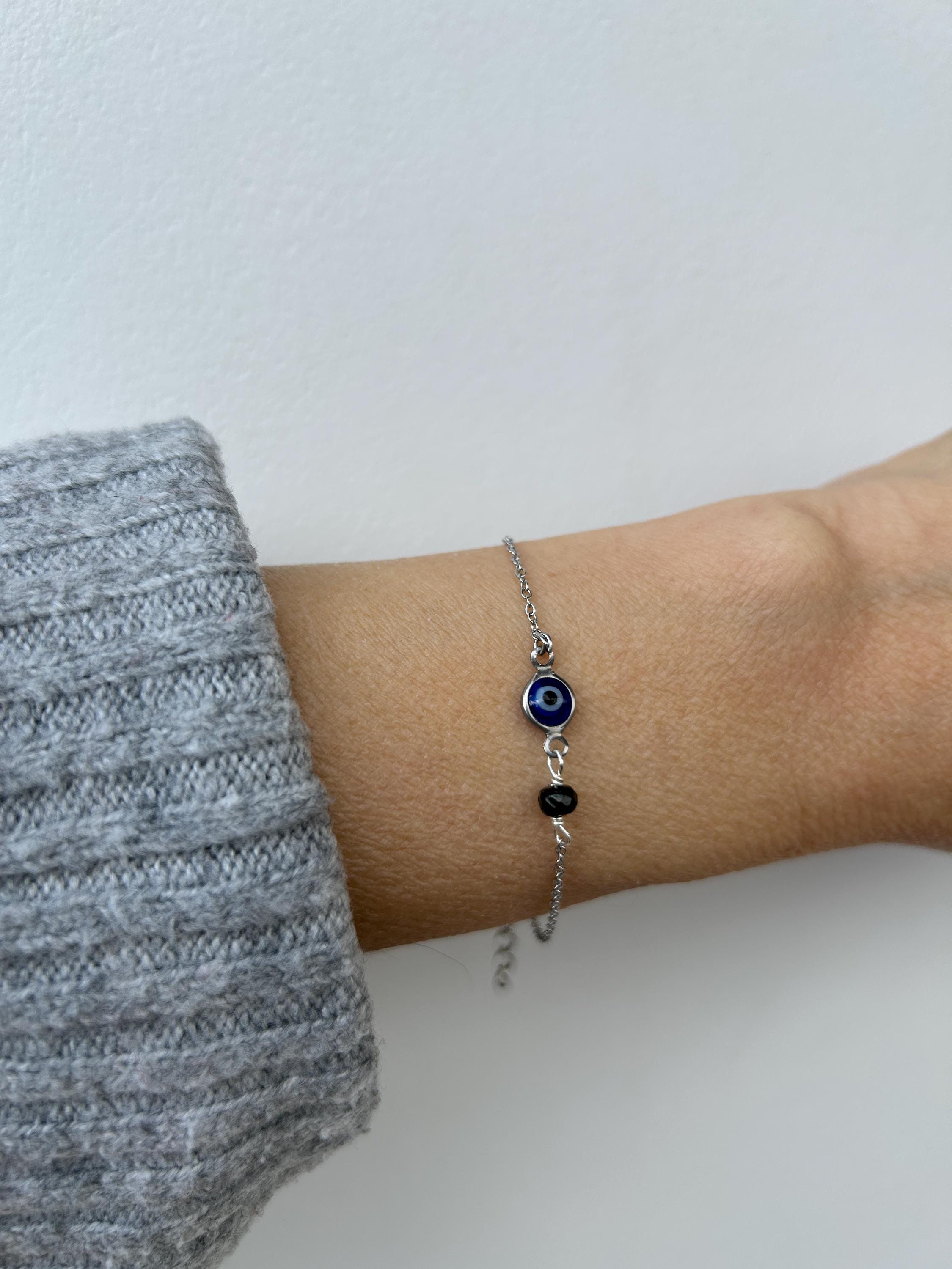 Brush away negative energy and jealous prying eyes with this dainty evil eye bracelet that also incorporates black tourmaline which is a powerful stone for protection.