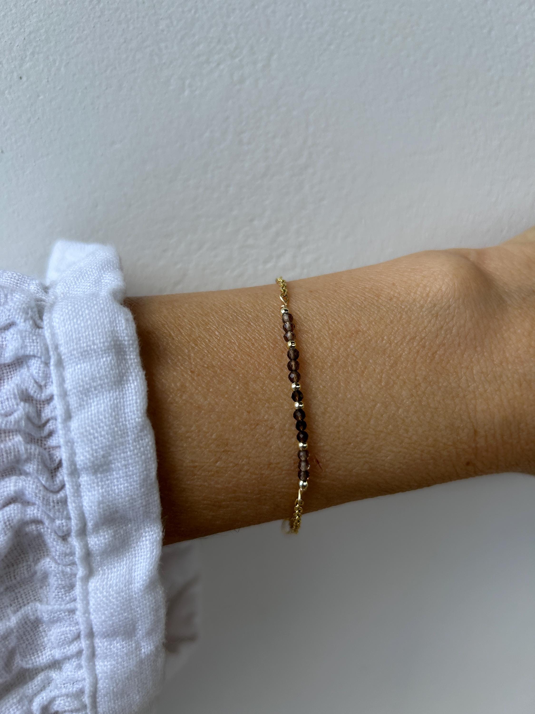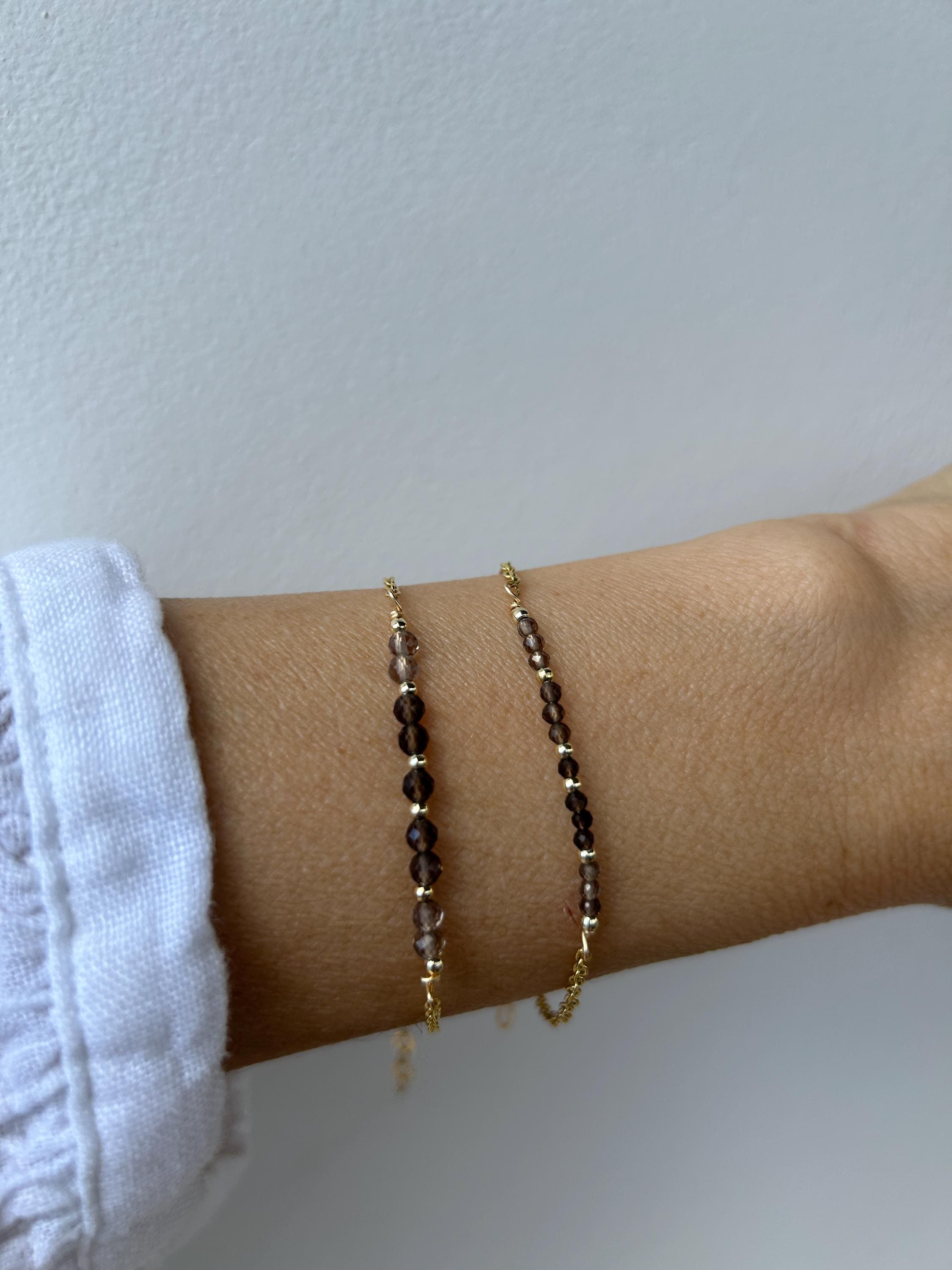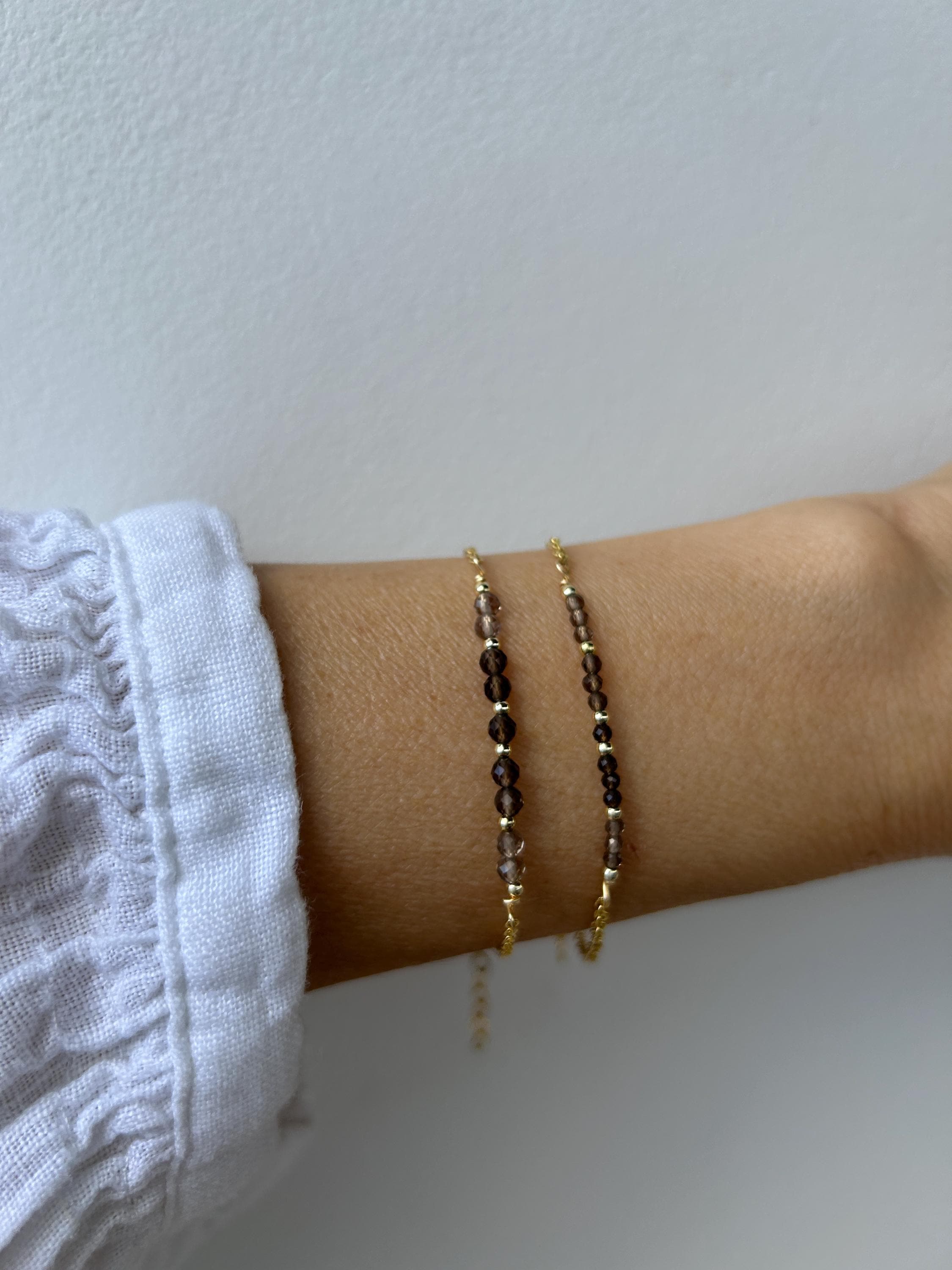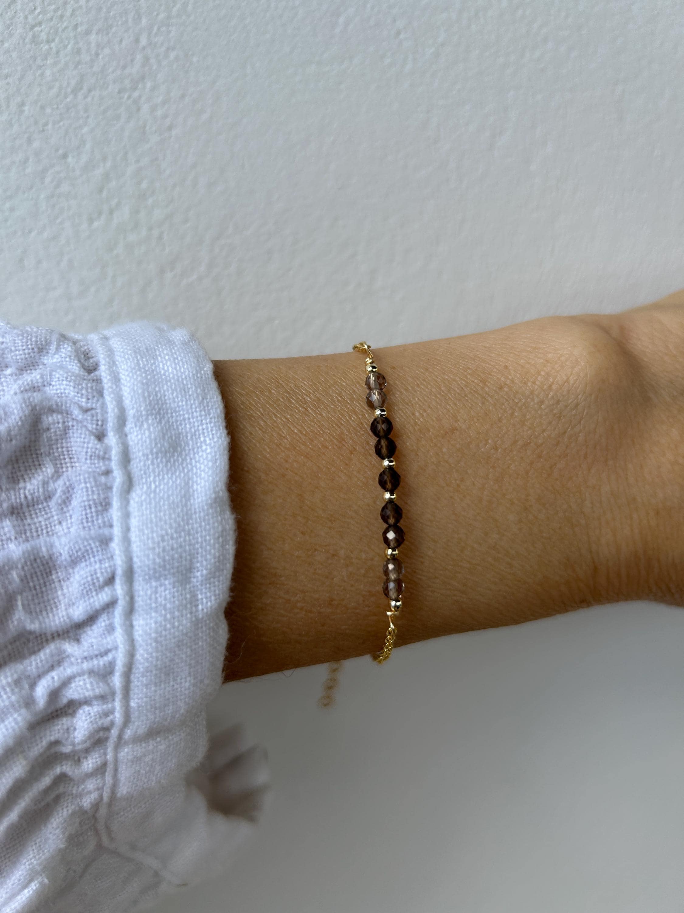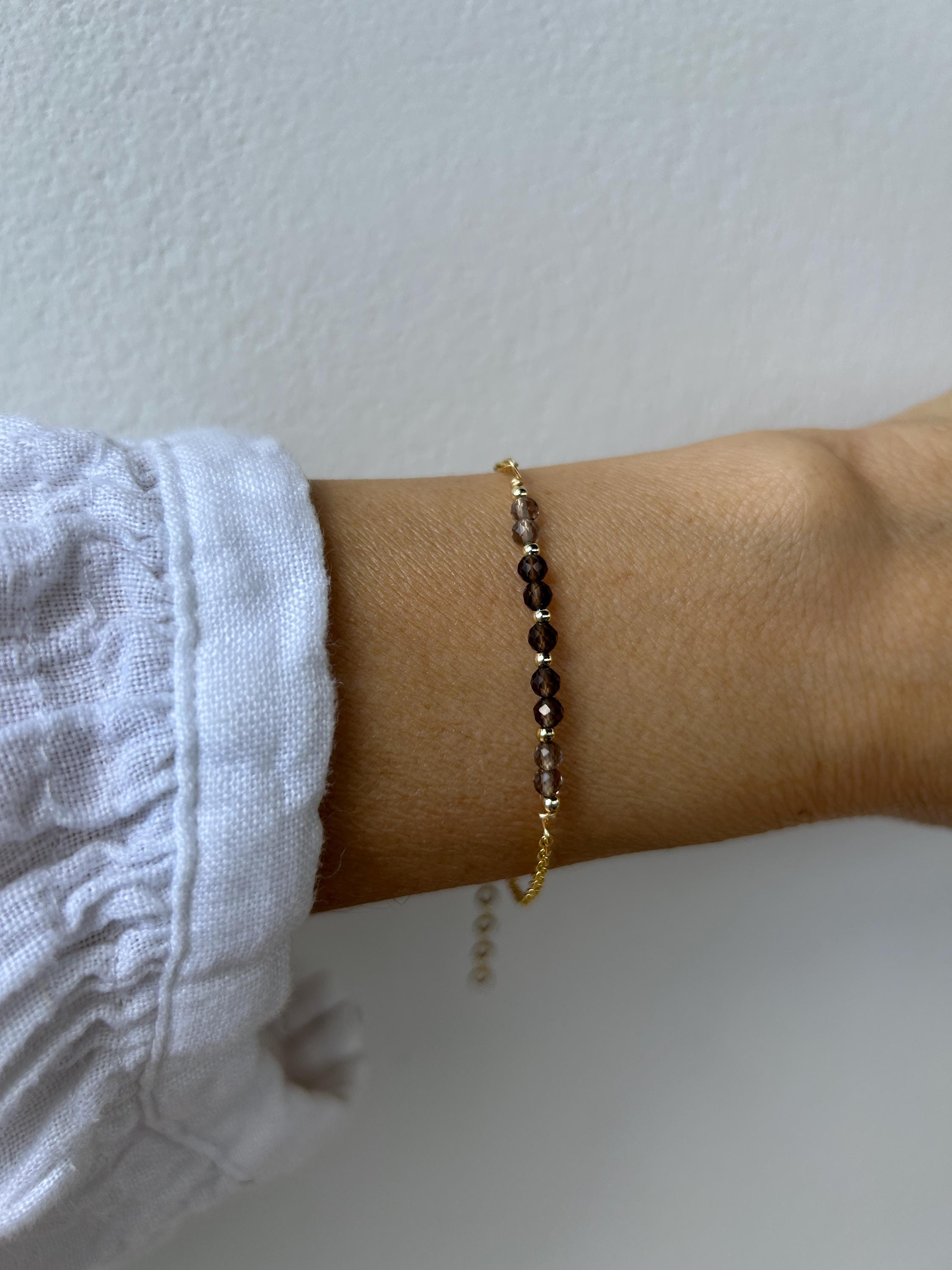 •Made with AA grade micro faceted smoky quartz. These differ in colour going from clear, to light grey to darker grey and originate from Brazil.