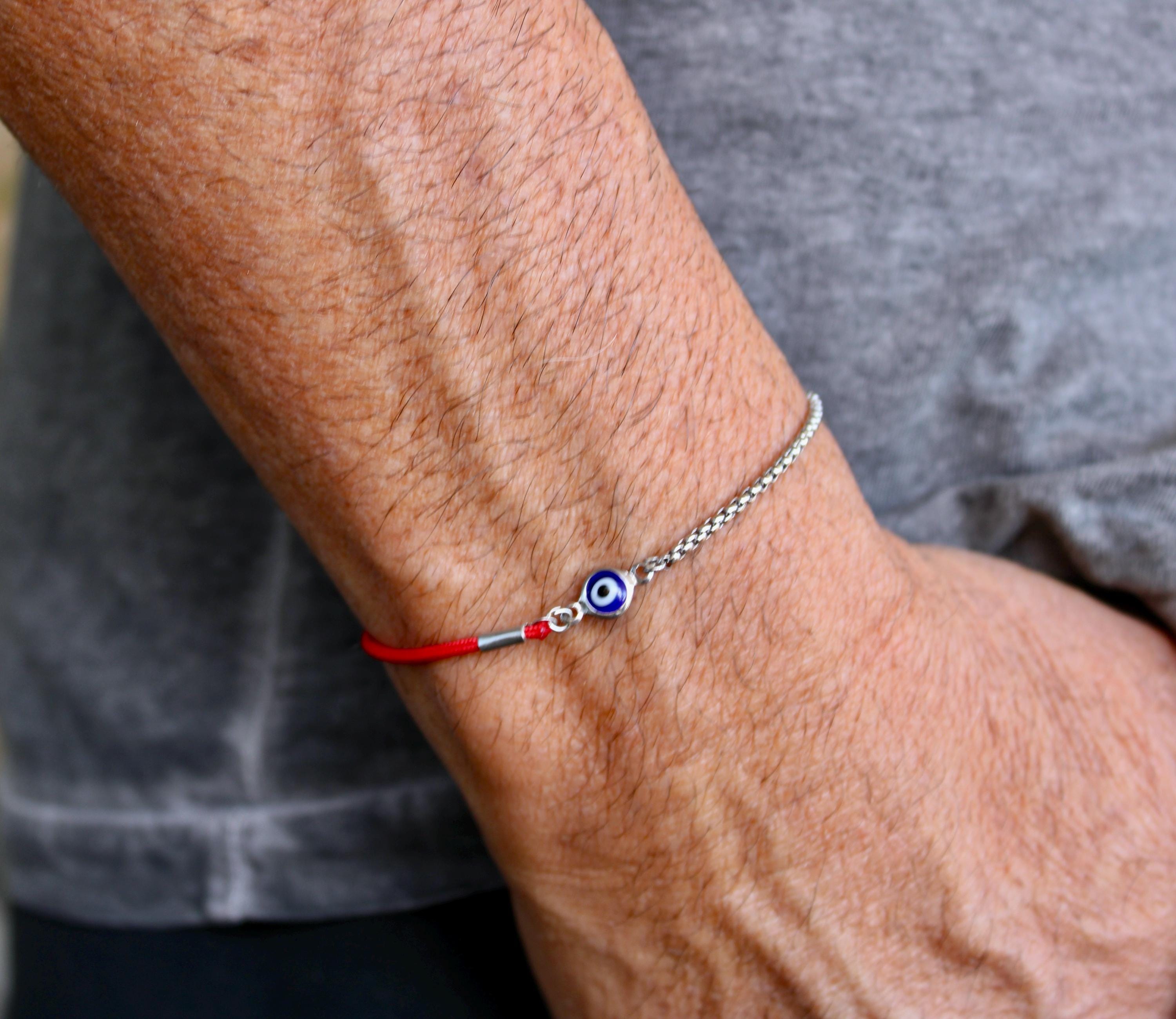Keep yourself doubly protected with this unisex evil eye and red string bracelet! You can customise it by choosing the evil eye colour you prefer.