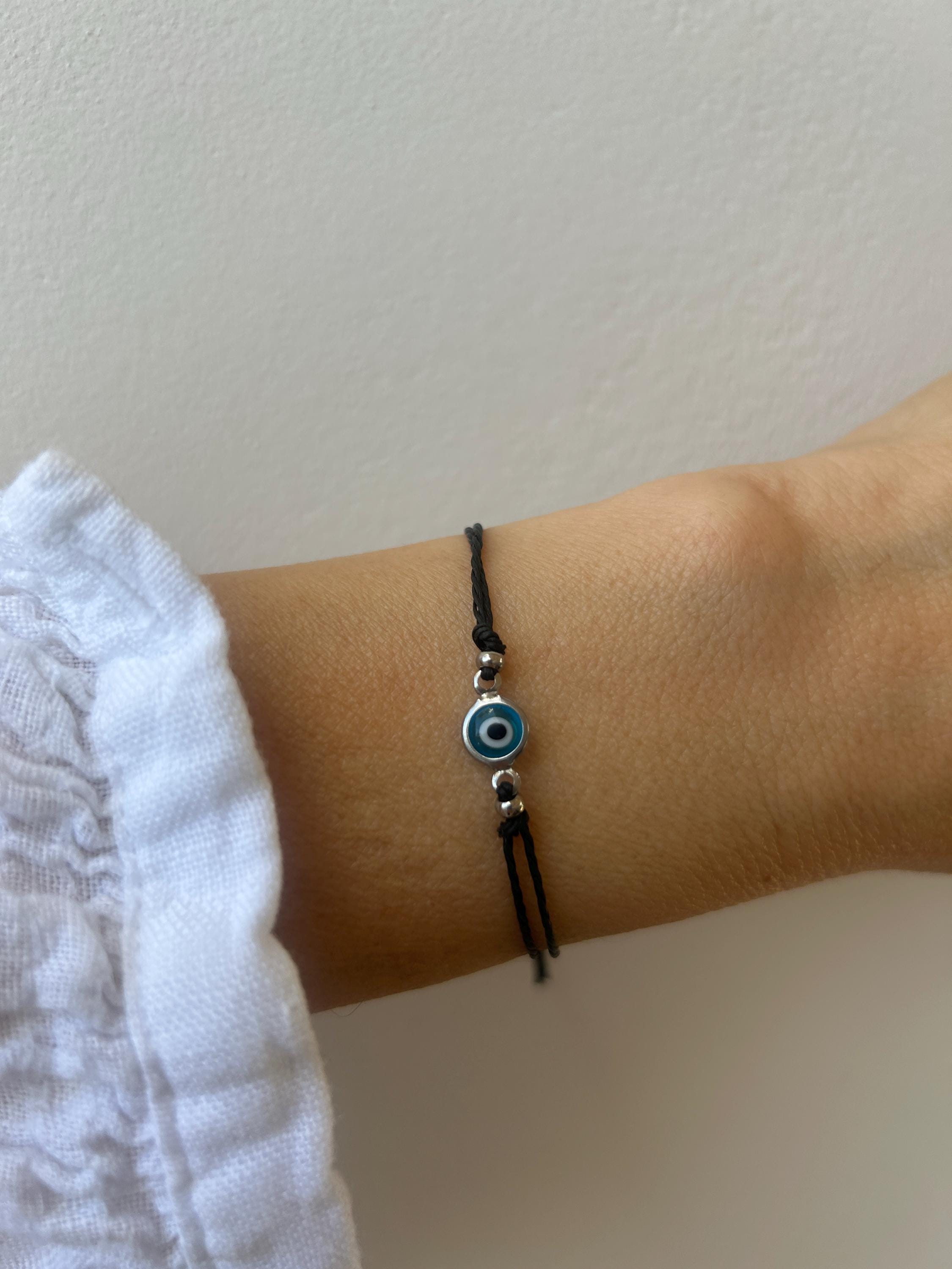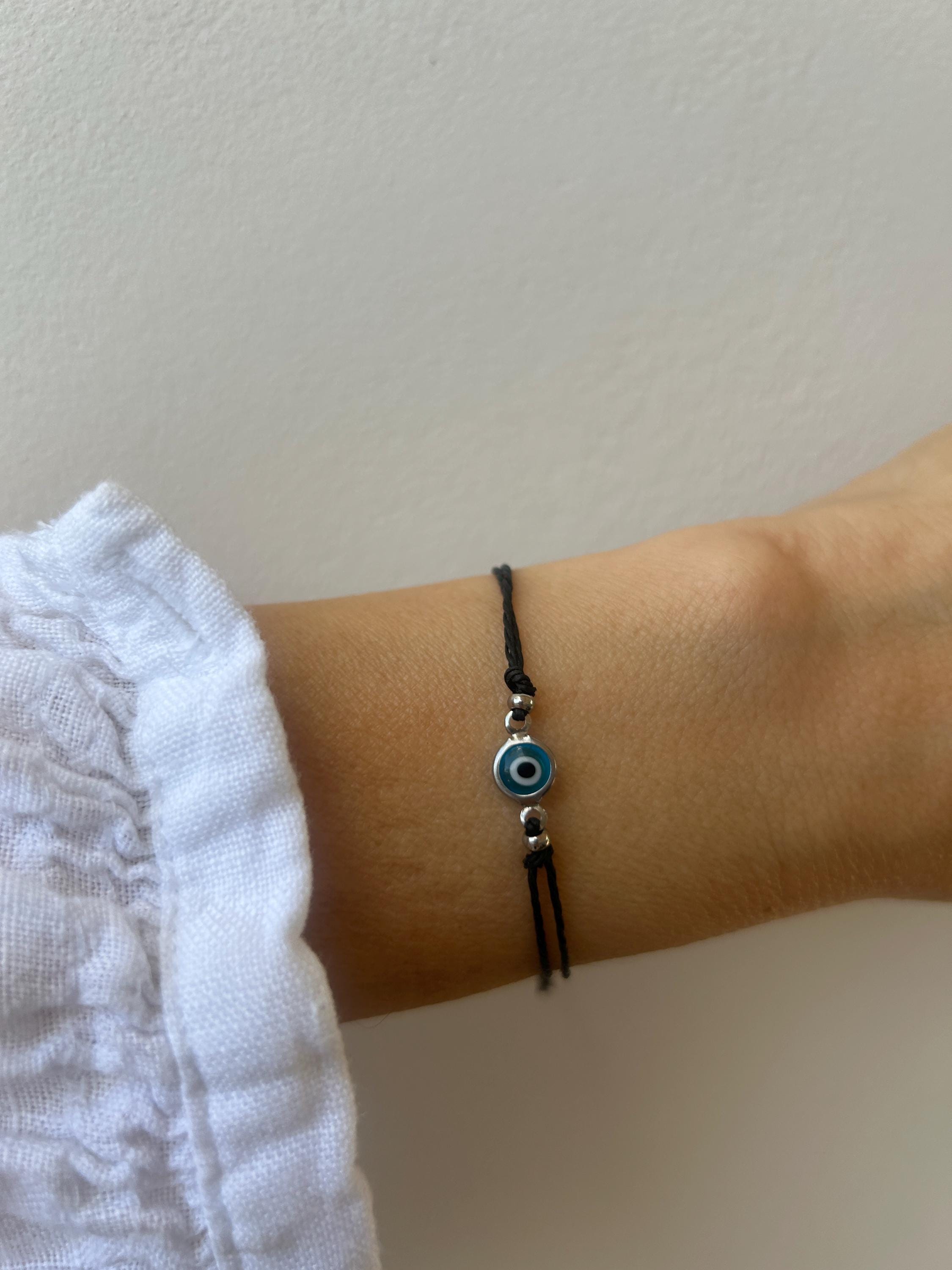 Brush away all negativity with this simple evil eye bracelet.