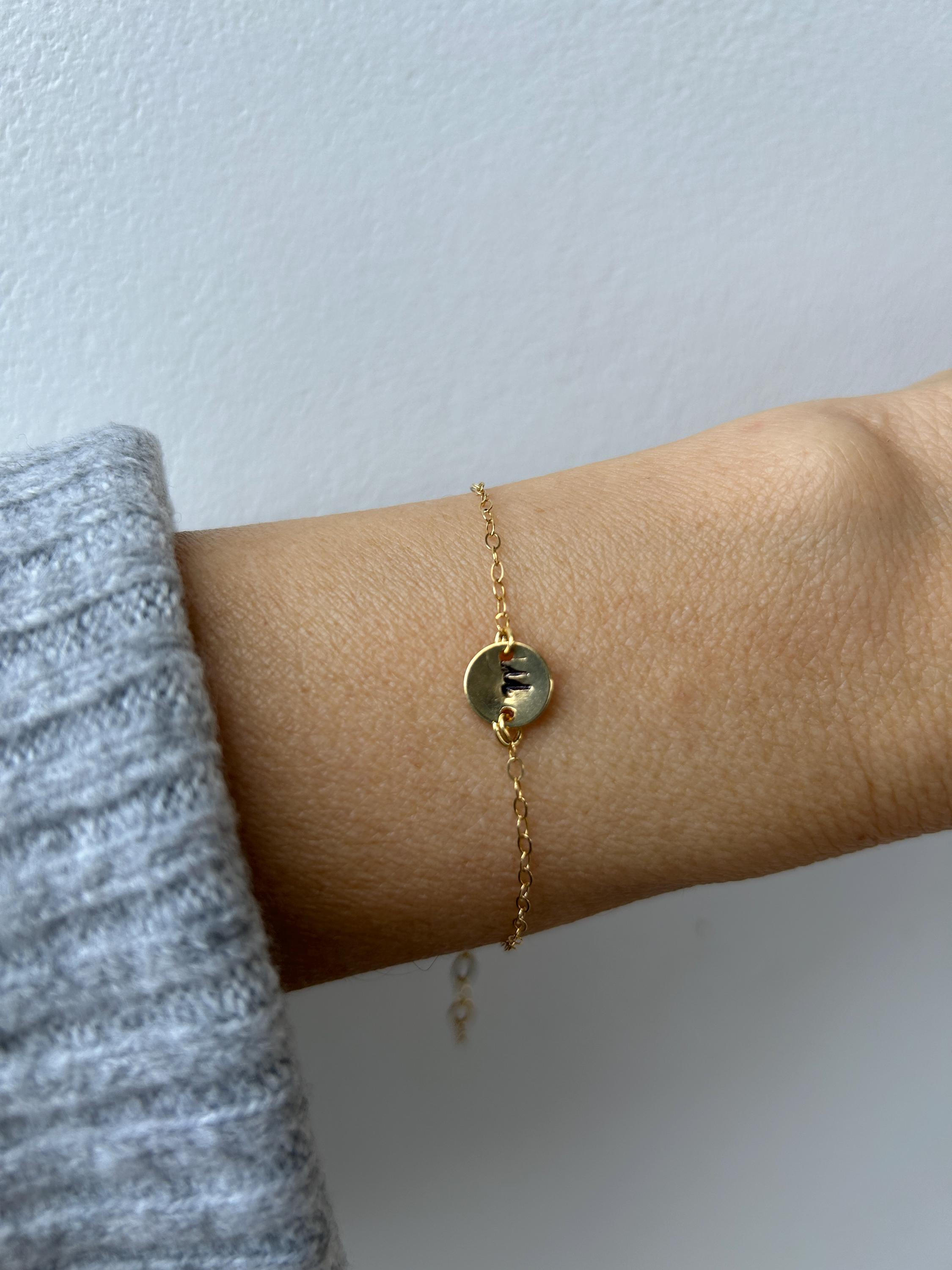 This delicate initial bracelet makes a wonderful gift. Personalise it choosing your chain and adding the letter of your choice.