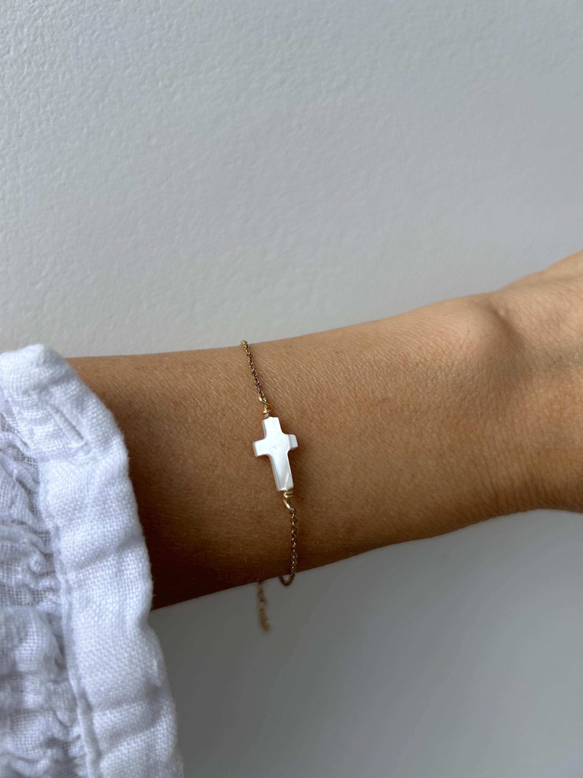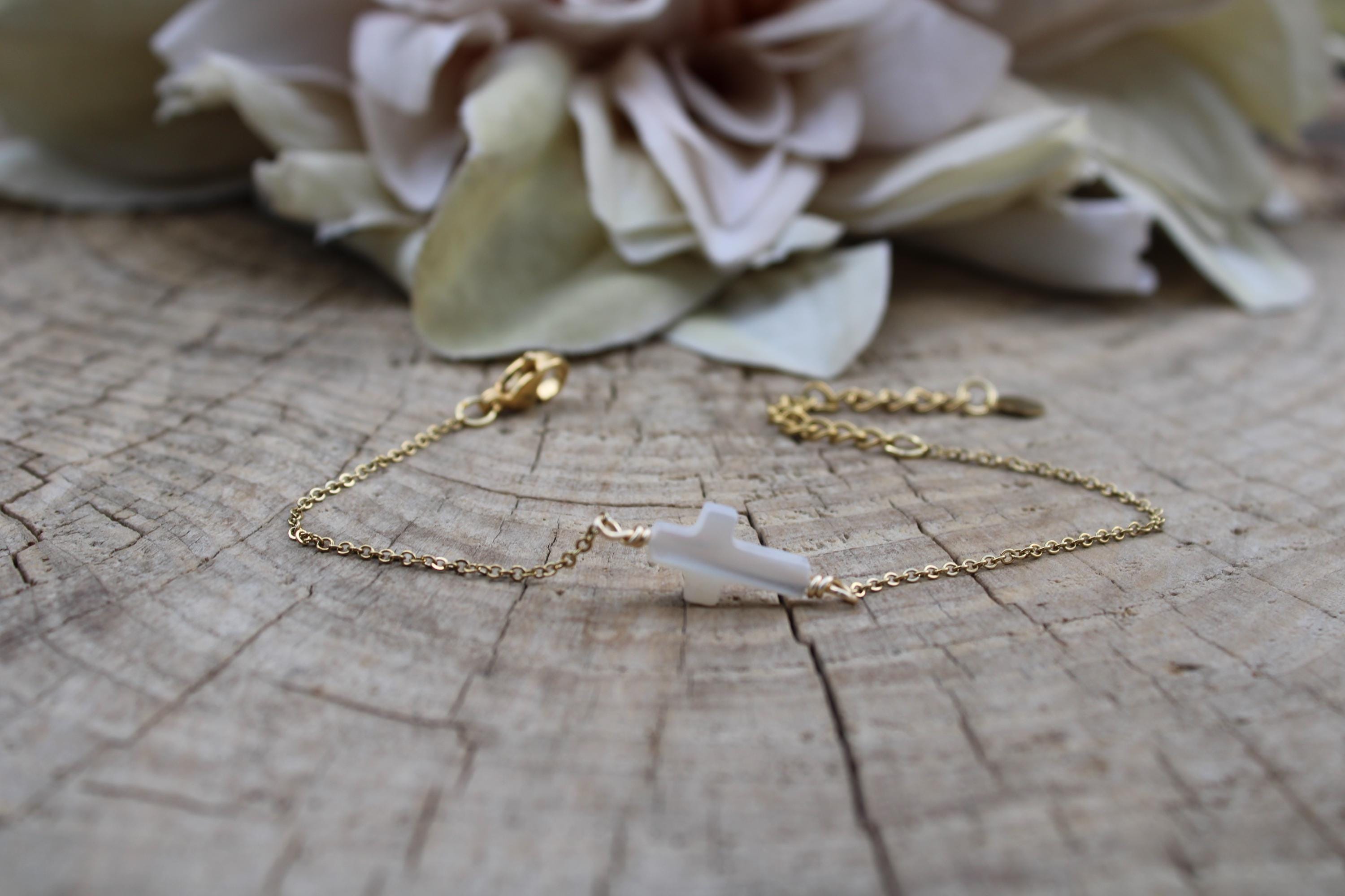 •The focal point is a beautiful mother of pearl cross charm measuring 8 x 12mm.
