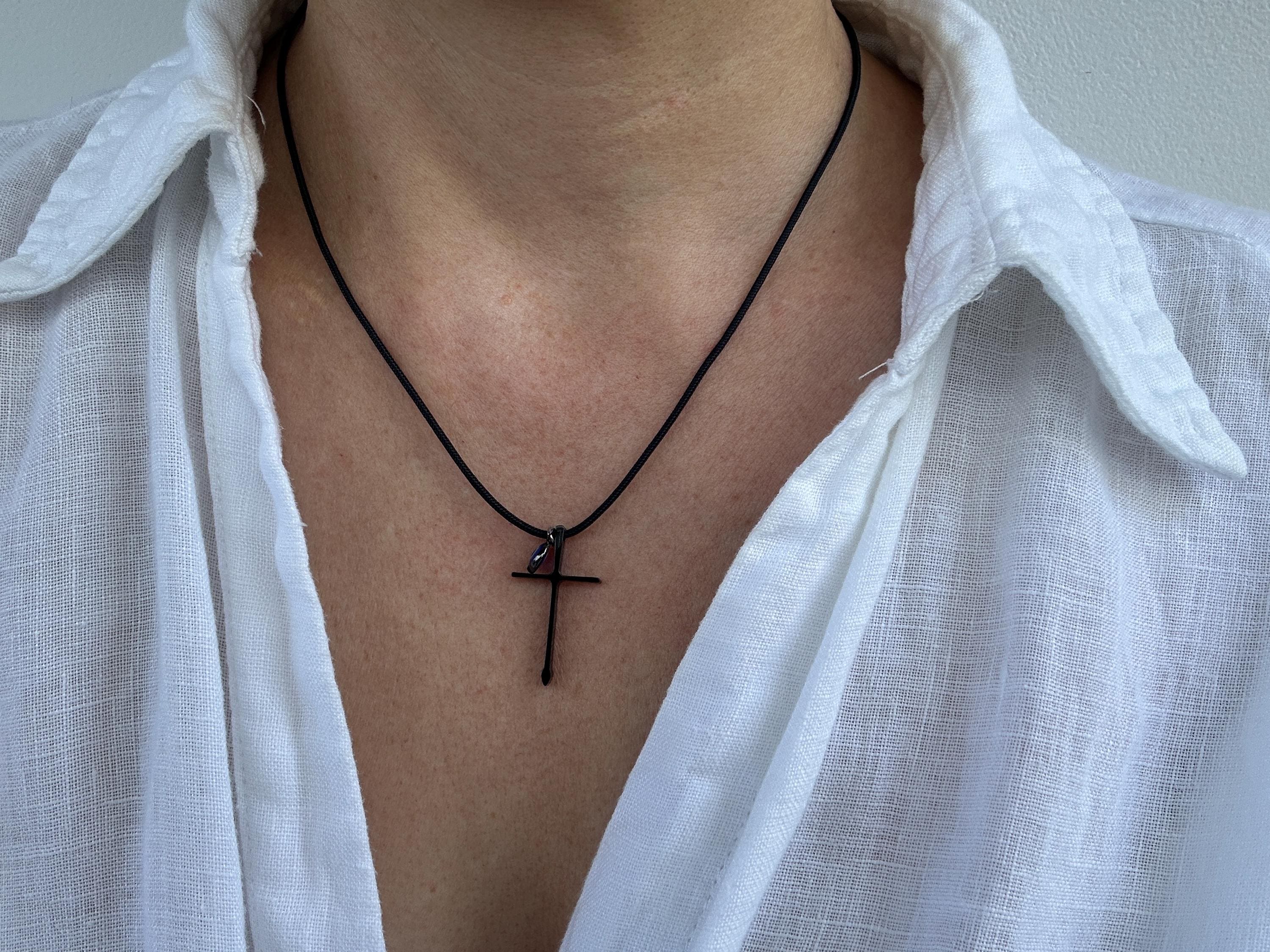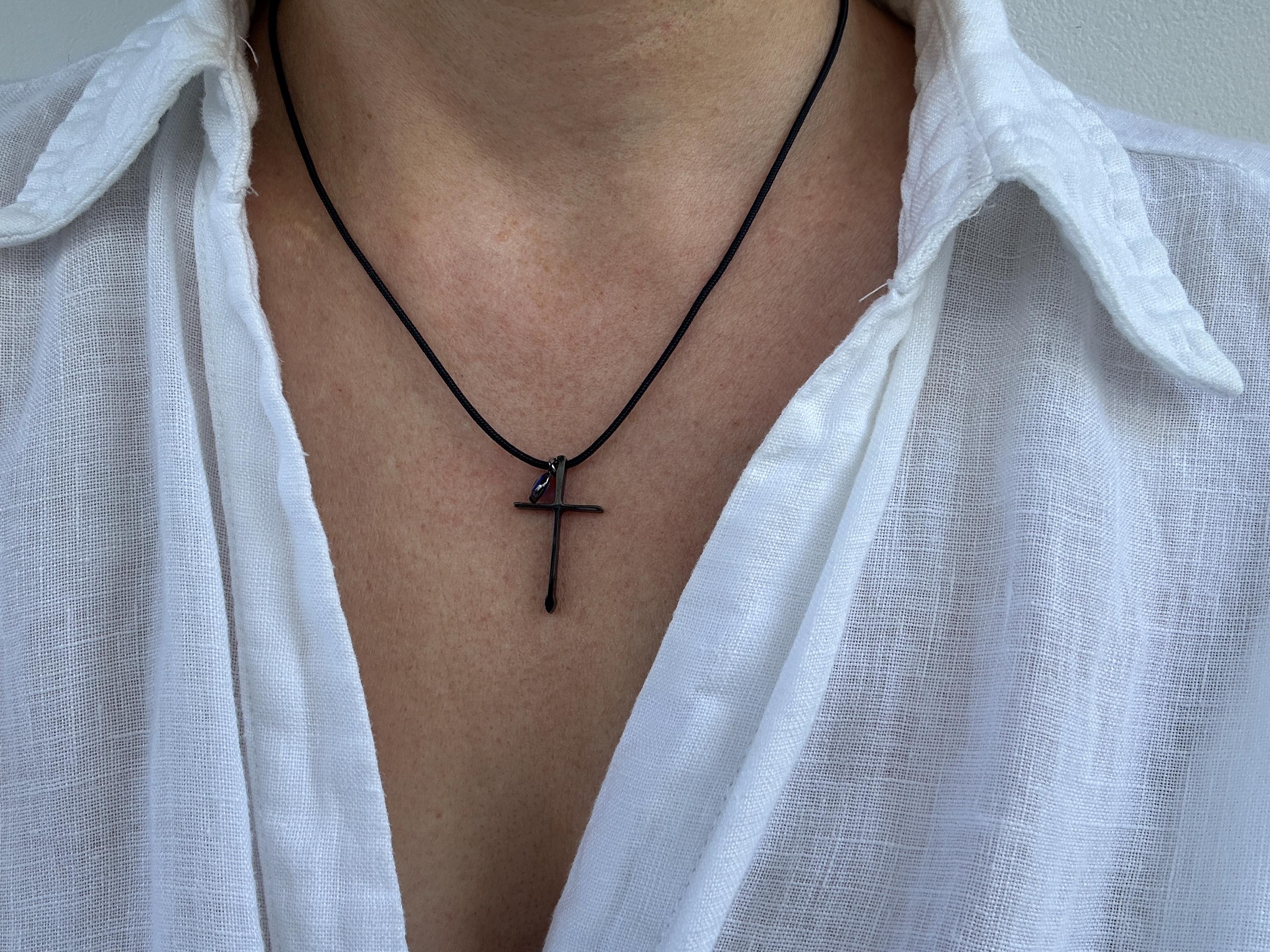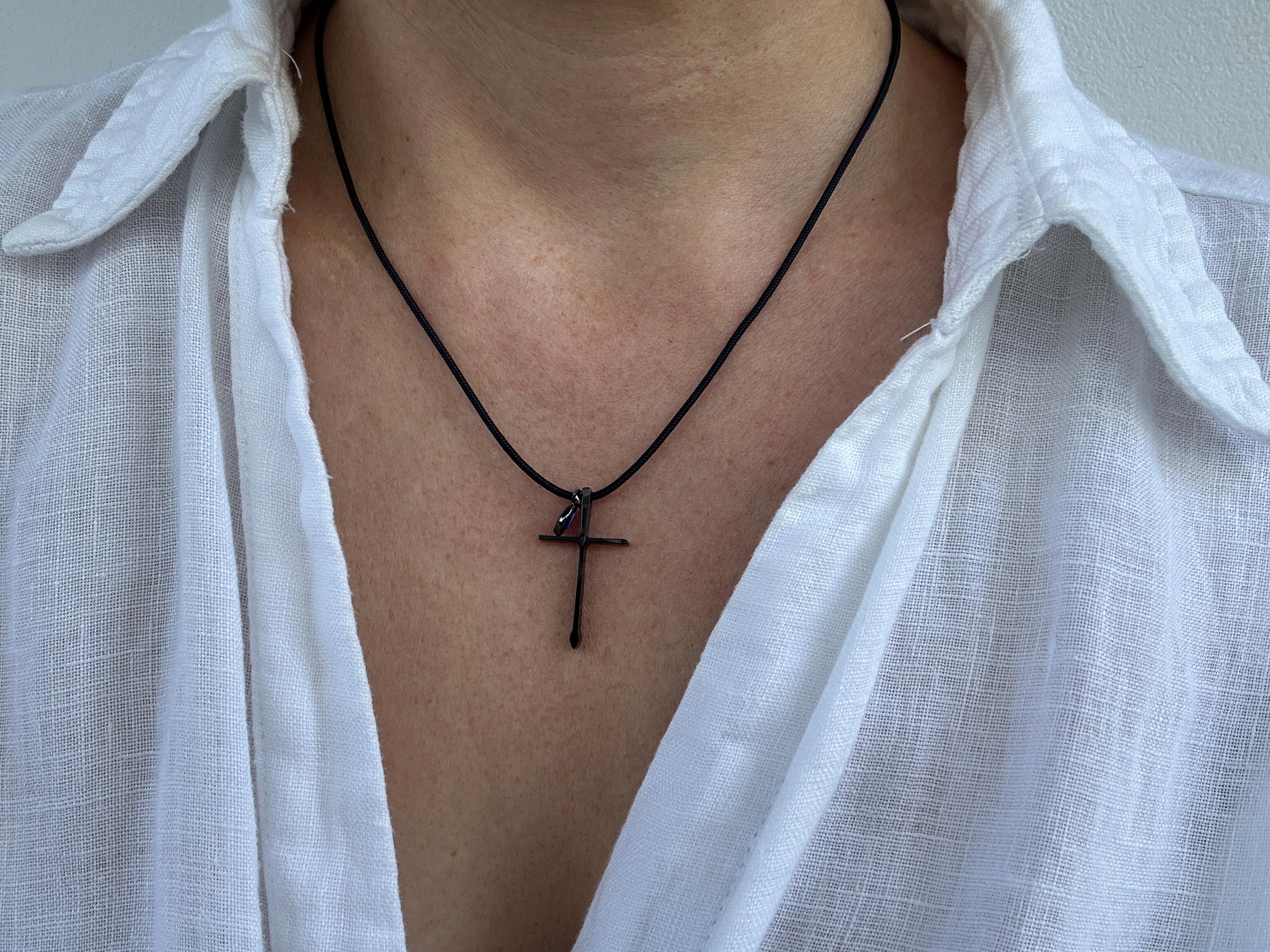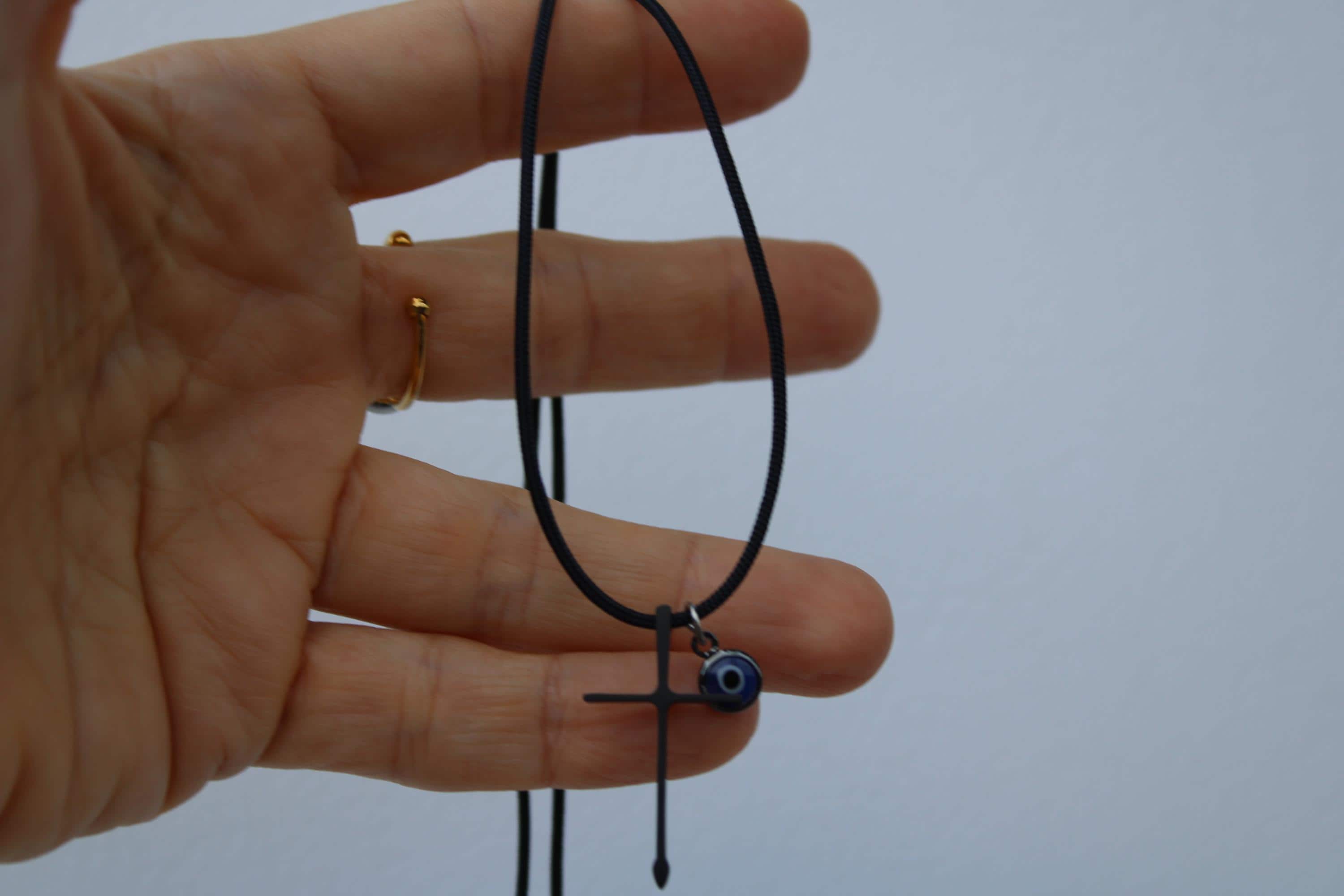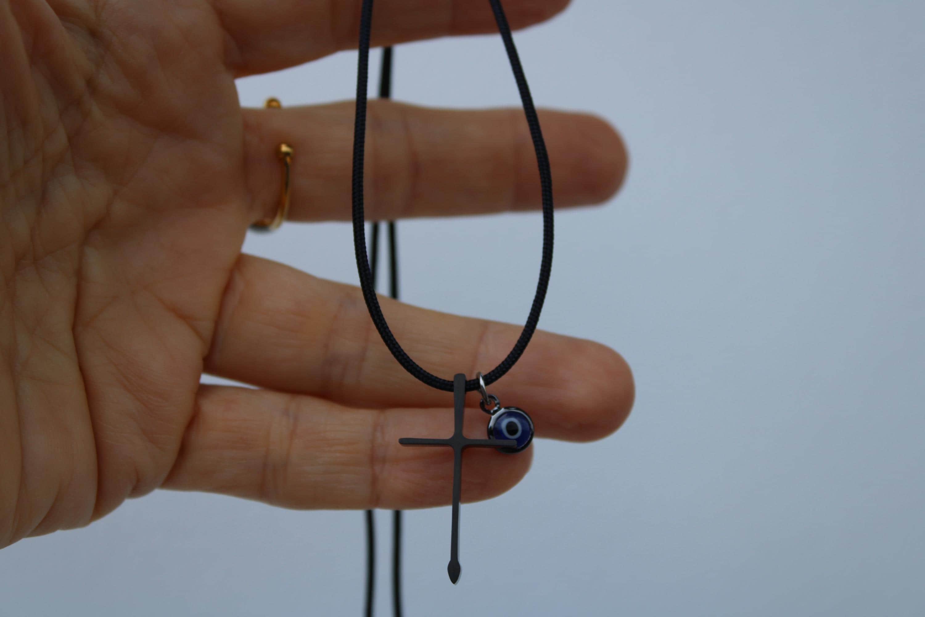 •Made with black stainless steel cross measuring 30mm long and a 6mm stainless steel evil eye.