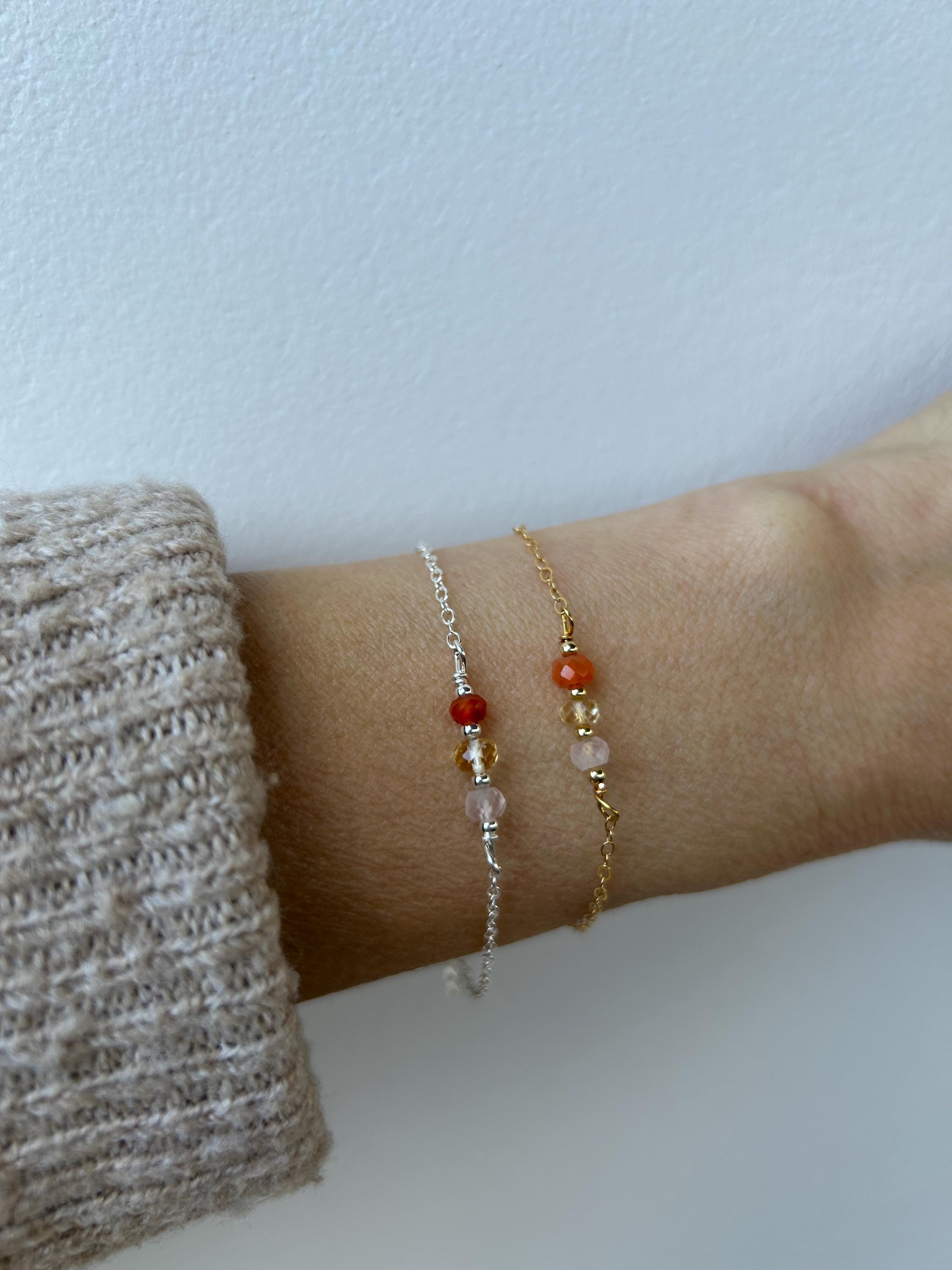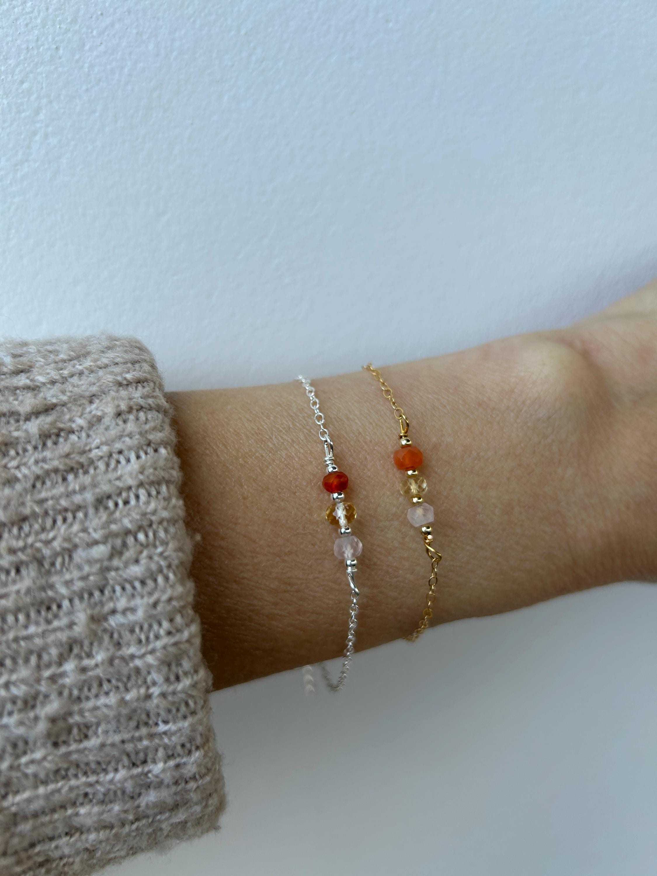 This dainty bracelet features the gentle essence of rose quartz, the vitality of carnelian and the abundance and joy of citrine.