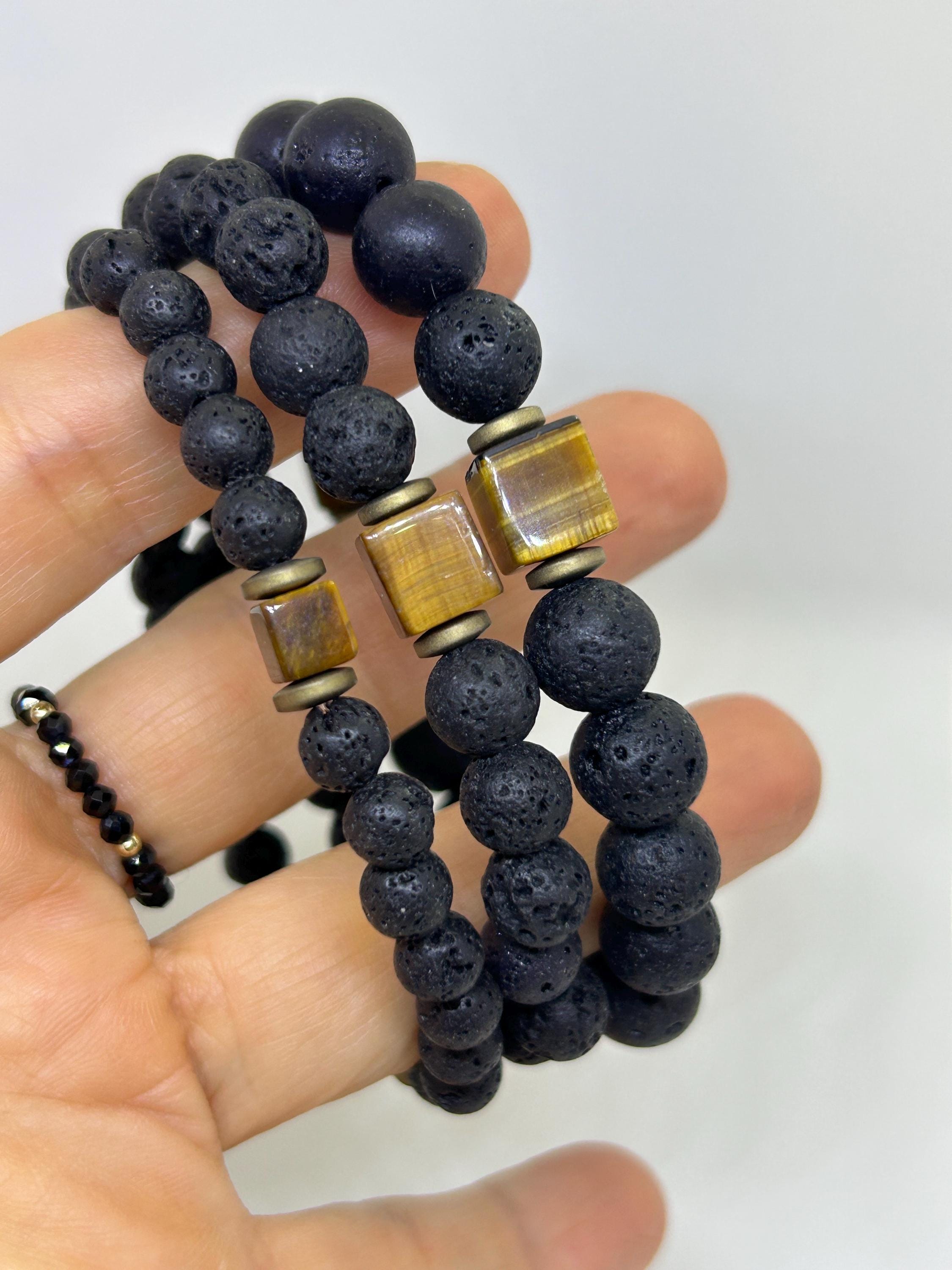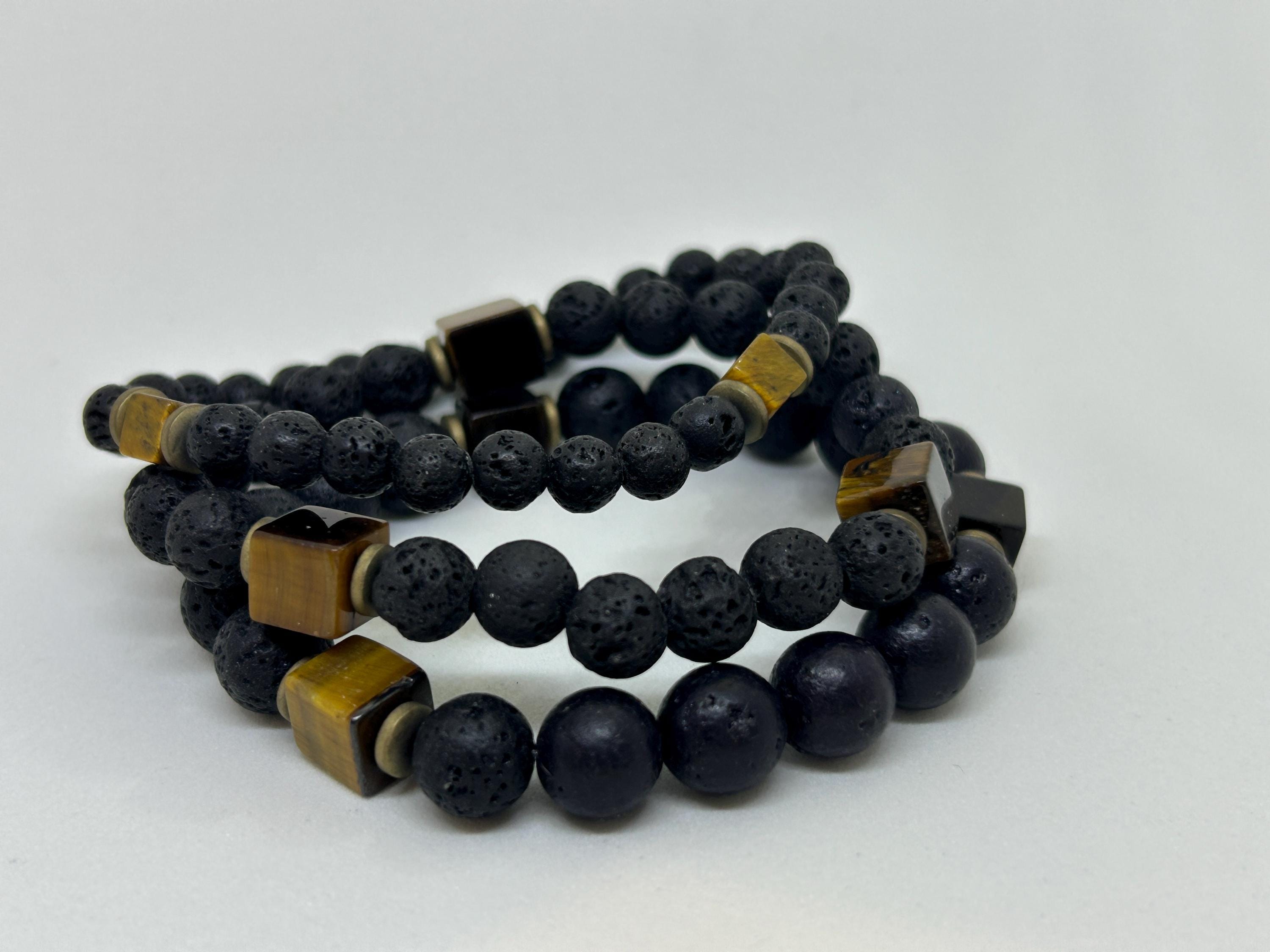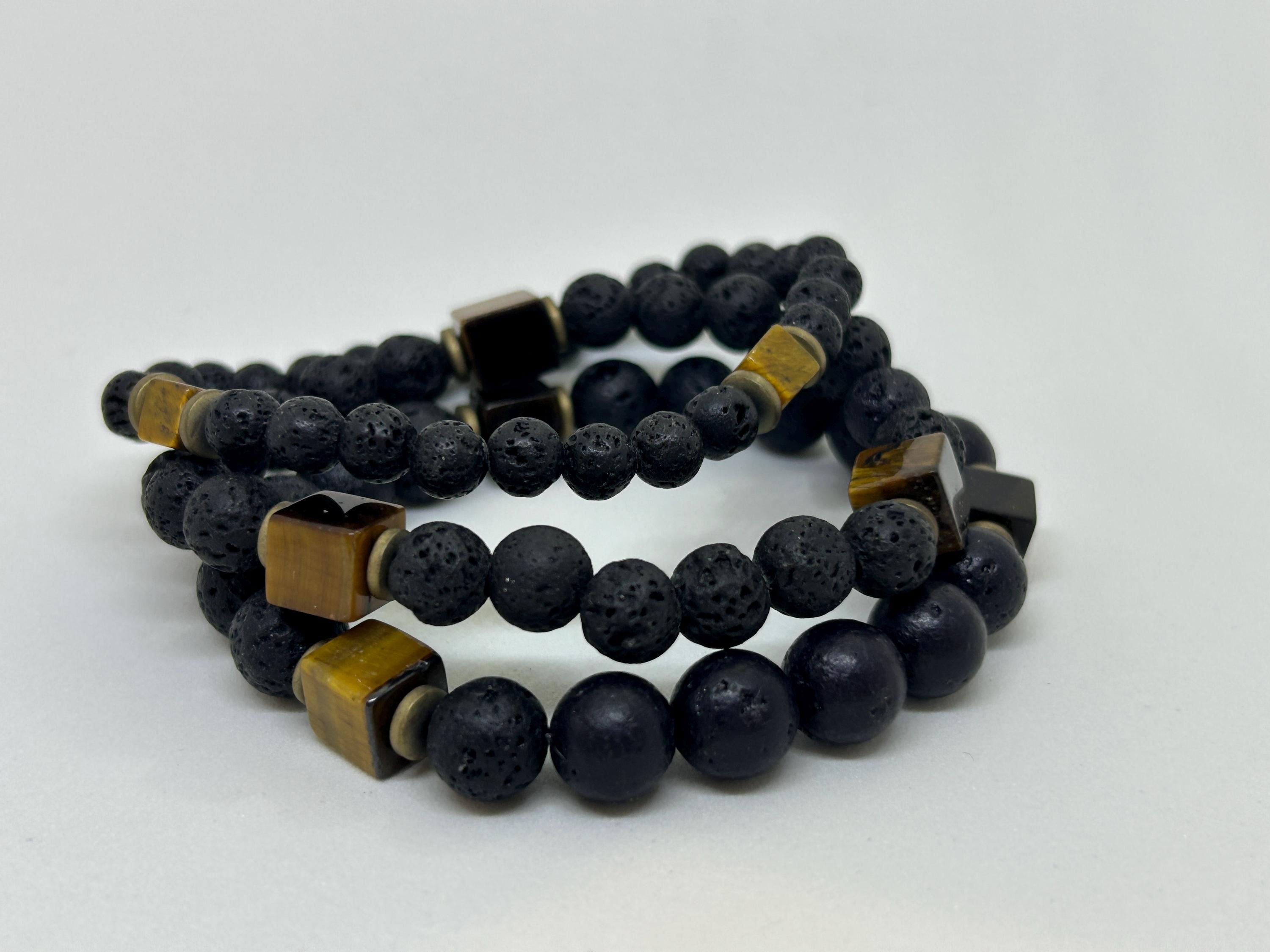 •Made with lava stones and a cubed tiger's eye gemstones. There are three sizes to choose from. 6mm, 8mm and 10mm.