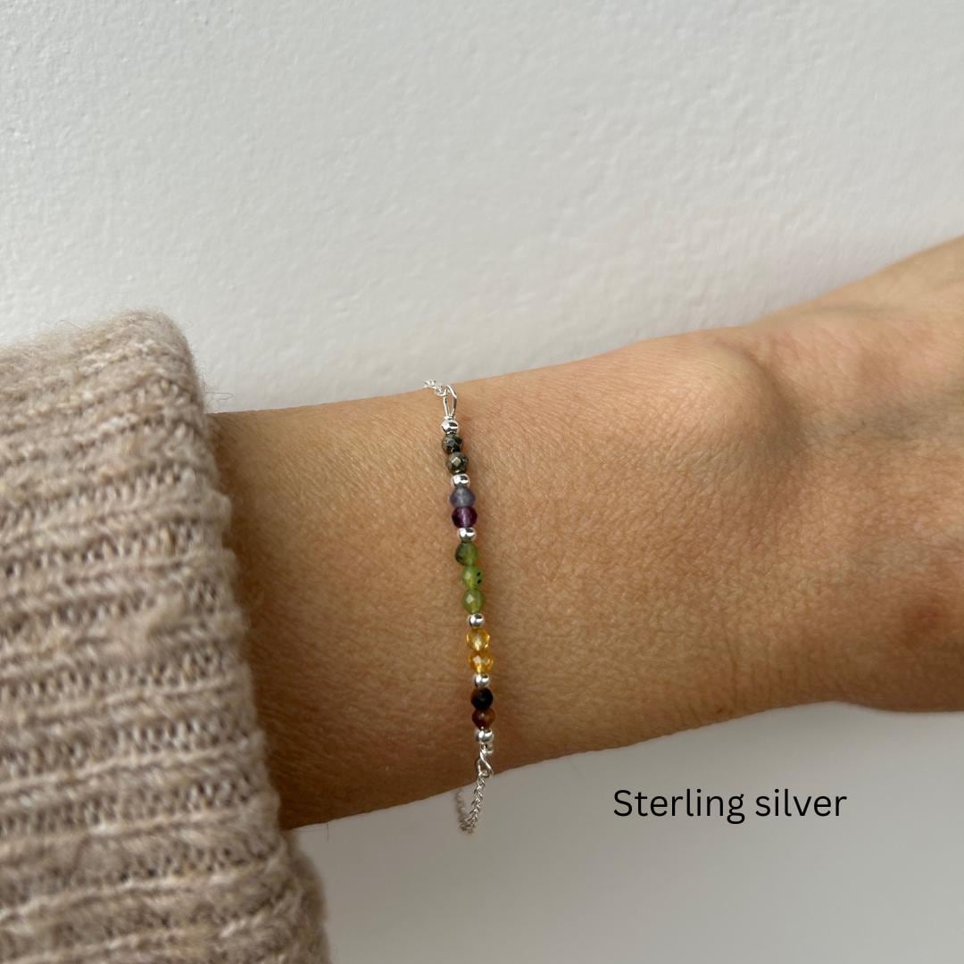 •Made with a line up of high quality micro faceted gemstones in between seamless gold filled/sterling silver or stainless steel bead accordingly.
