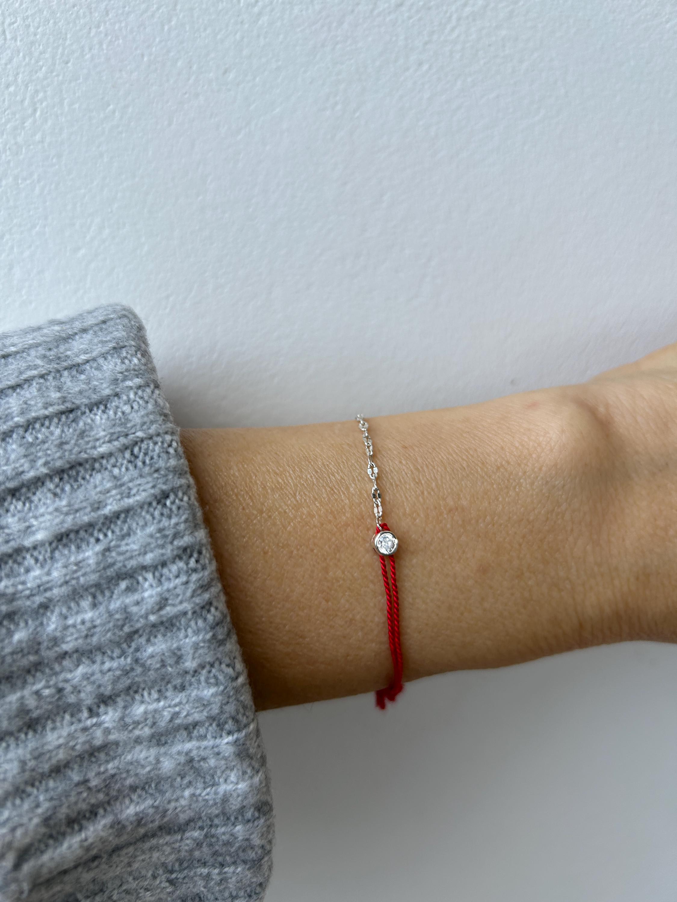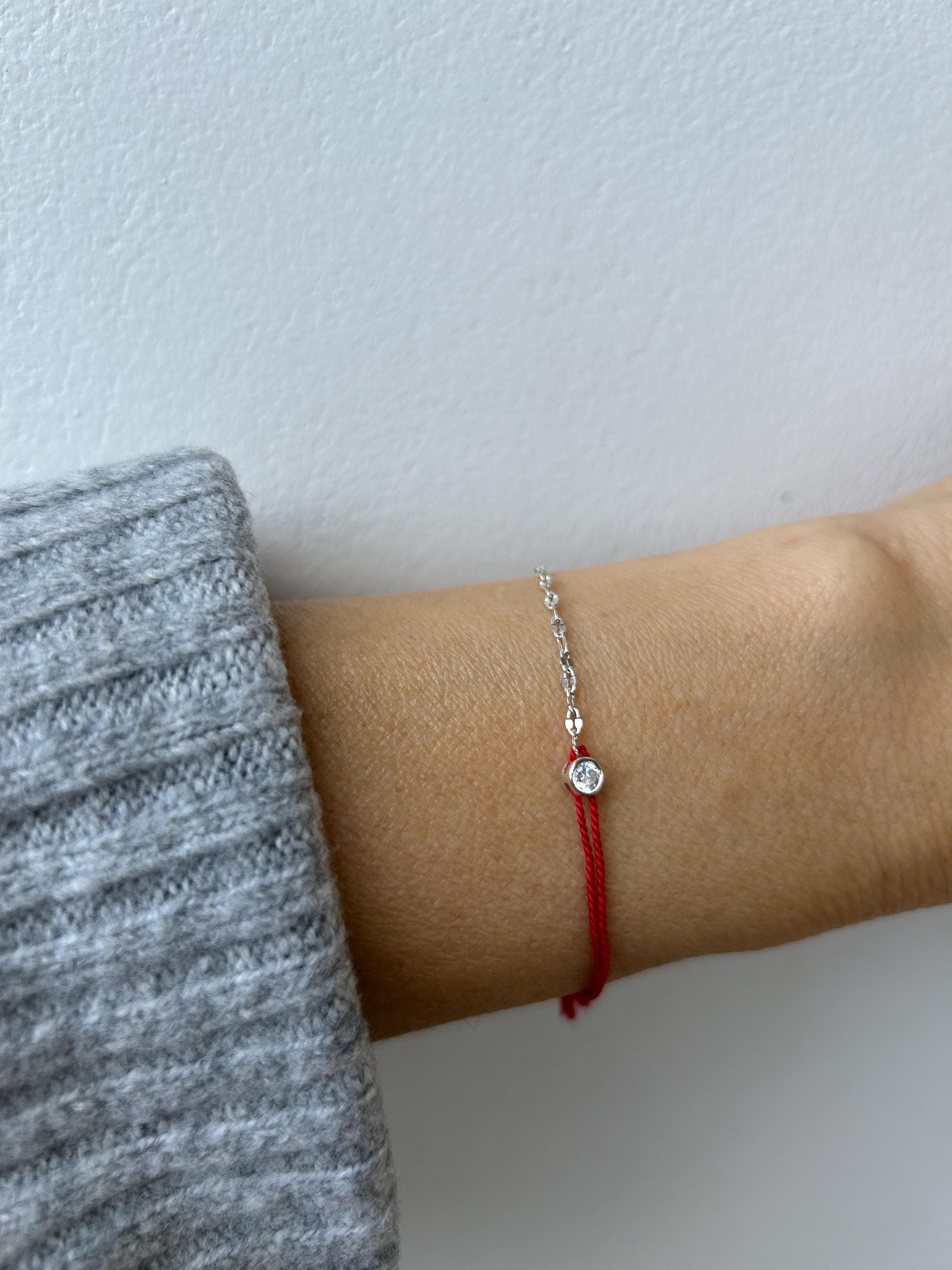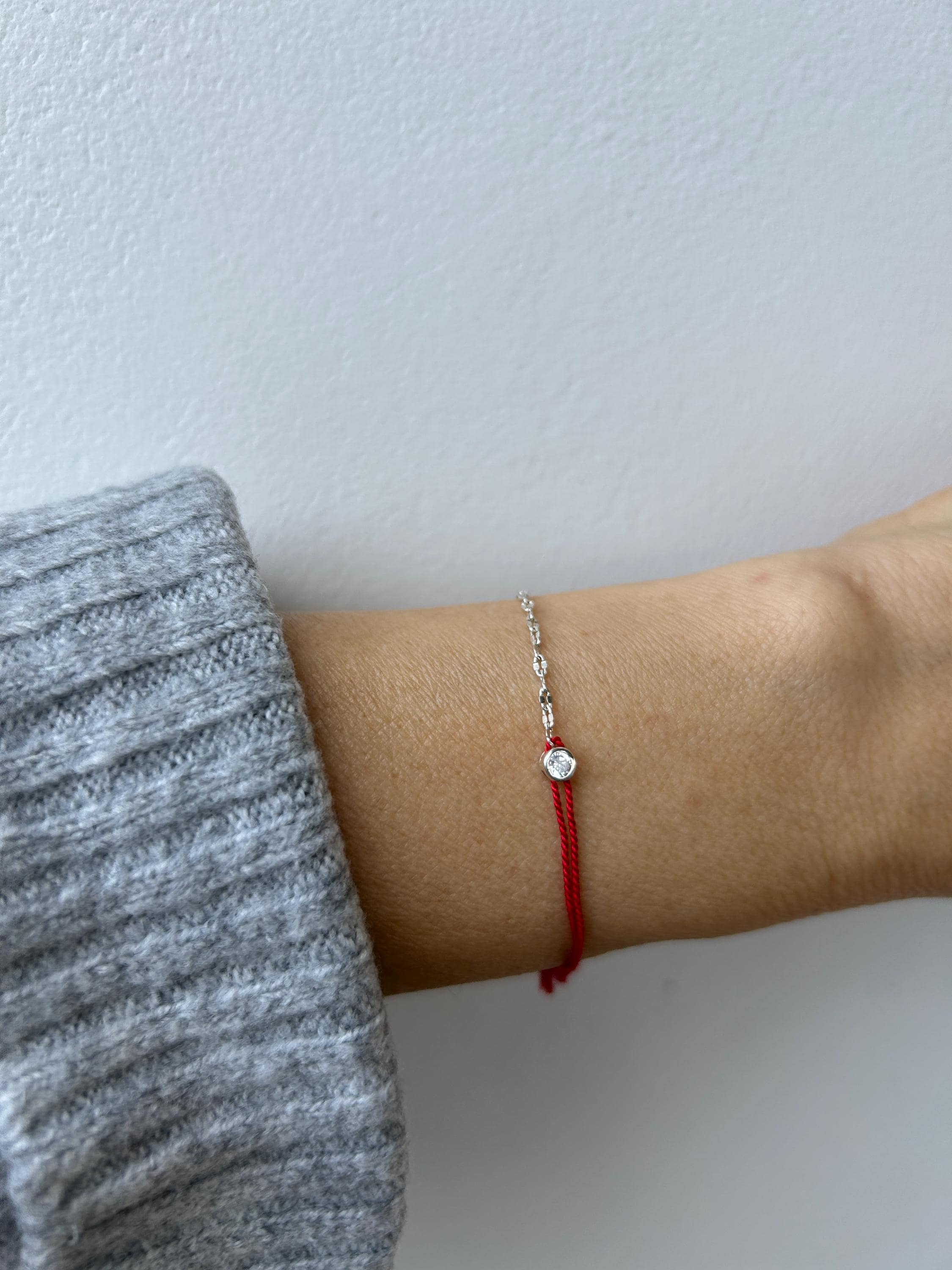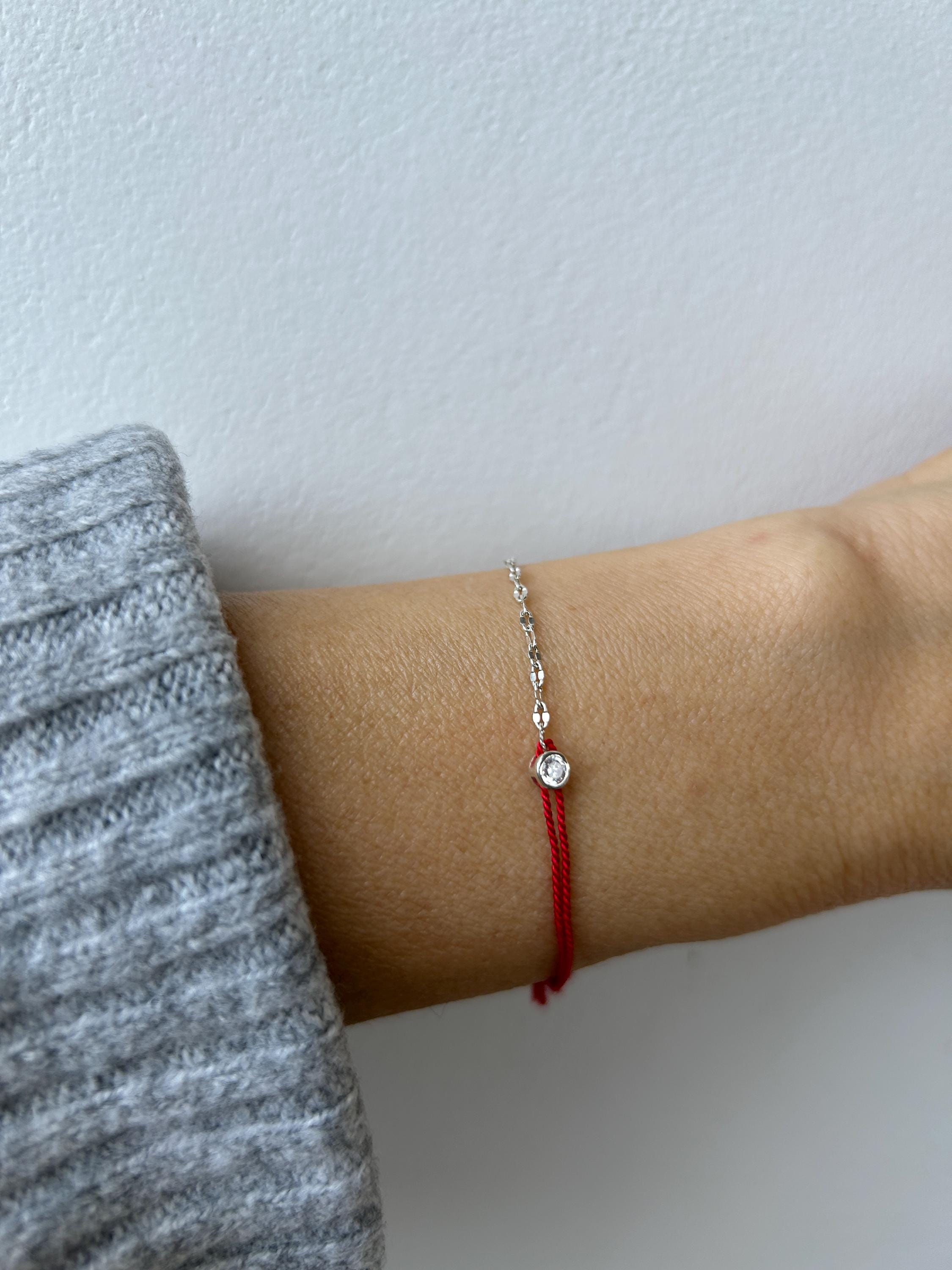 Keep yourself protected with this minimalist red string bracelet that combines a natural silk cord and a beautiful sterling silver chain.