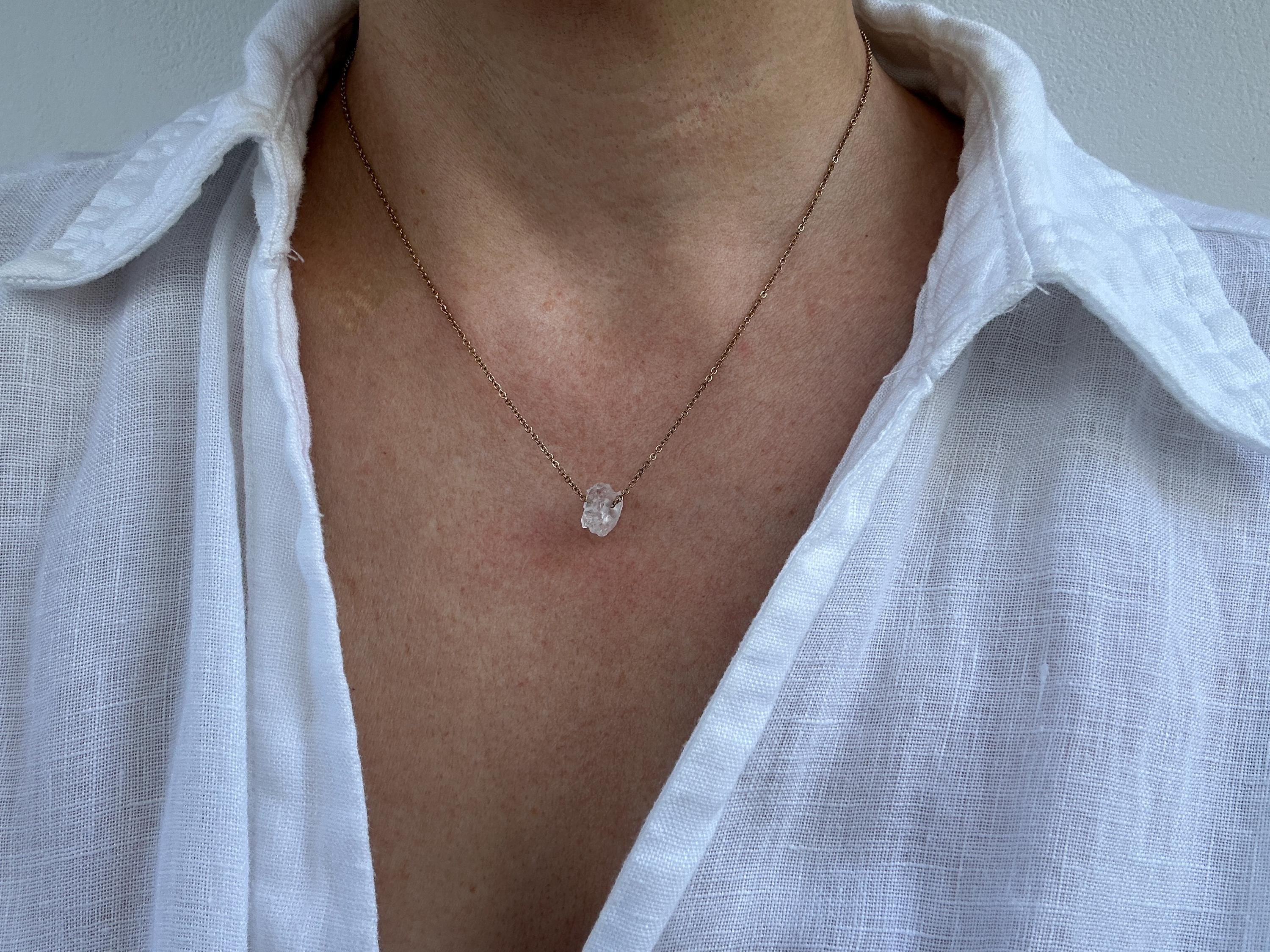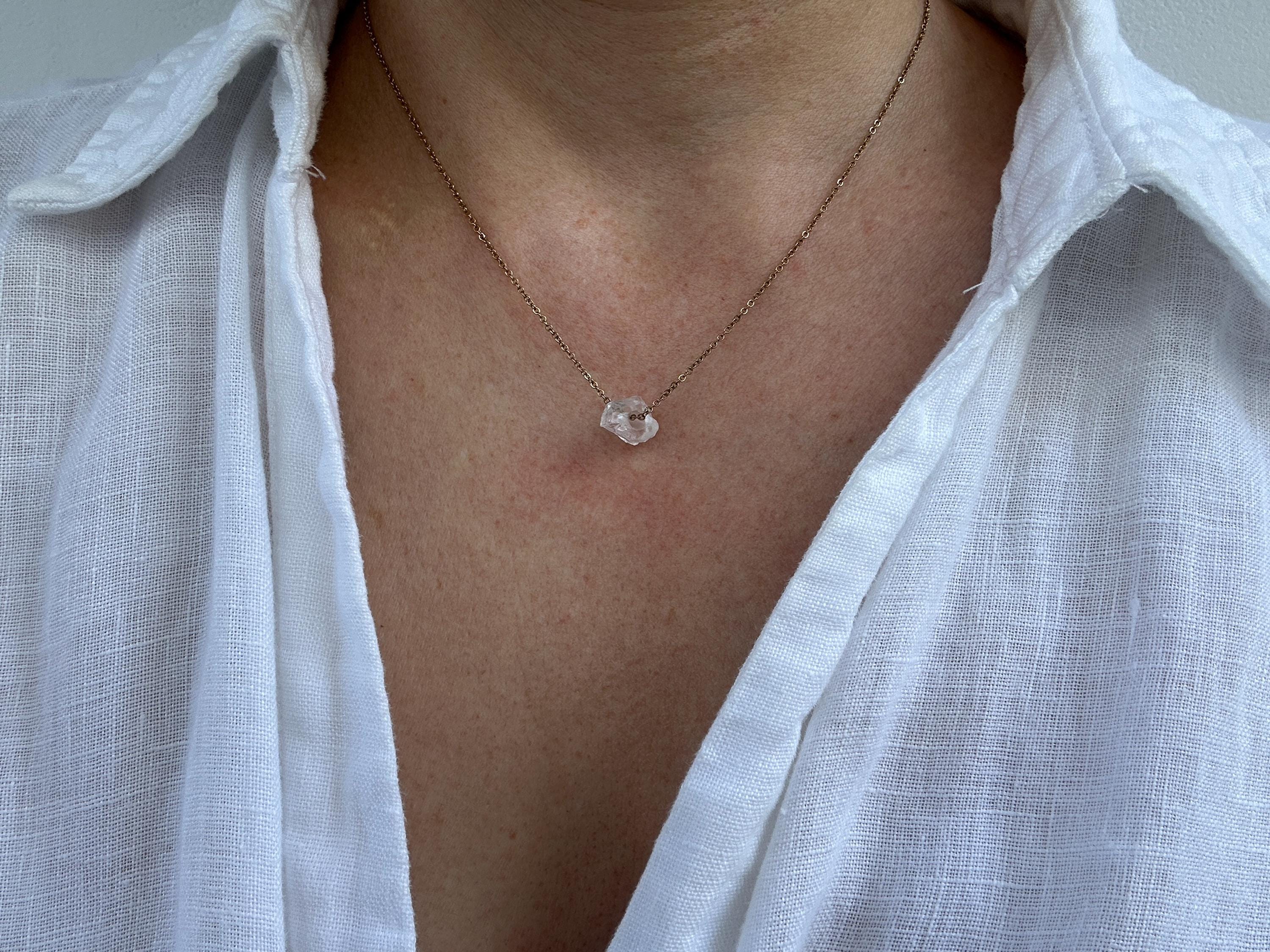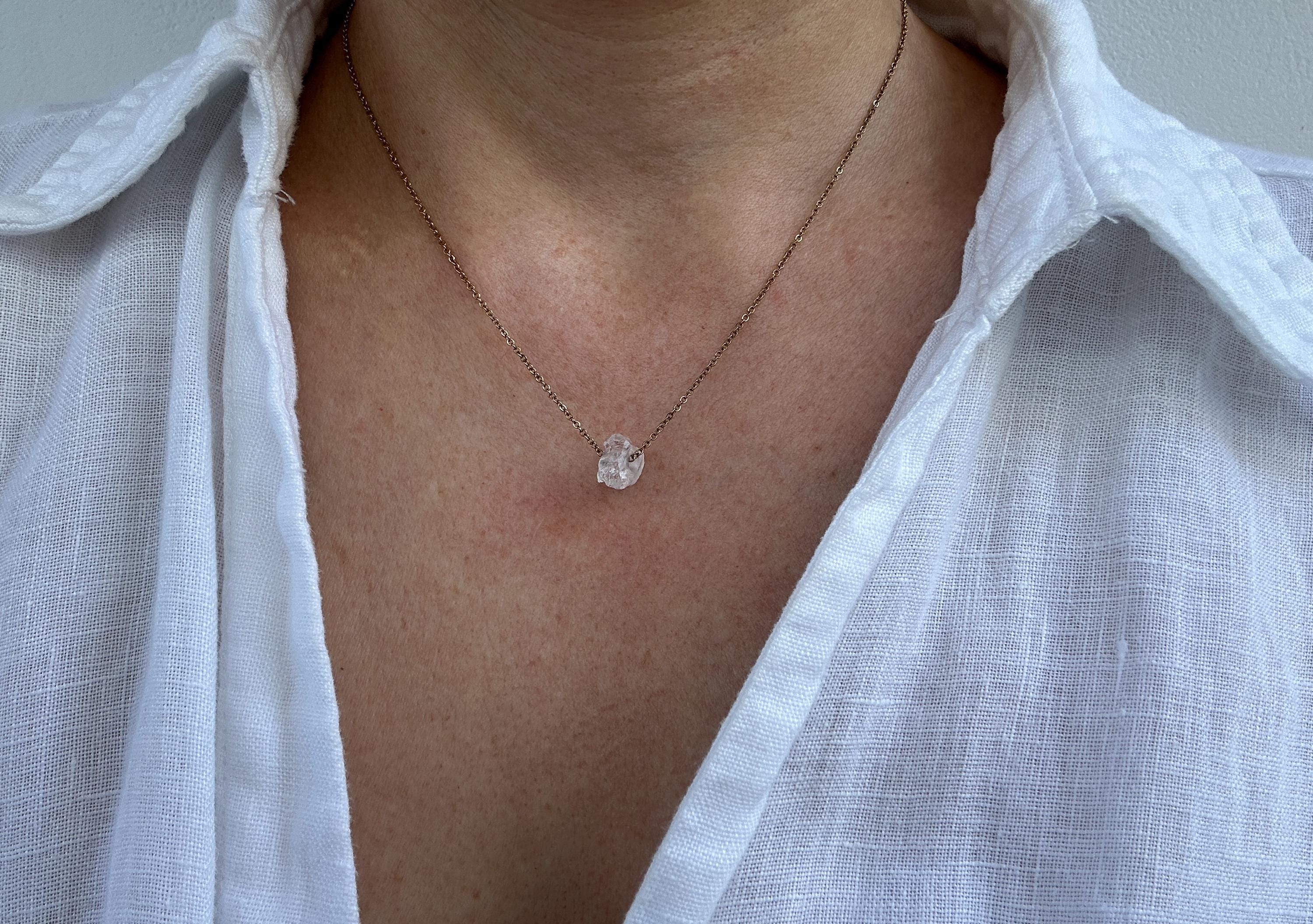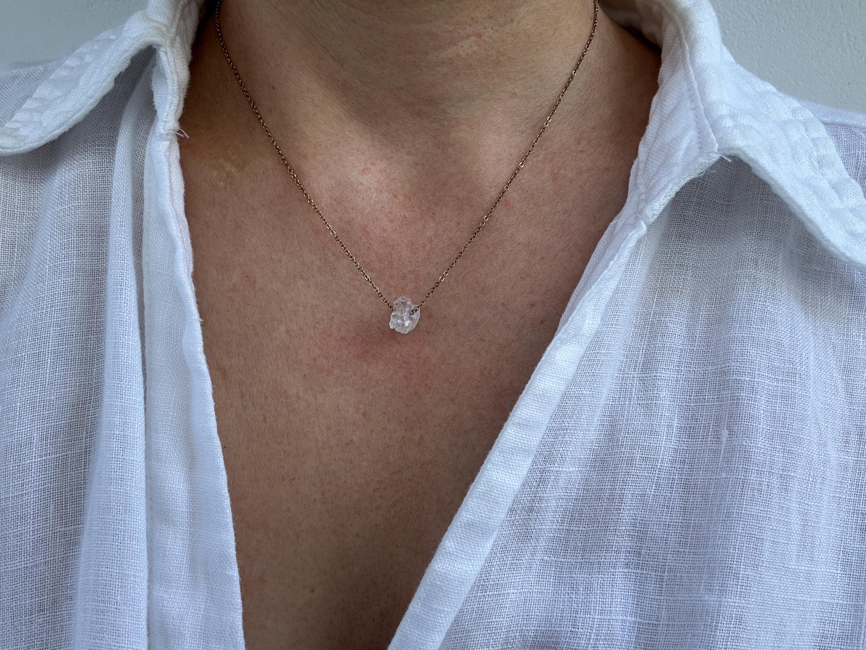 A beautiful raw crystal is combined with a delicate chain to create this lovely necklace with powerful healing powers.