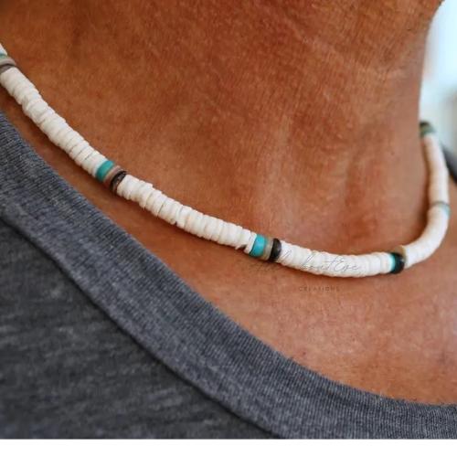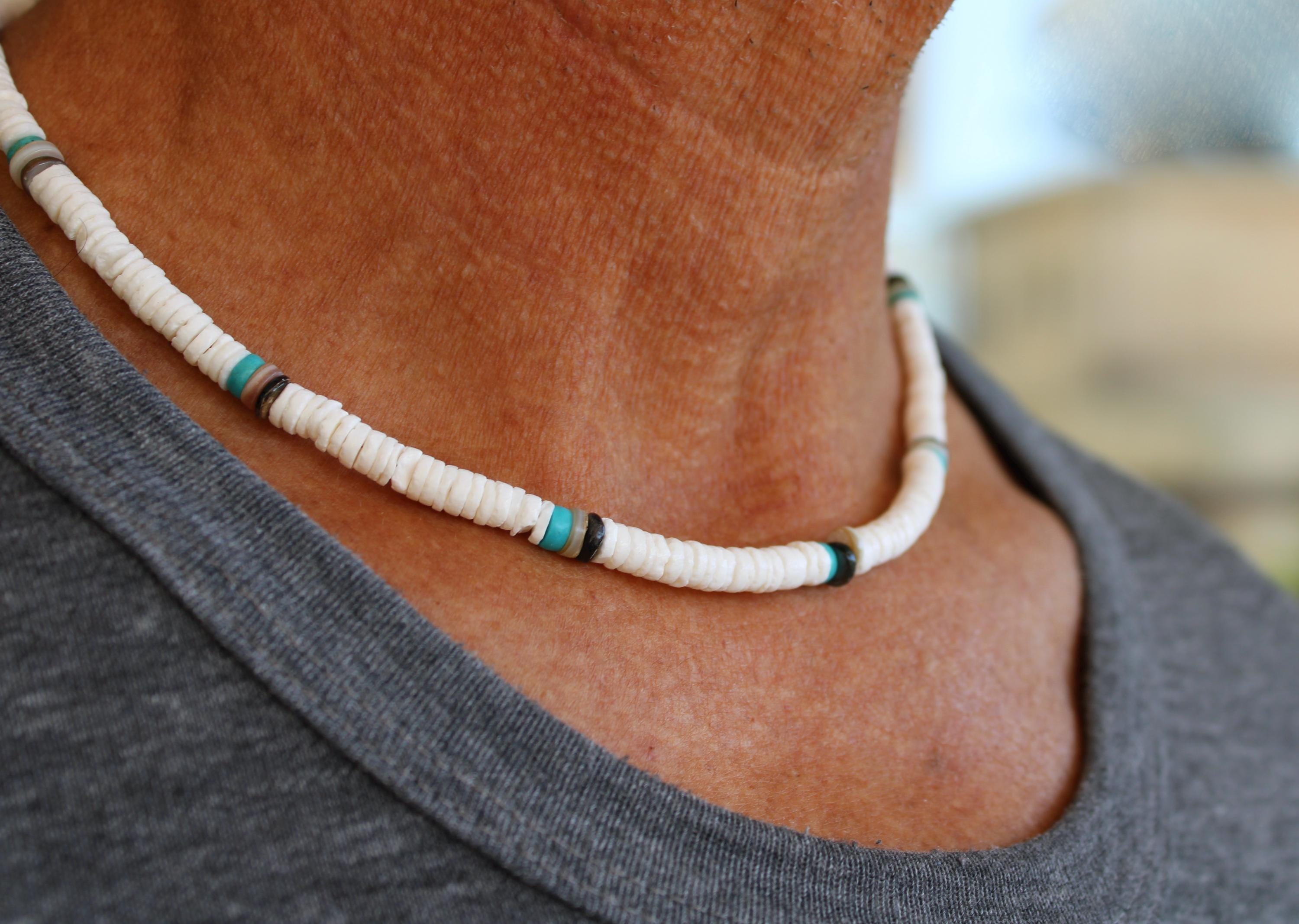 This striking necklace for men is perfect for the beach or an everyday casual look. It will hold up very well in water so you can wear this on the beach.
