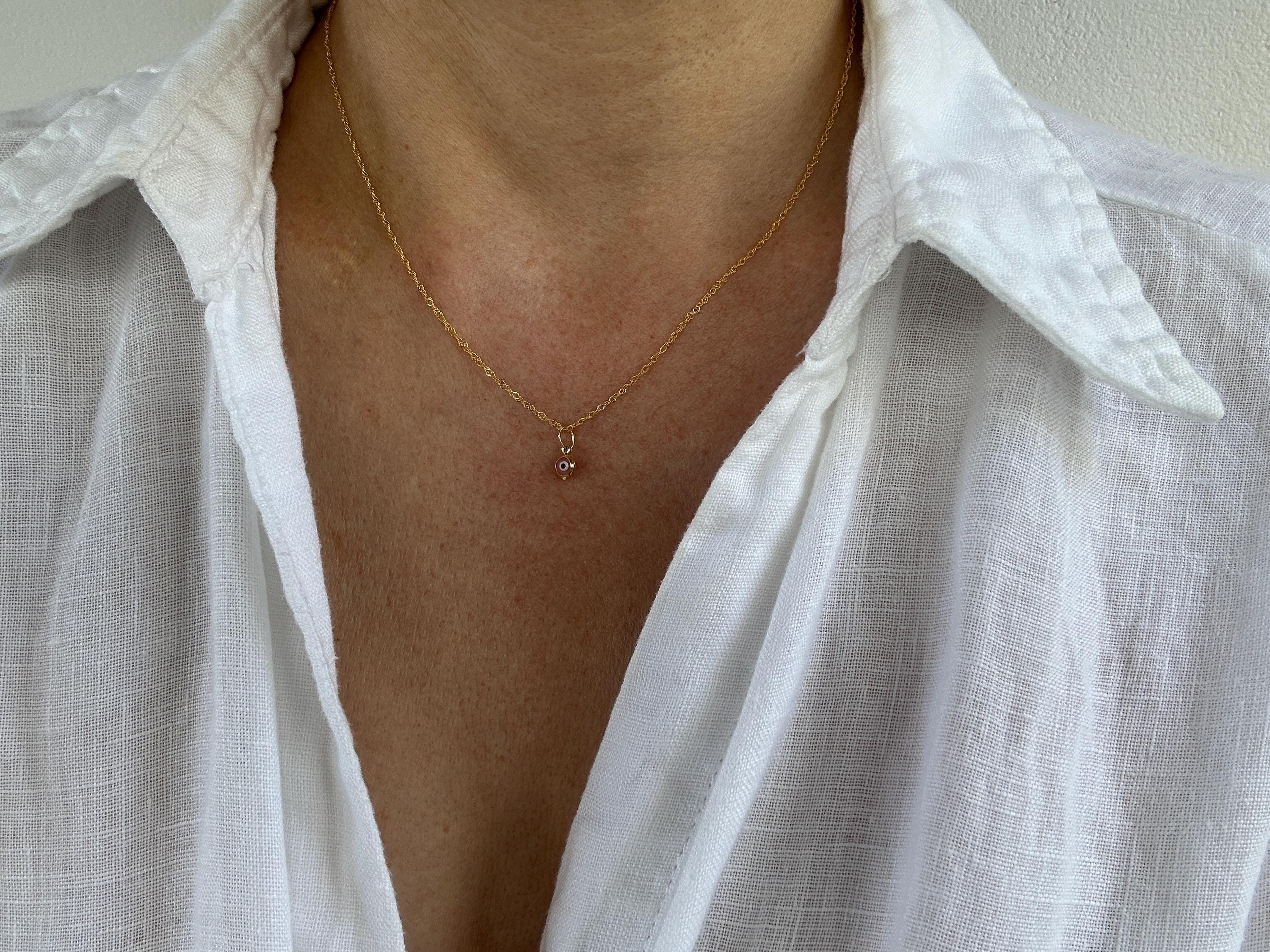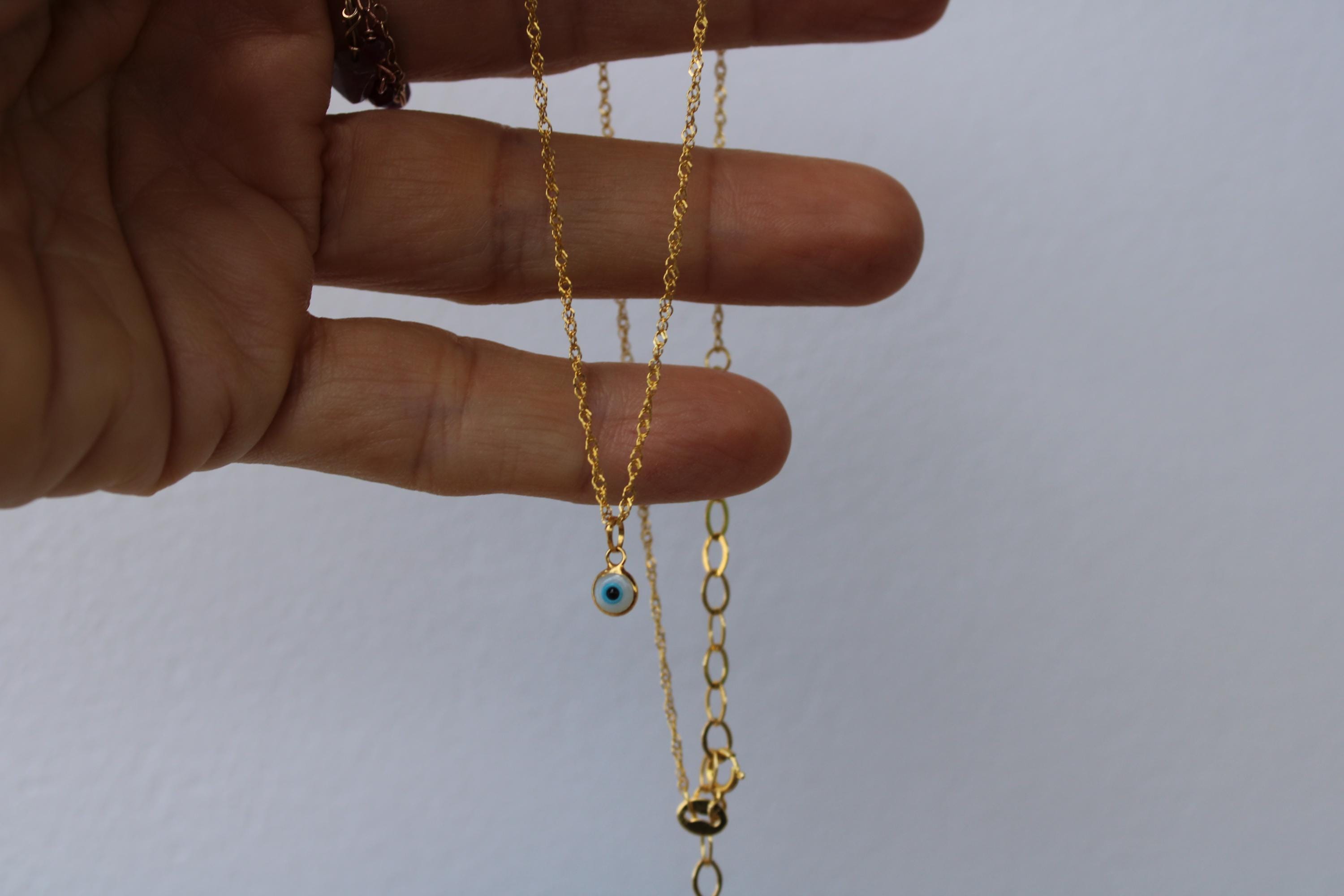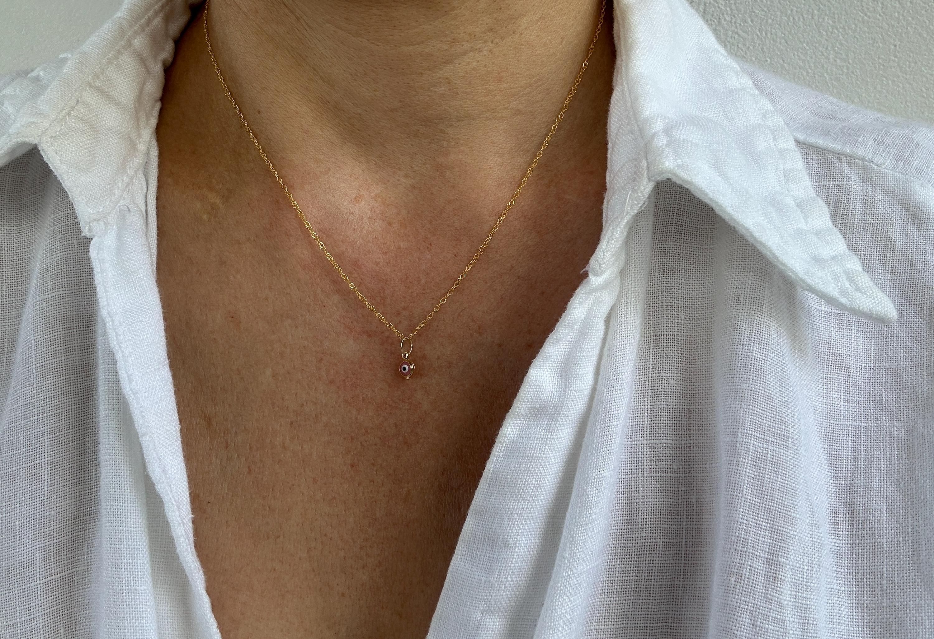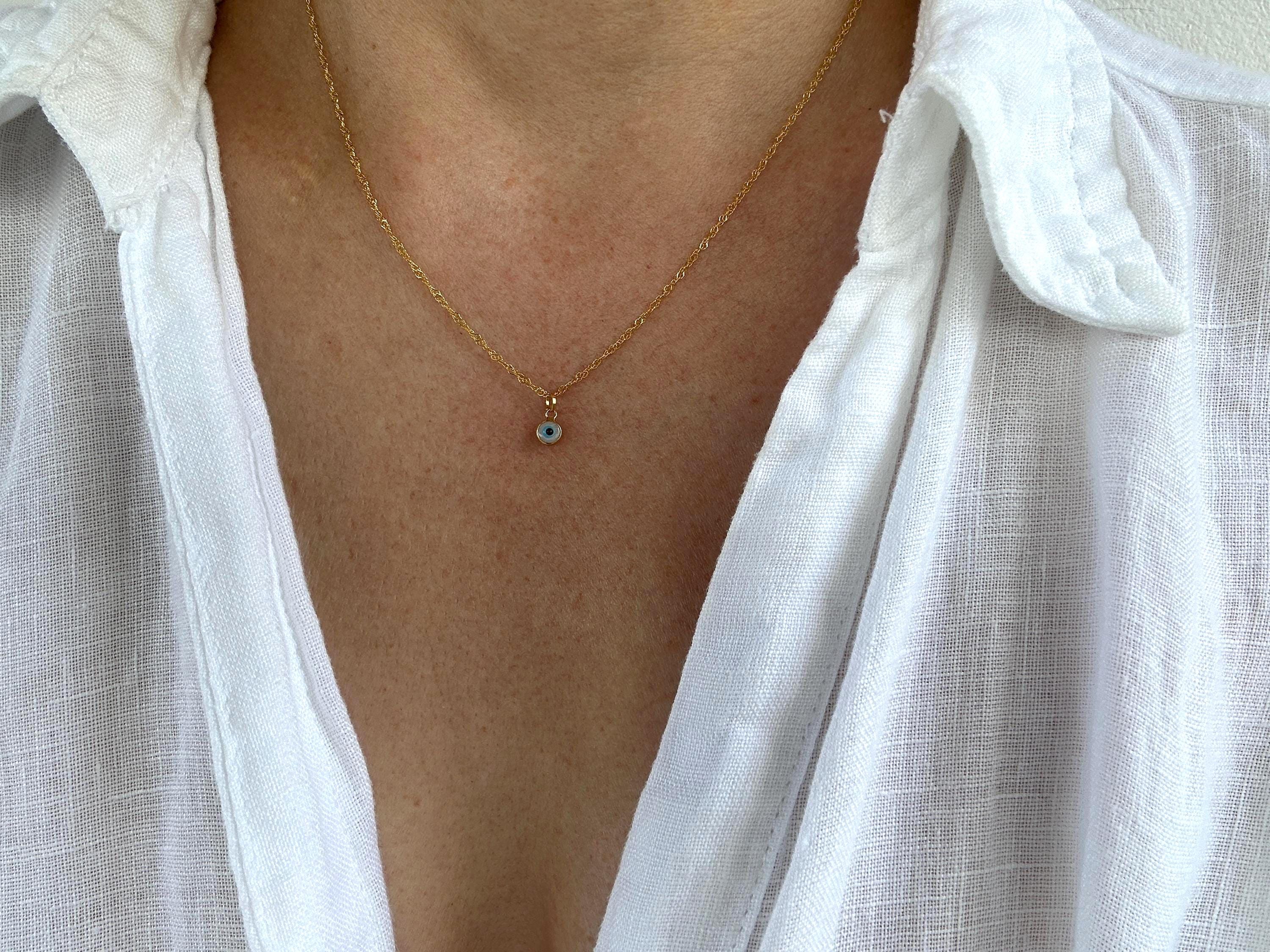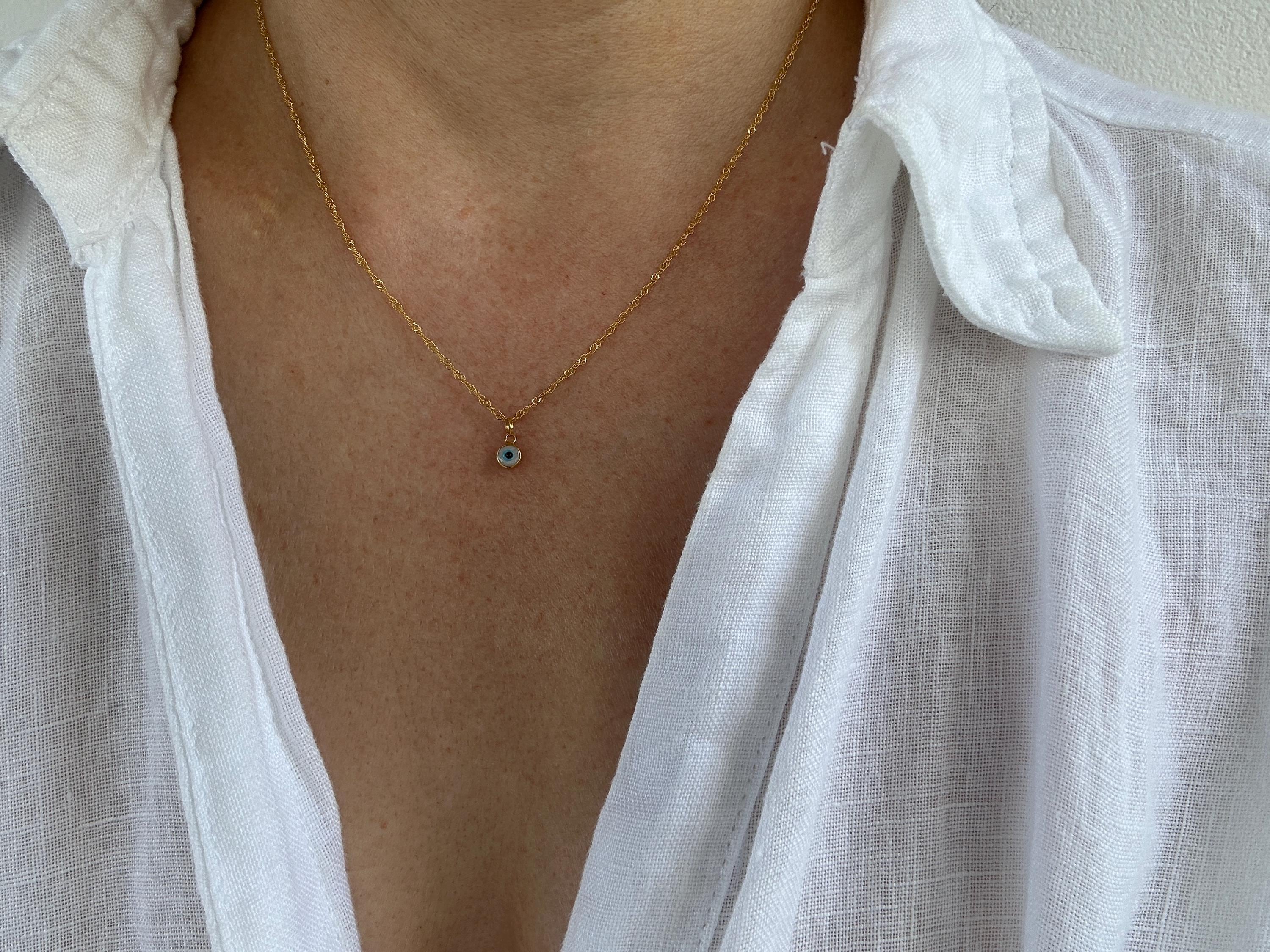 Keep yourself protected with this super dainty evil eye necklace that is perfect for the minimalist.