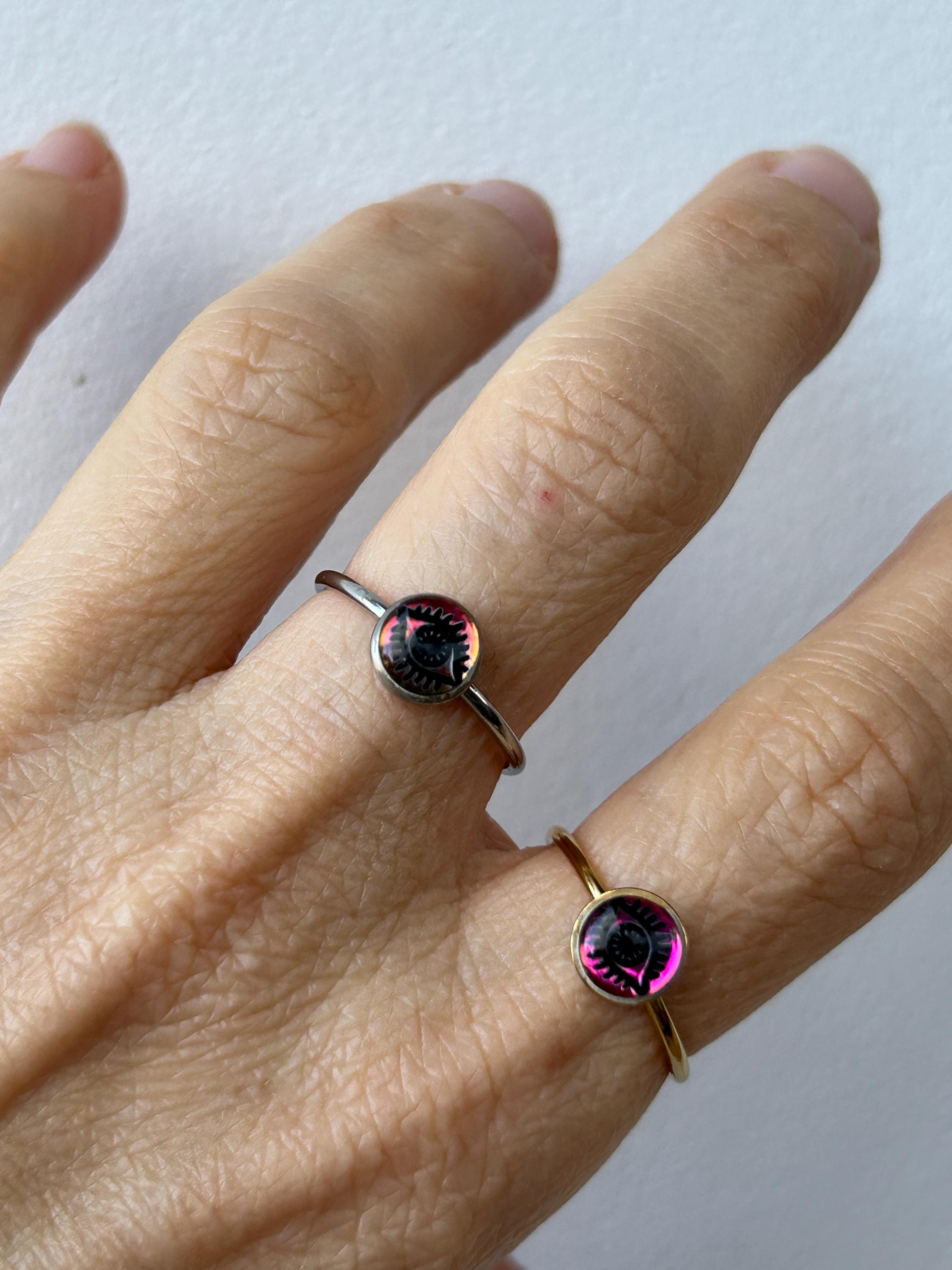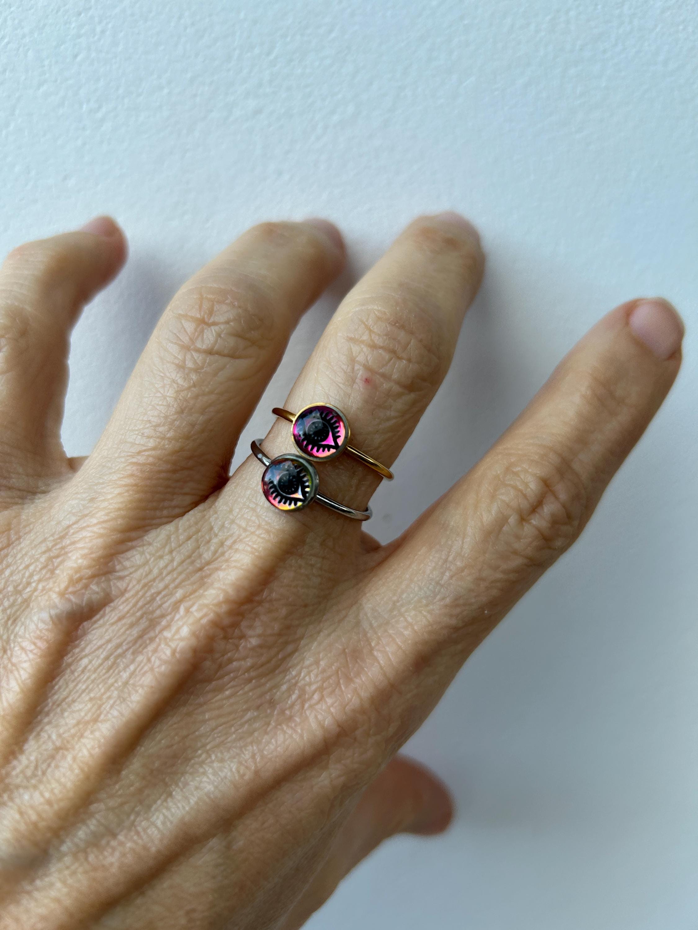 To keep your ring in great condition remove before bathing and showering which could cause the eye to come unstuck.