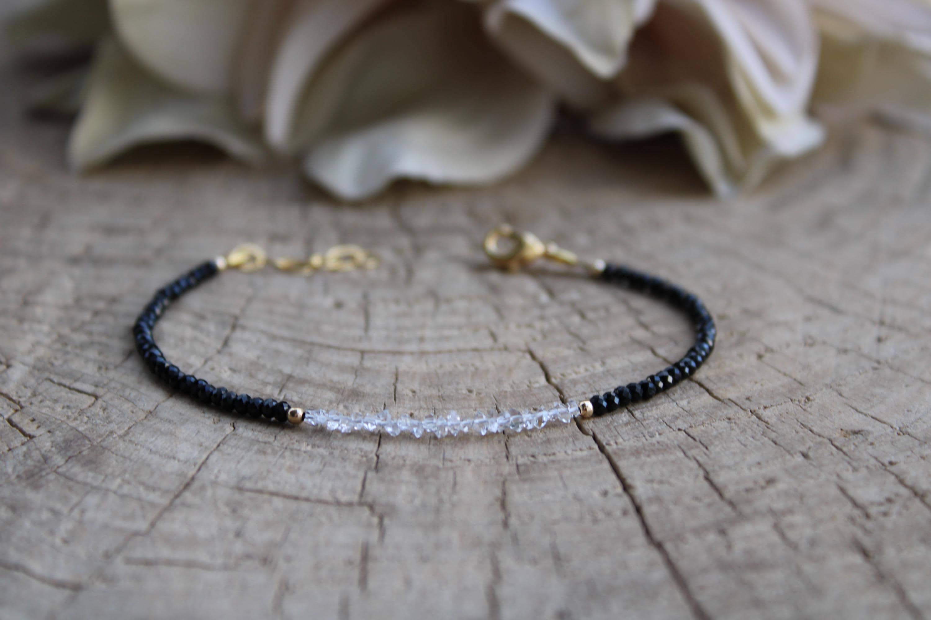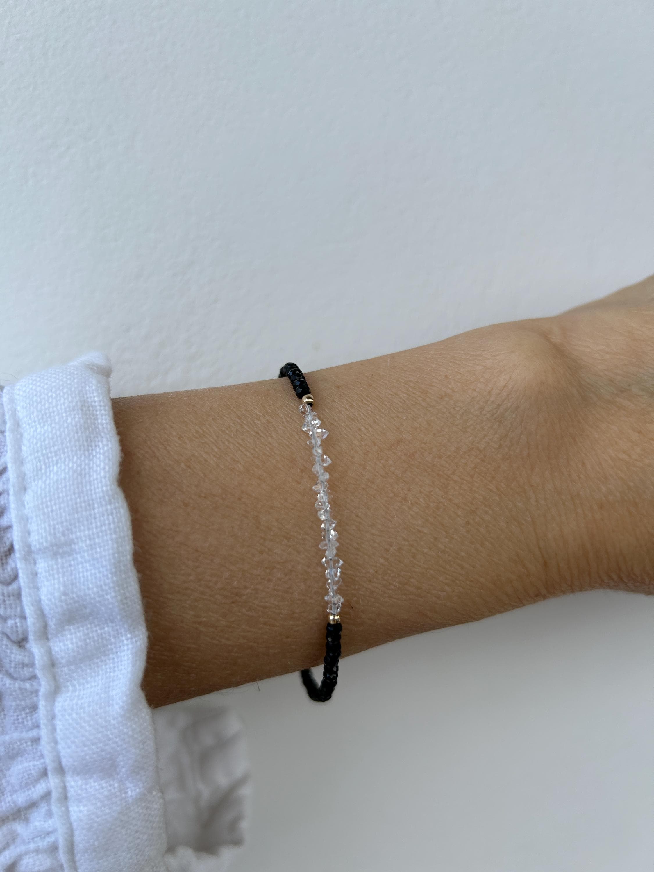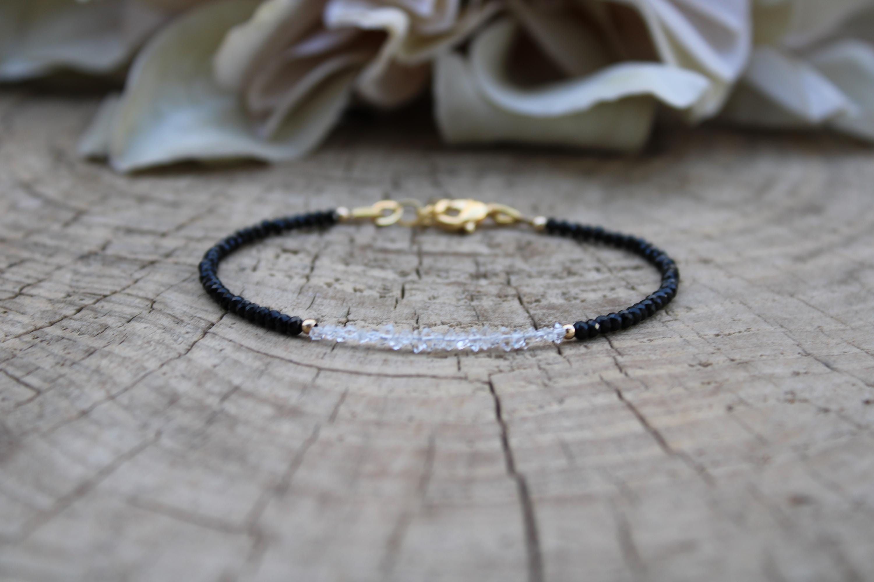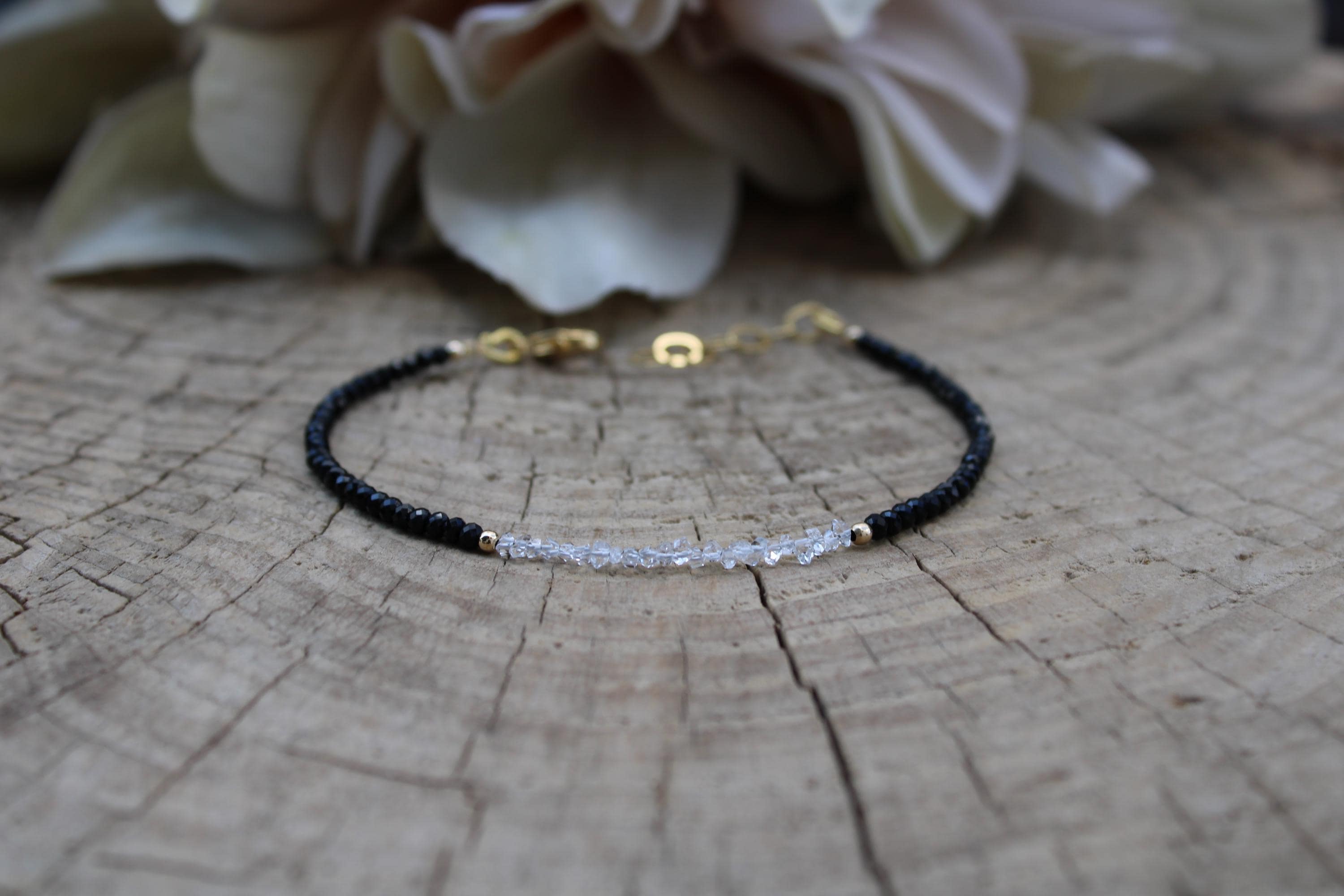 Black tourmaline which is also a powerful protection stone has been combined with beautiful herkimer diamonds that are associated with spiritual awareness.