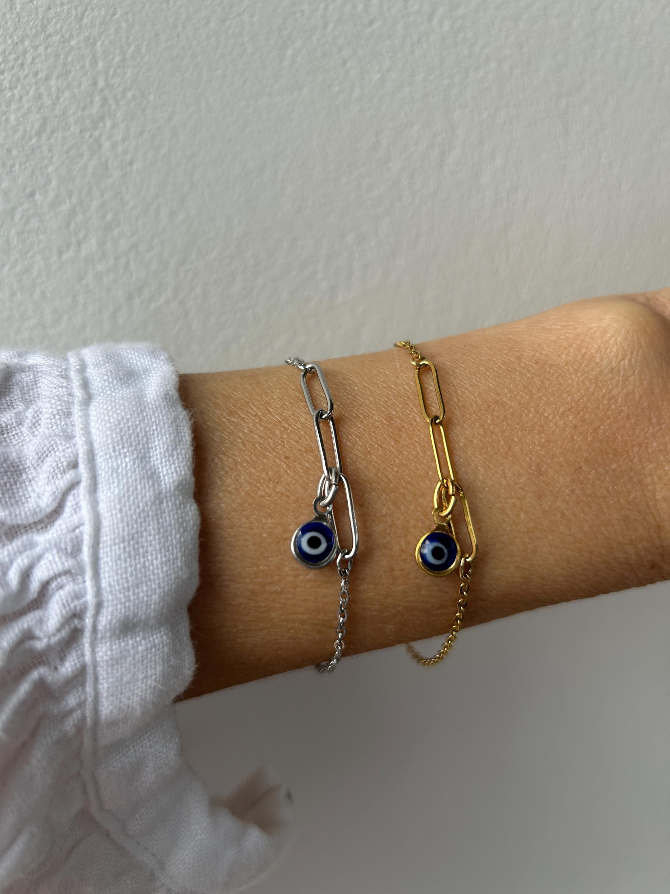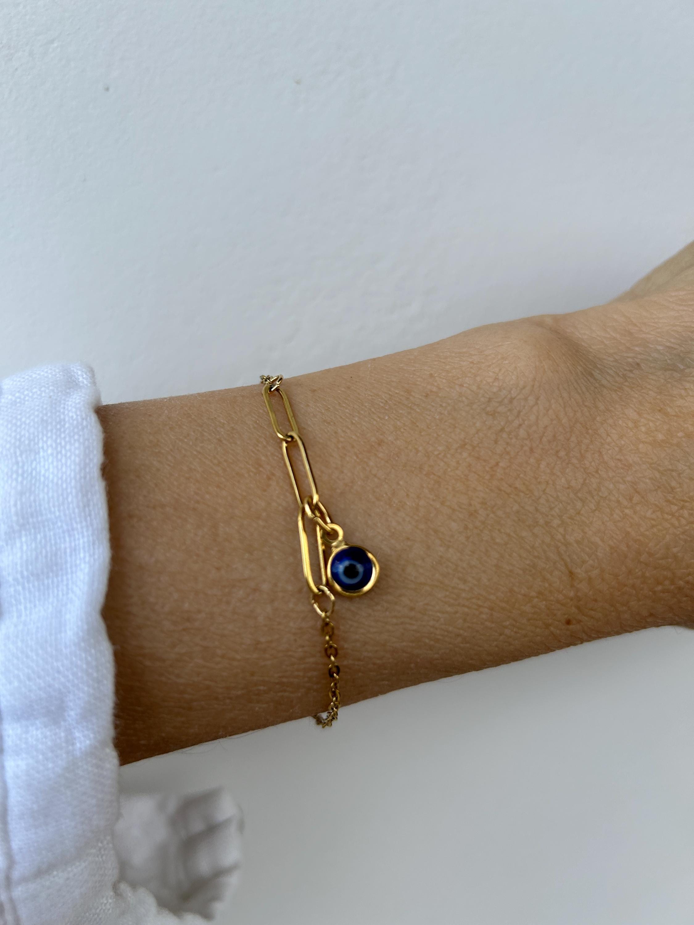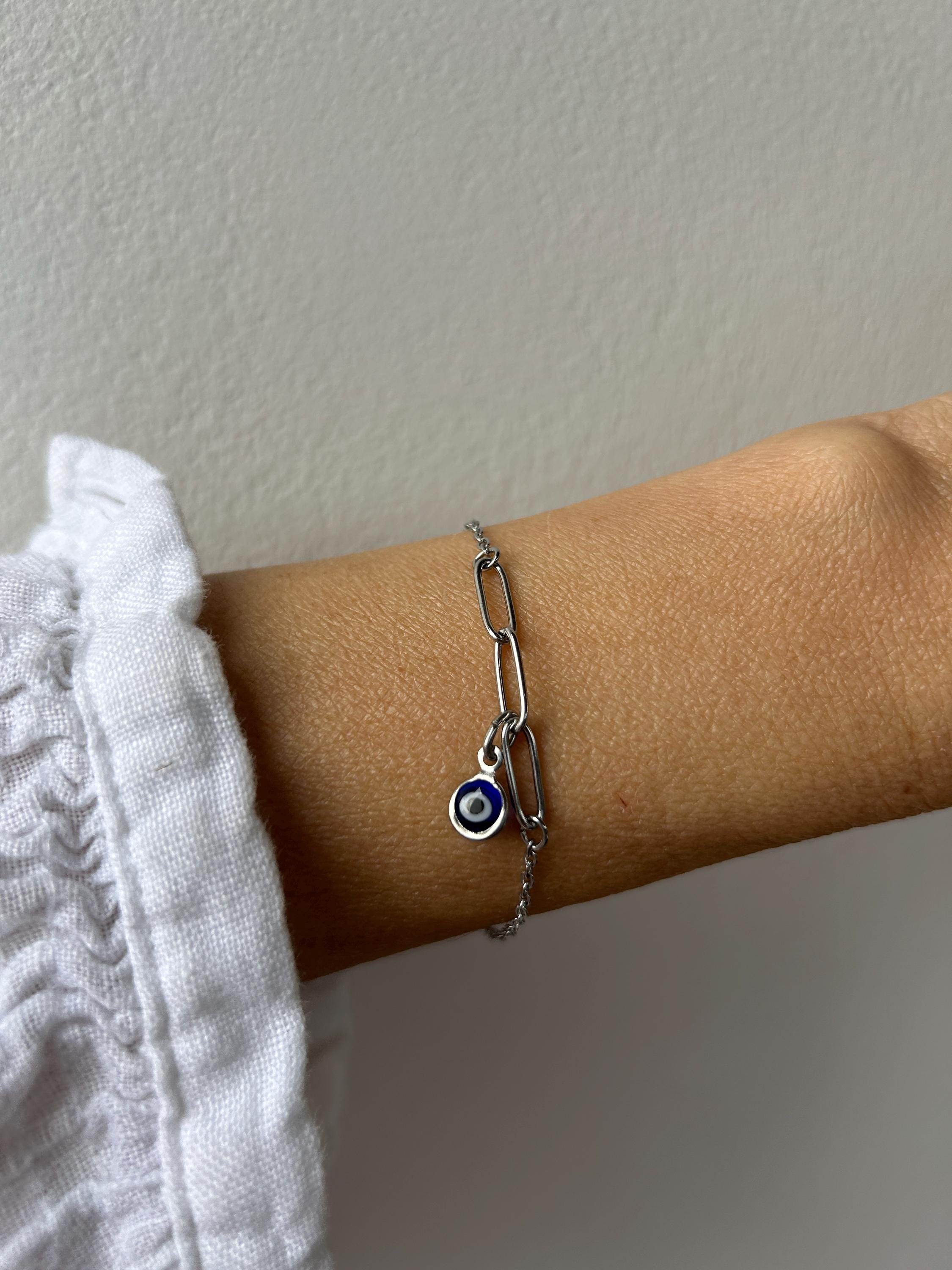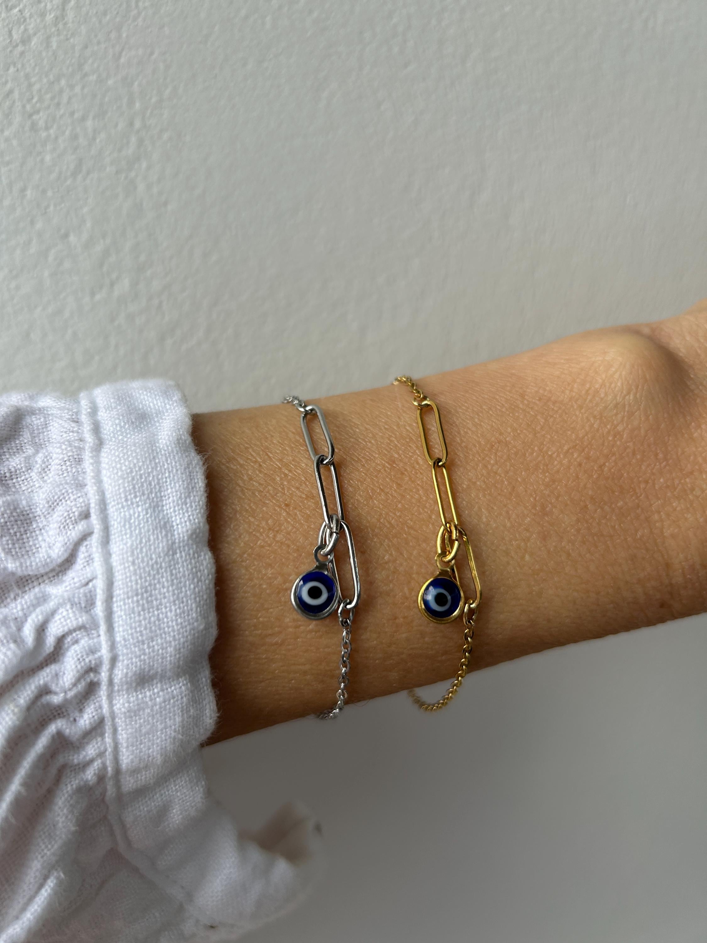 Brush away negative energy and jealous prying eyes with this dainty evil eye bracelet! You can customise it by choosing the evil eye colour of your choice.