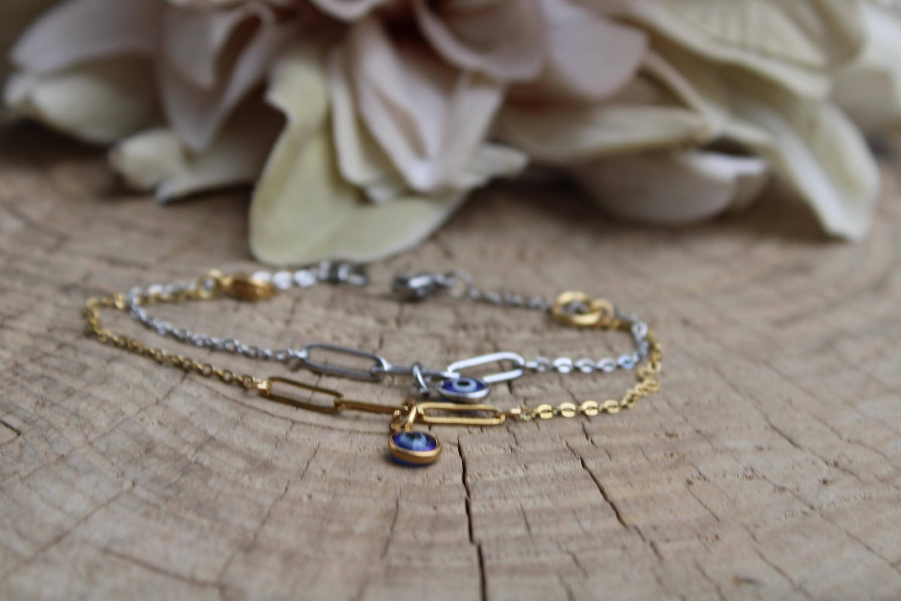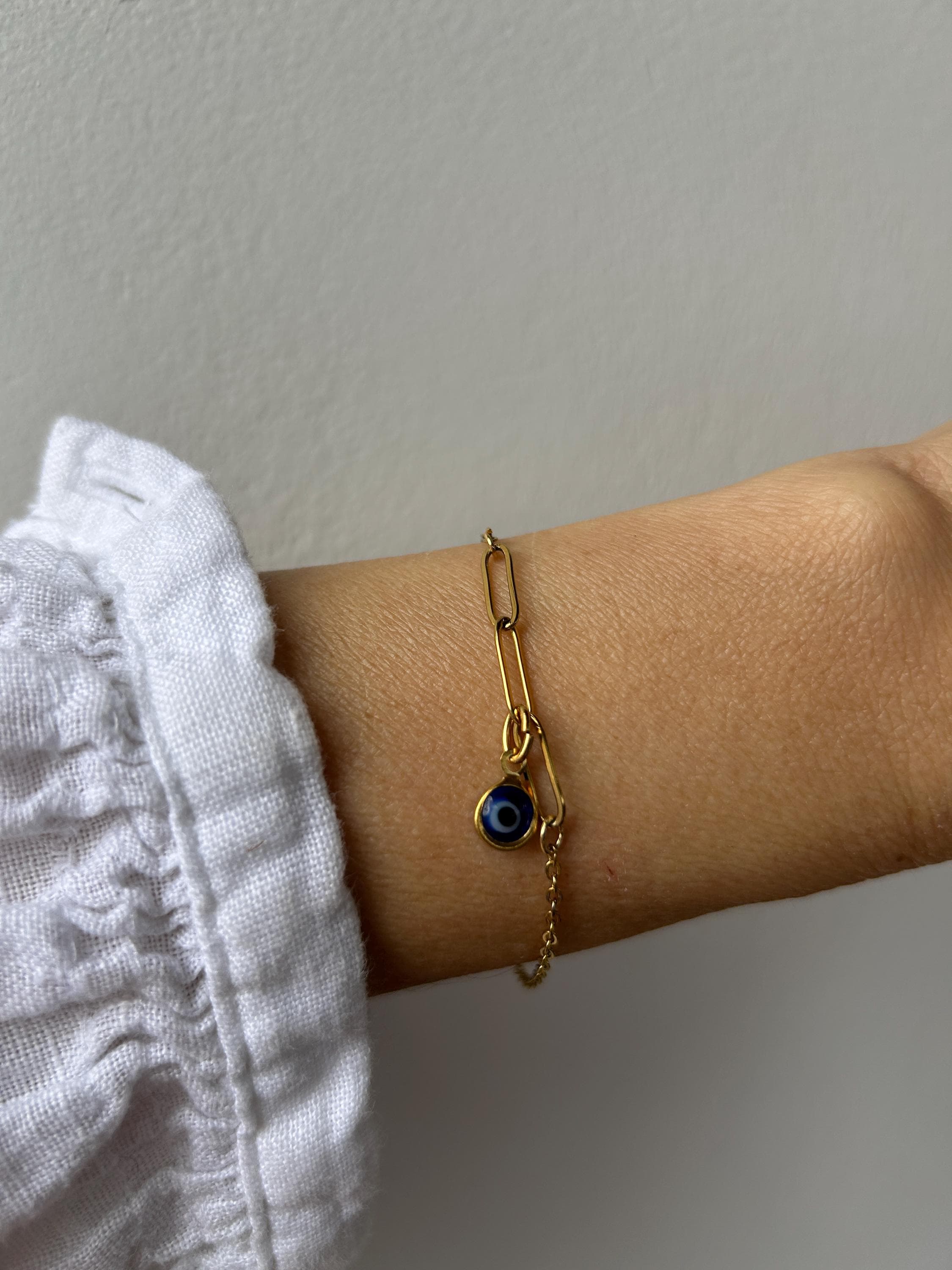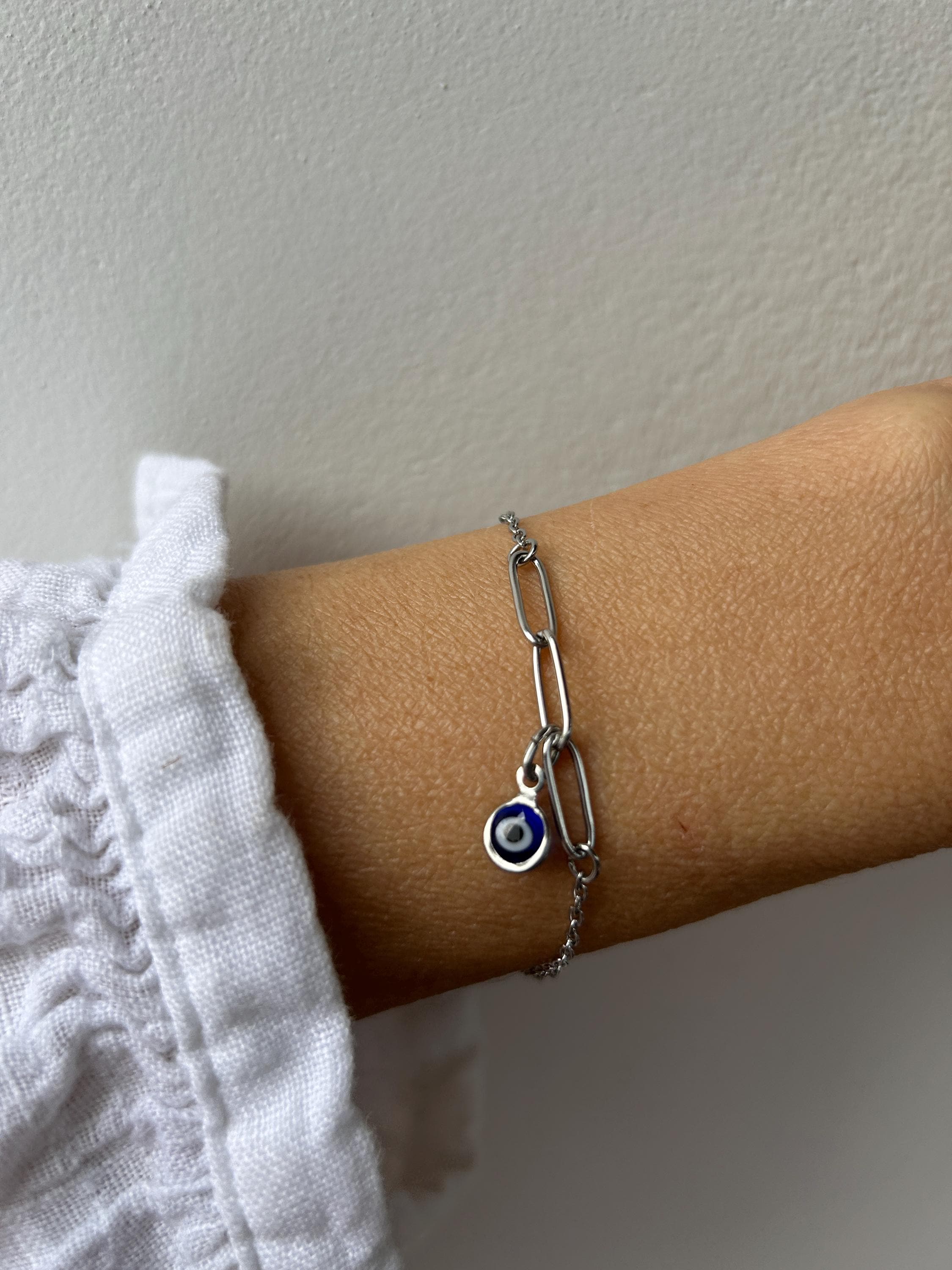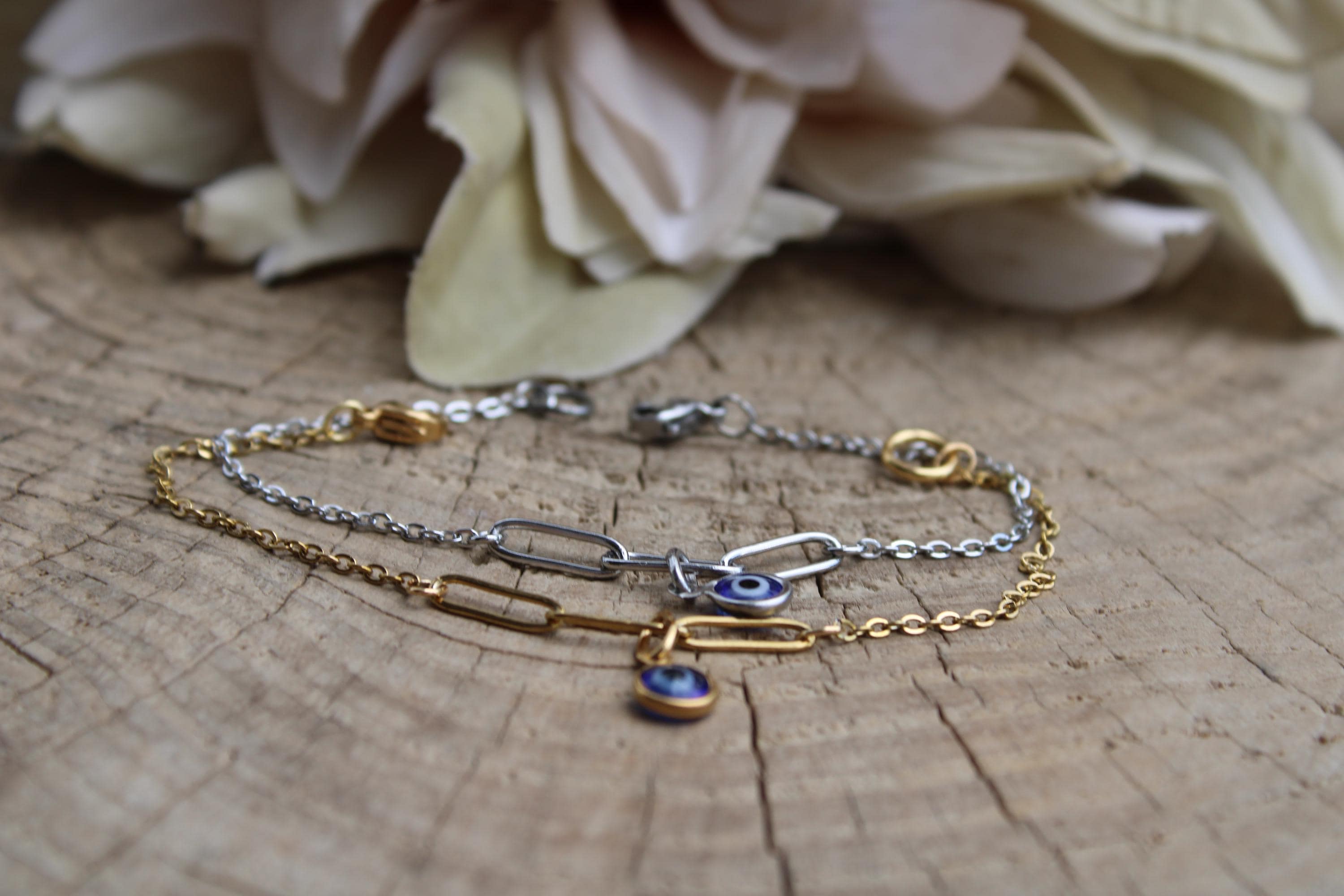 Brush away negative energy and jealous prying eyes with this dainty evil eye bracelet! You can customise it by choosing the evil eye colour of your choice.