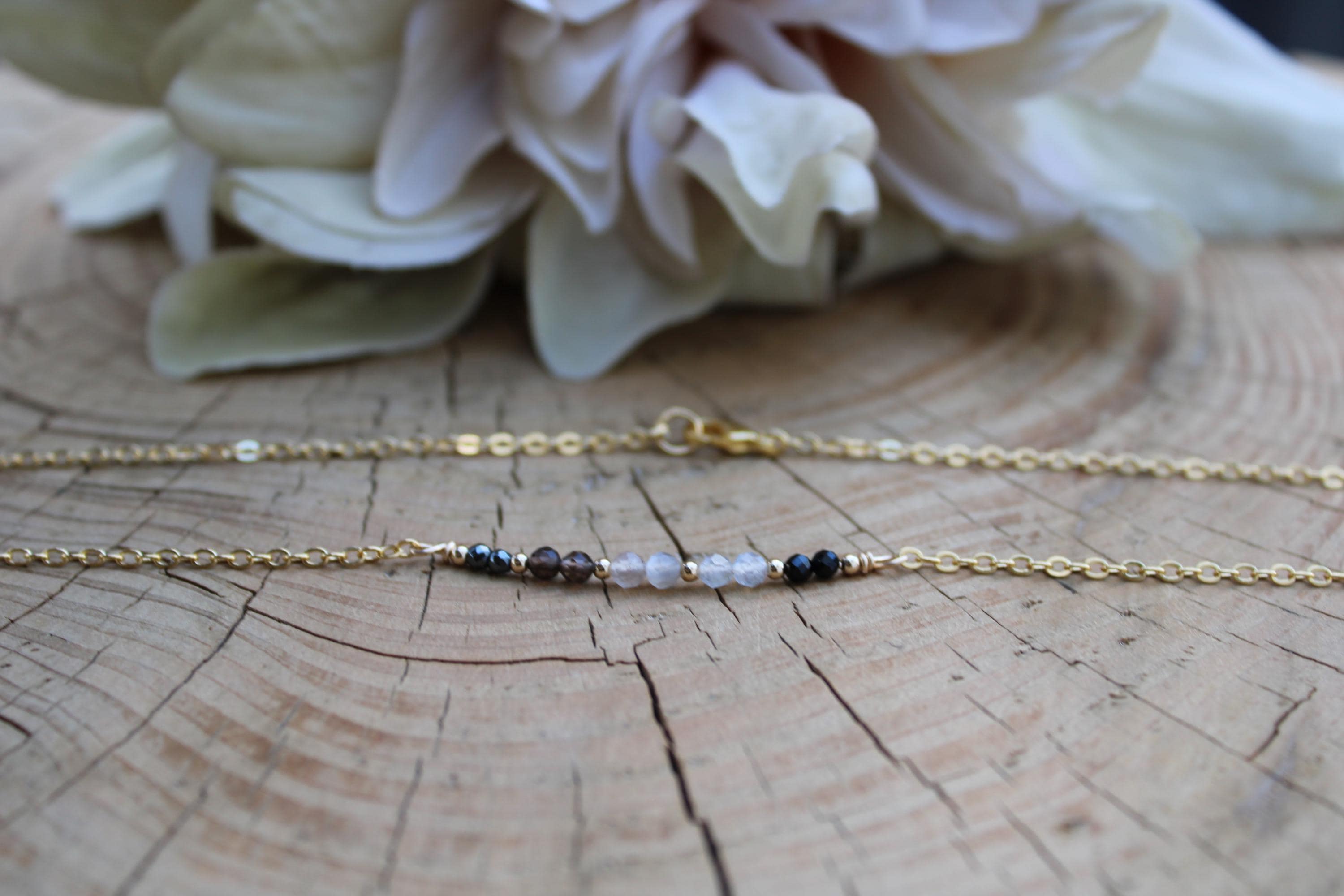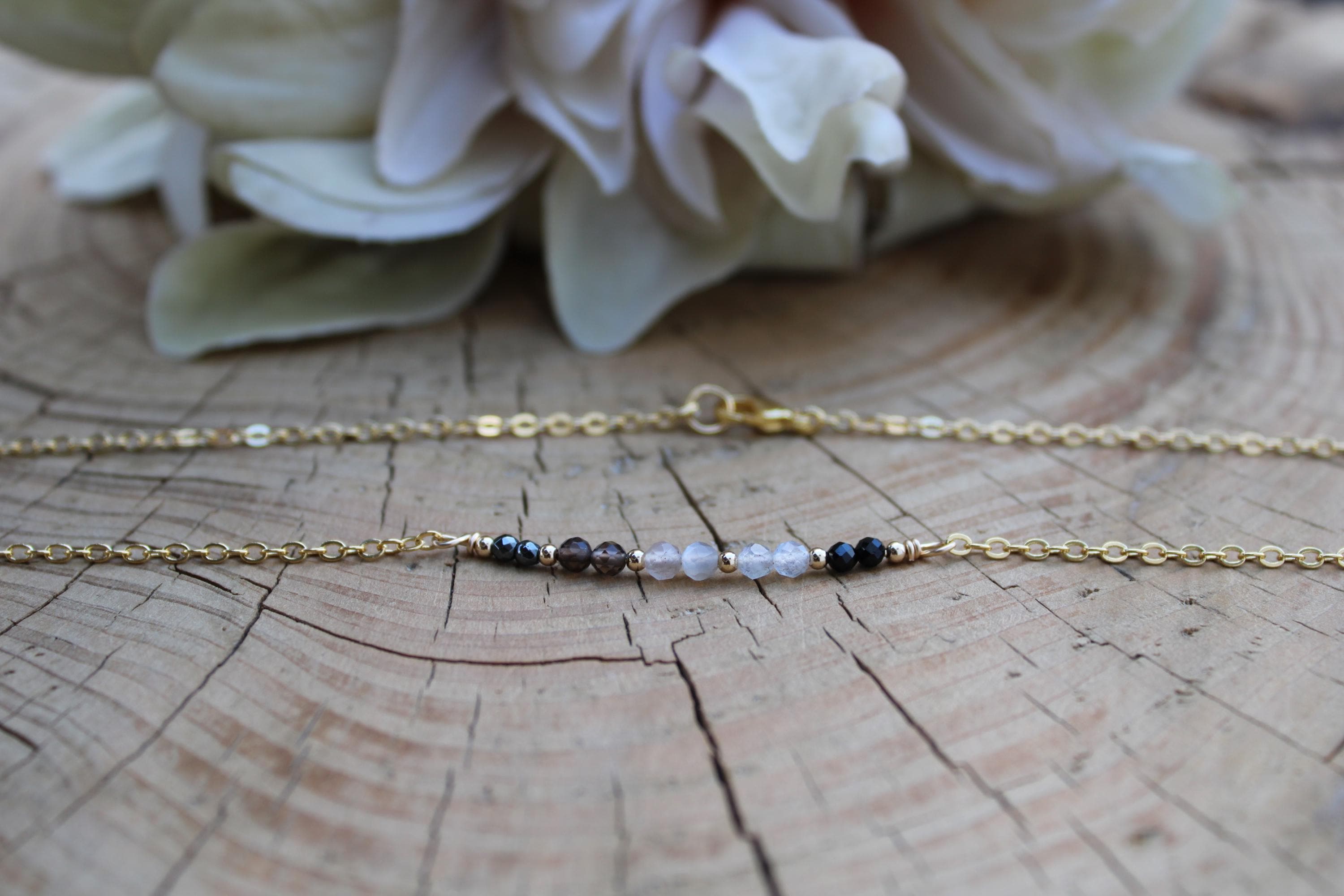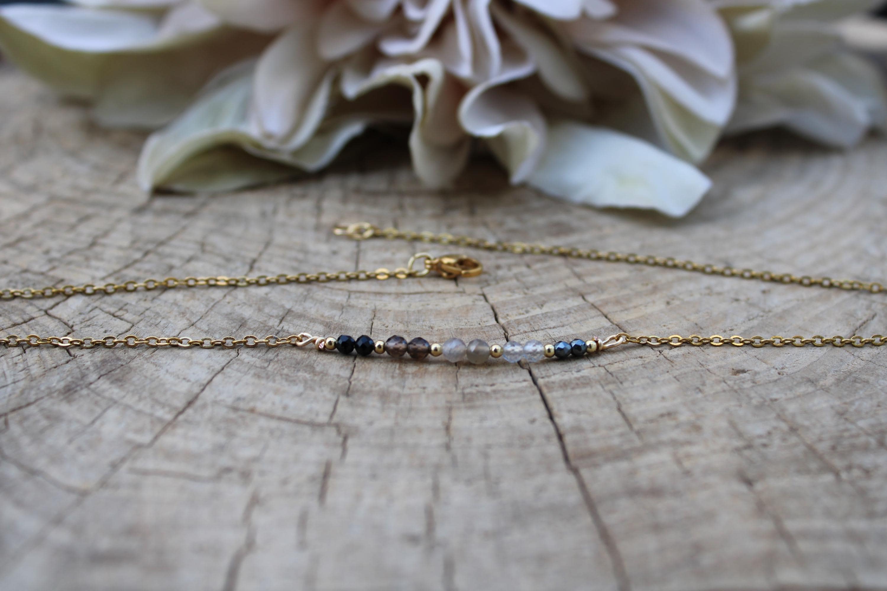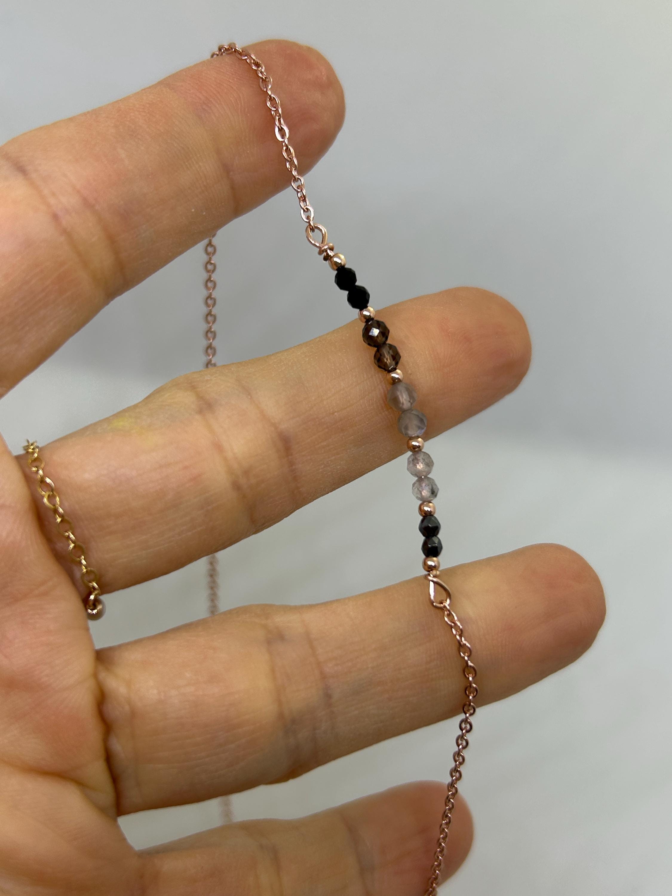 •The gemstones included are hematite, labradorite, grey moonstone, smoky quartz and black tourmaline.