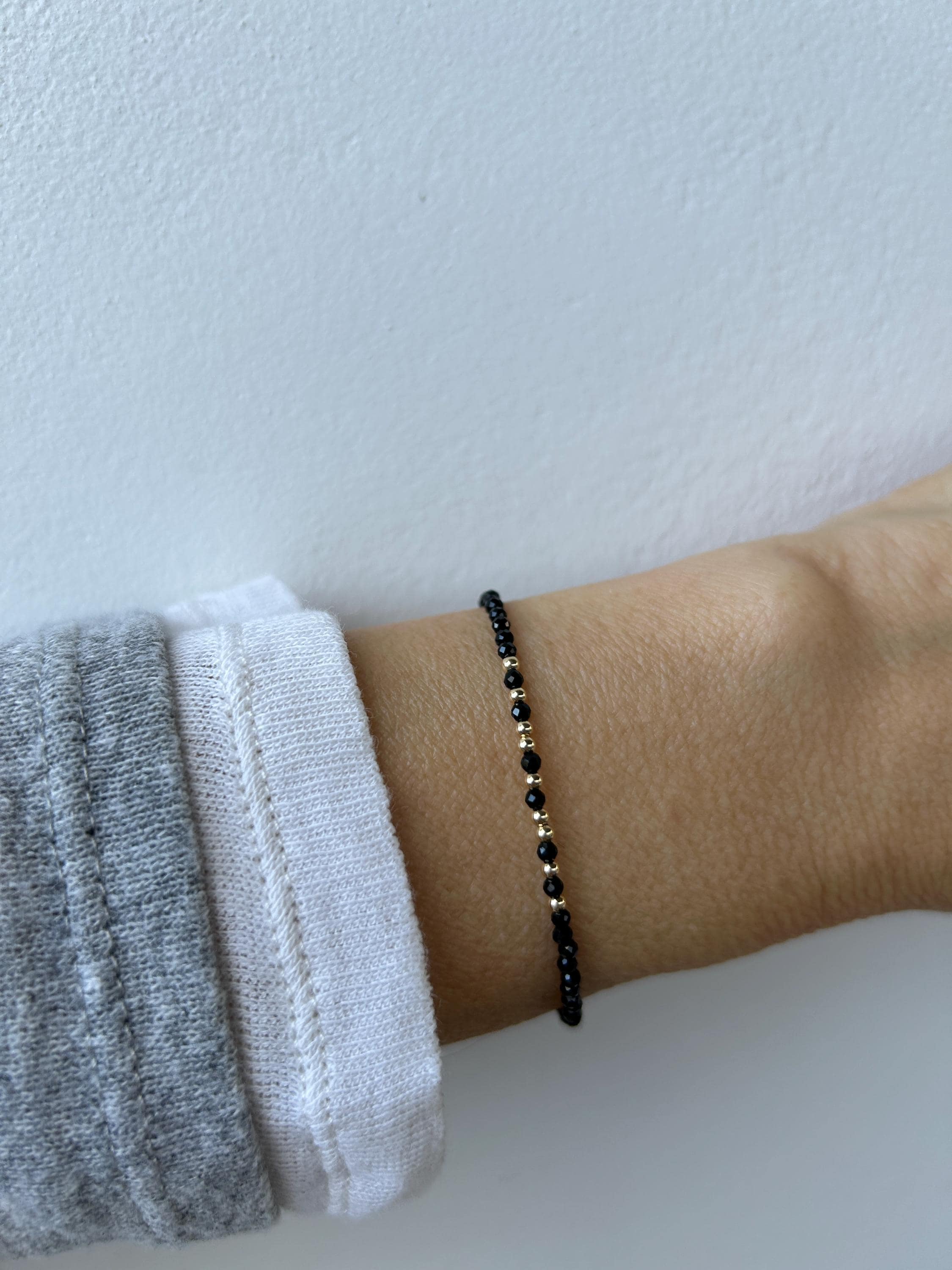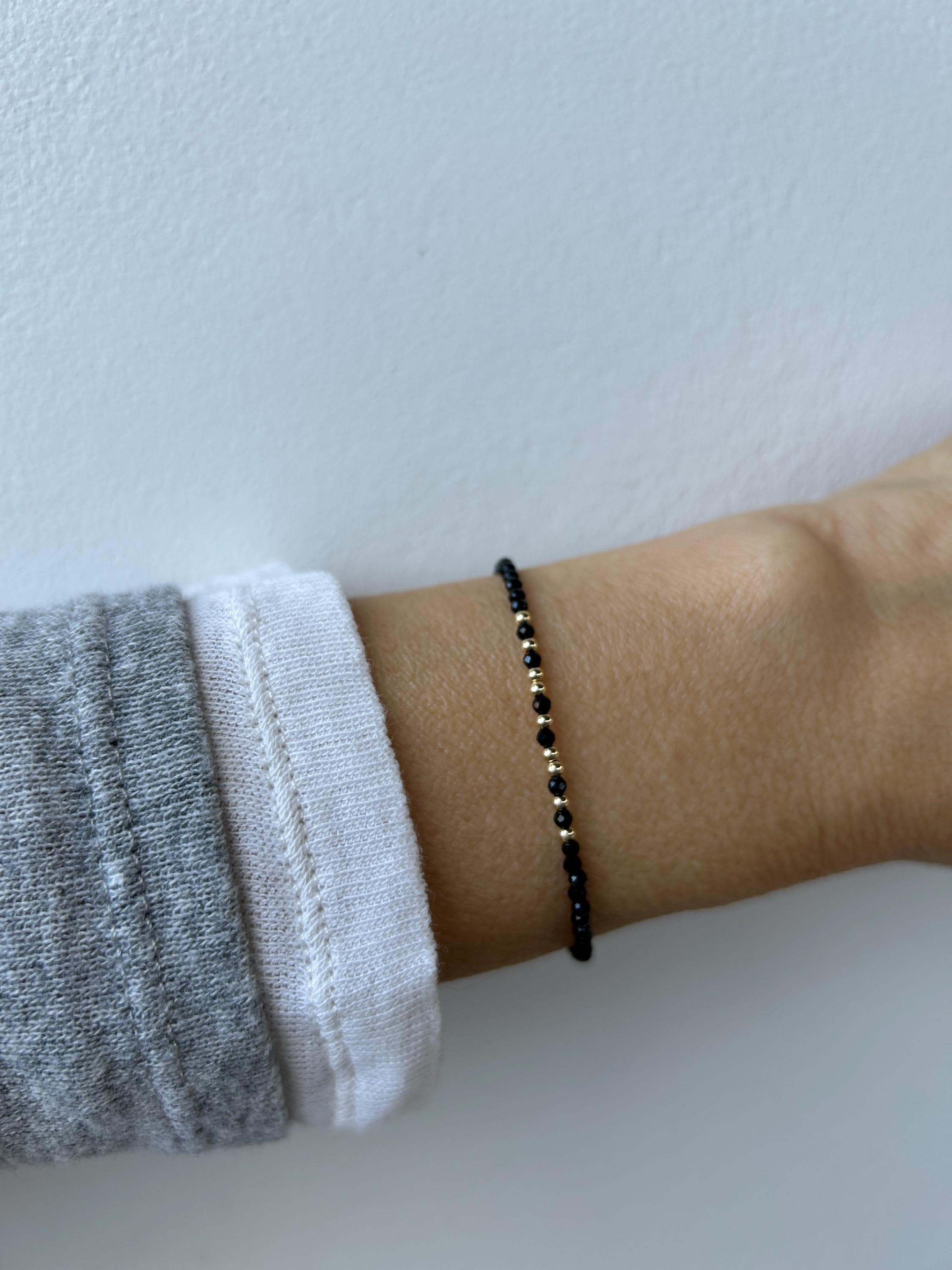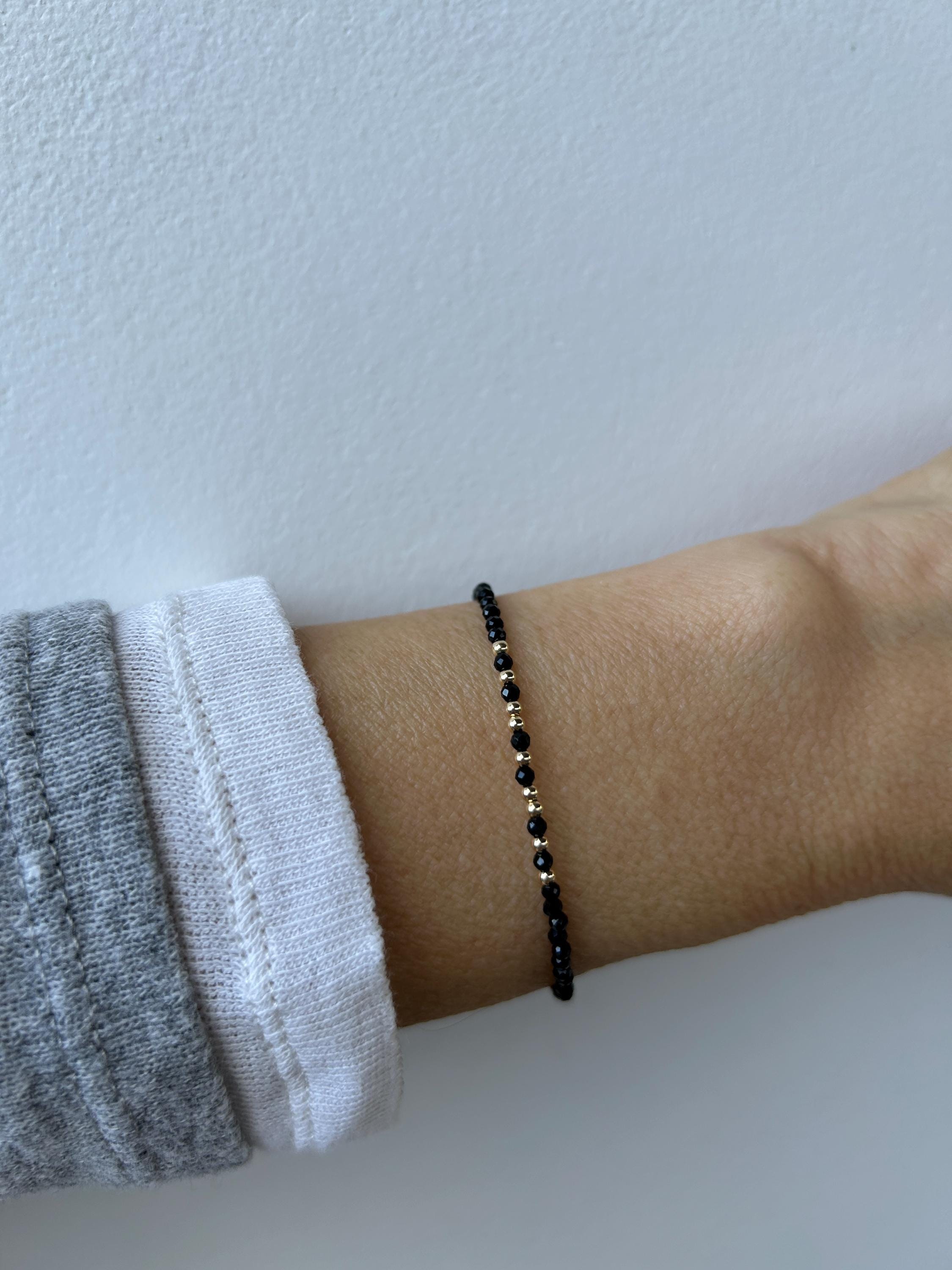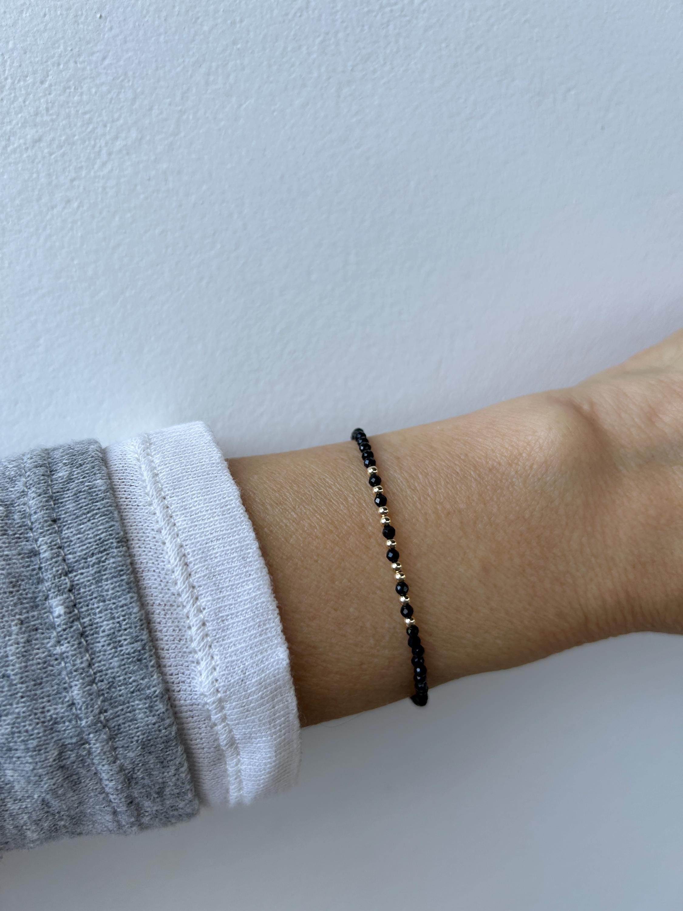 This sparkly bracelet made looks great worn alone or stacked with other delicate pieces. Black tourmaline is also a powerful protection stone and is also the birthstone of anyone born in the month of October.