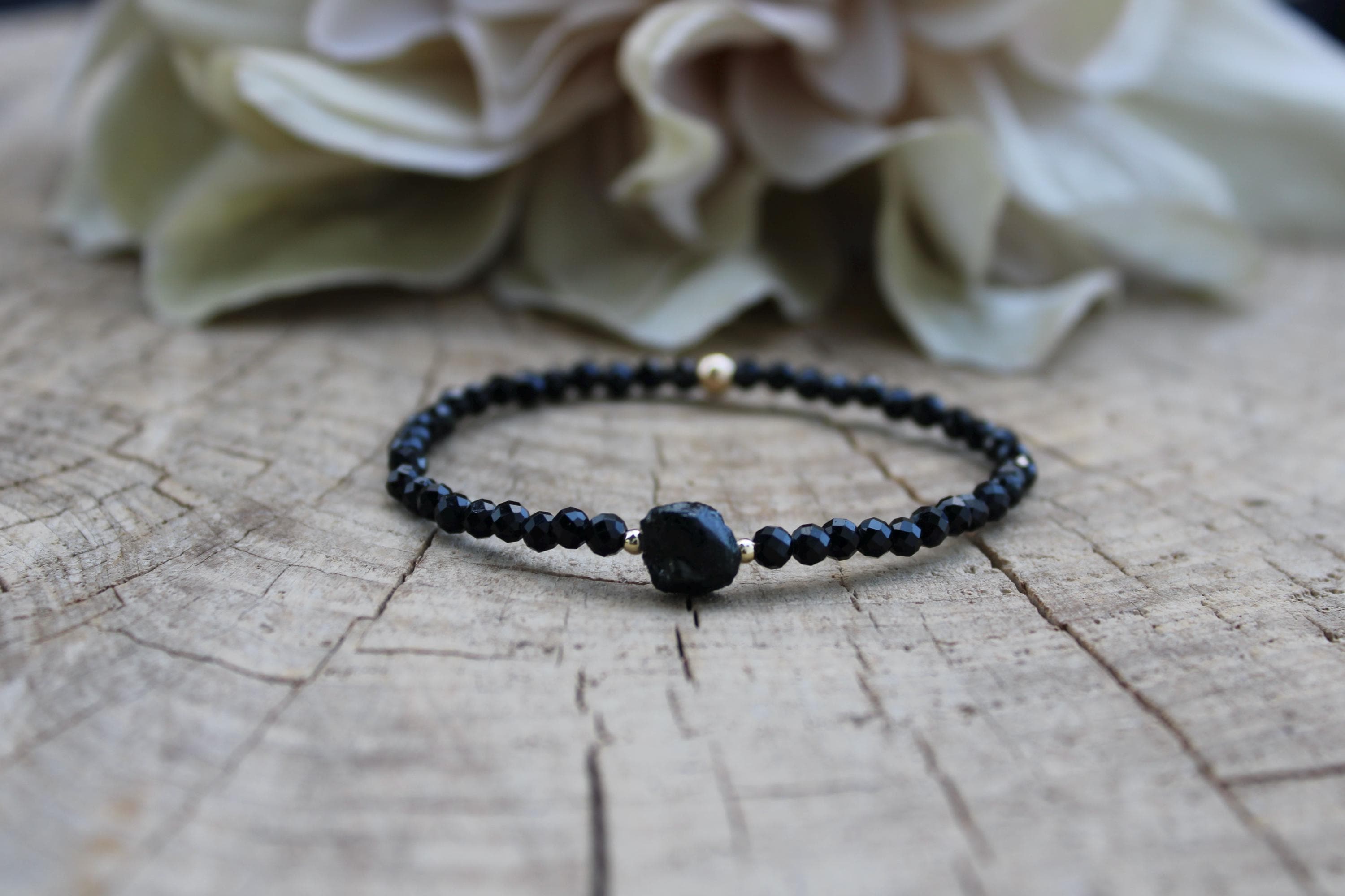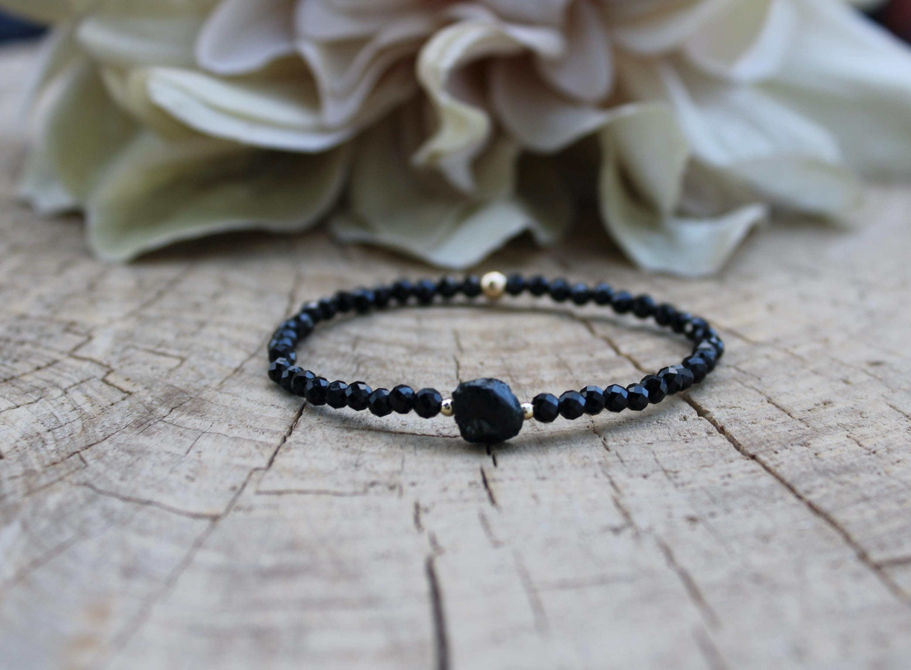 This sparkly bracelet made looks great worn alone or stacked with other delicate pieces. Black tourmaline is also a powerful protection stone and is also the birthstone of anyone born in the month of October.