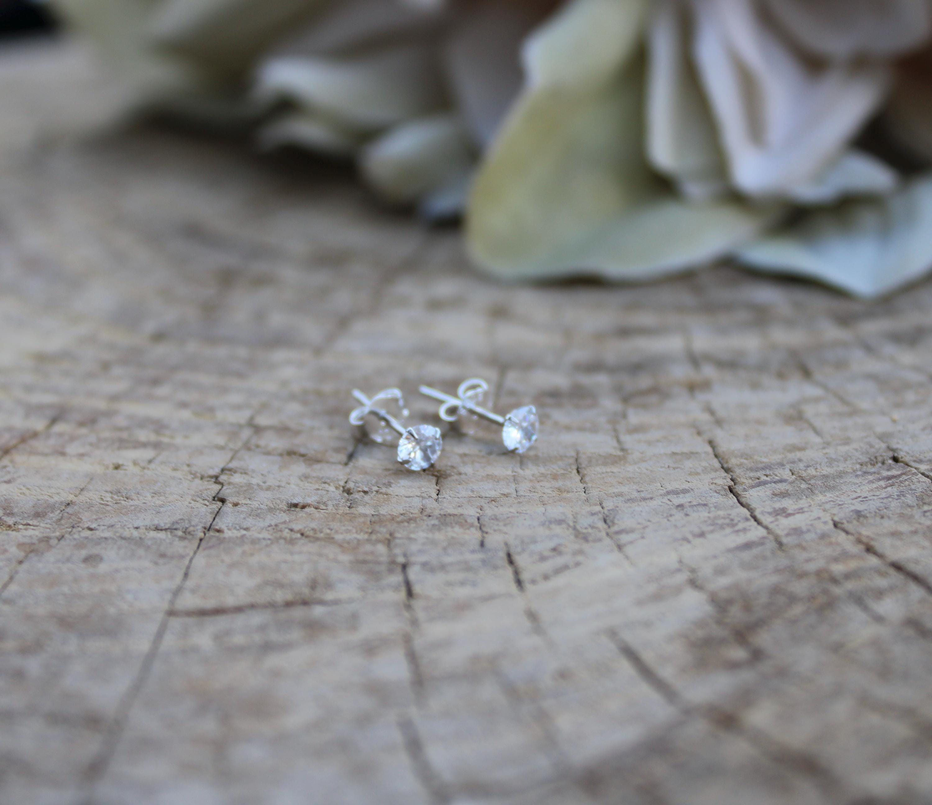 •Rhodium Plated 925 Sterling Silver Four Pronged Ear Studs with AAA Cubic Zirconia -4mm