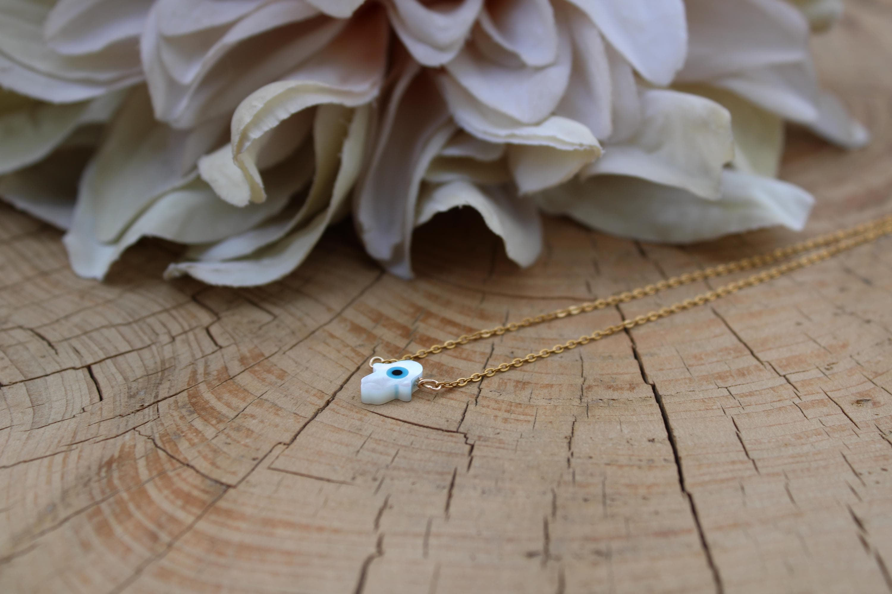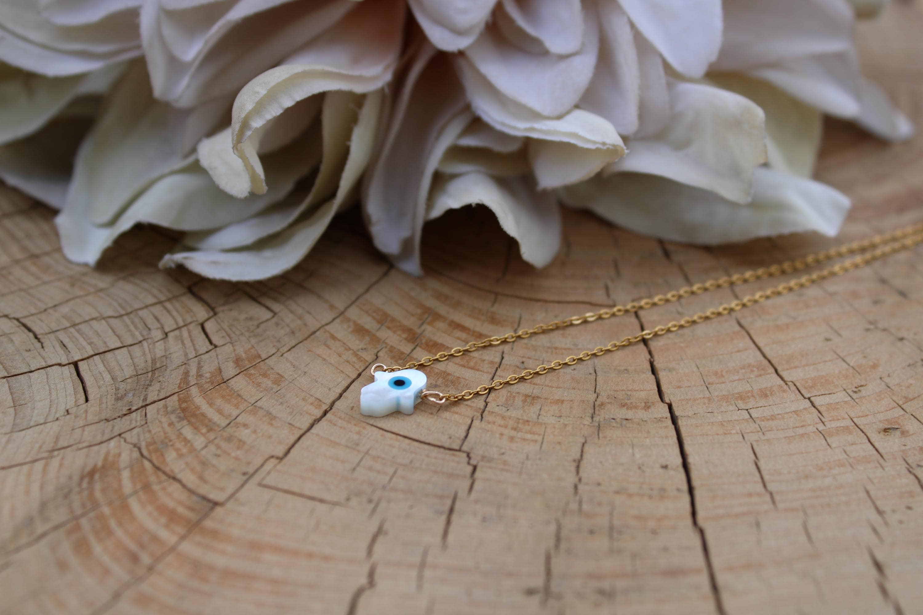 •The hamsa has been wire wrapped to a tarnish resistant stainless steel chain available in gold, silver and rose gold.