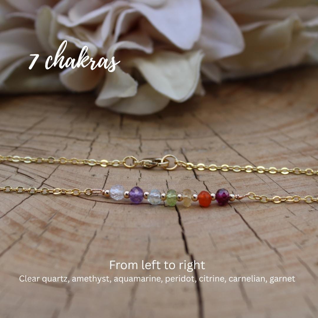 This colourful little necklace is designed to balance the chakras.