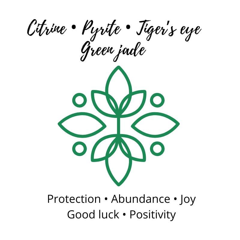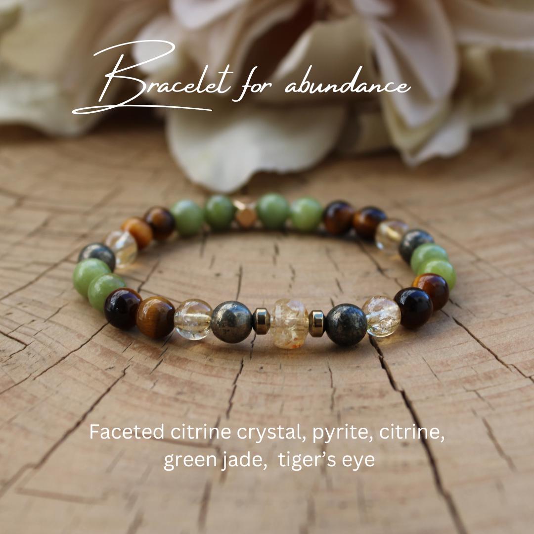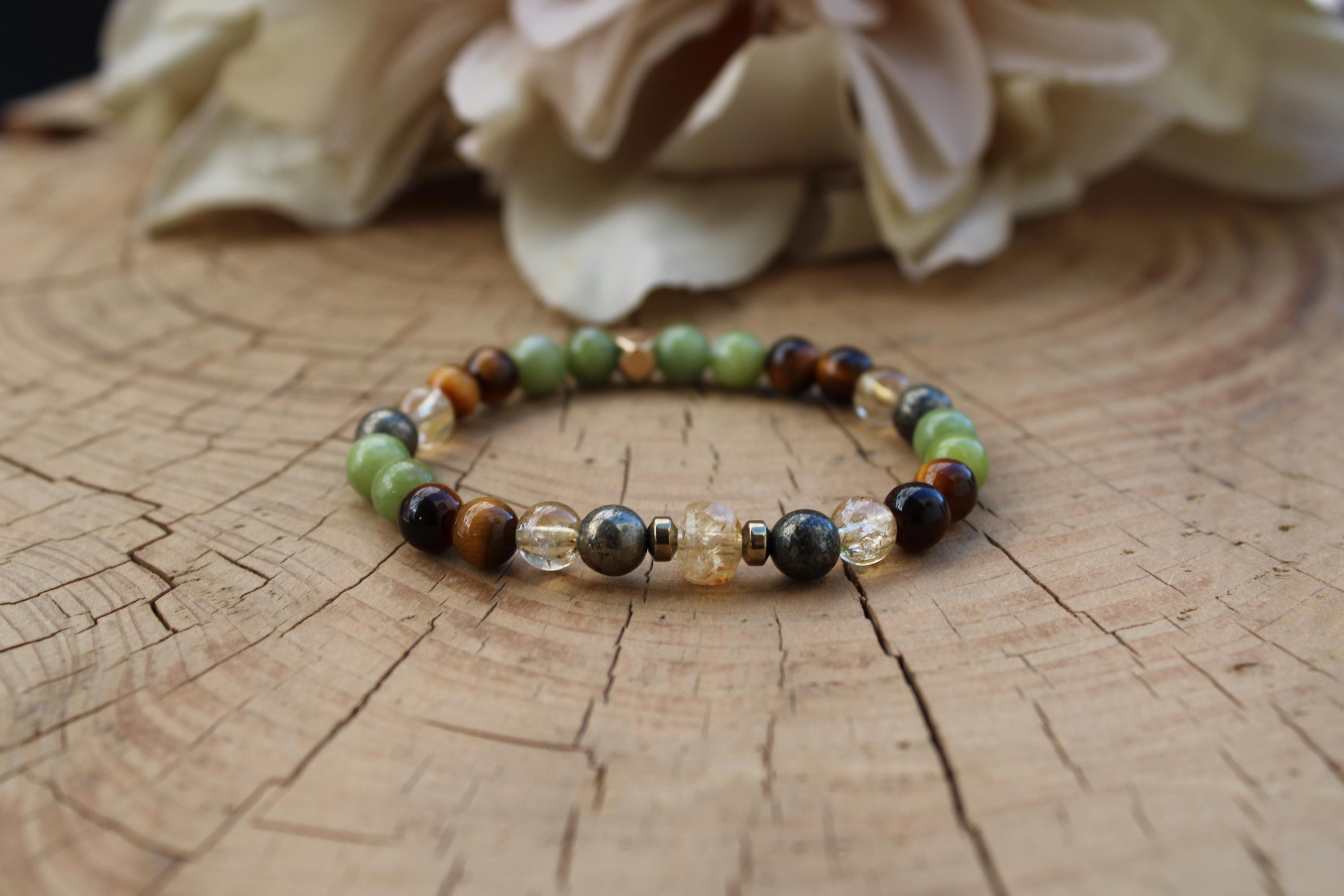 This unisex bracelet combines gemstones that are associated with prosperity, abundance, protection and attracting wealth and luck.