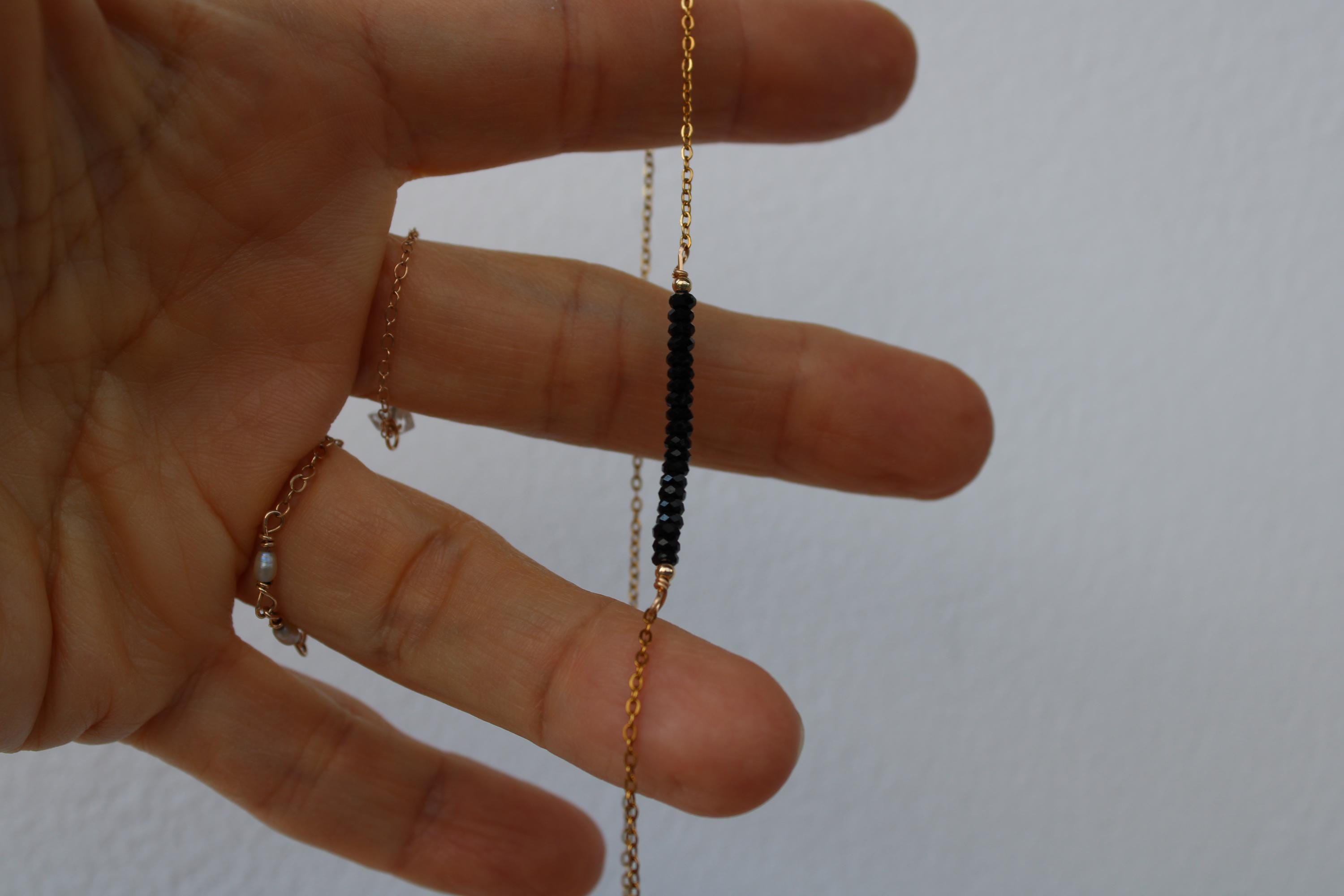 •Made with tiny faceted tourmaline rondelles measuring 3 x 2mm.