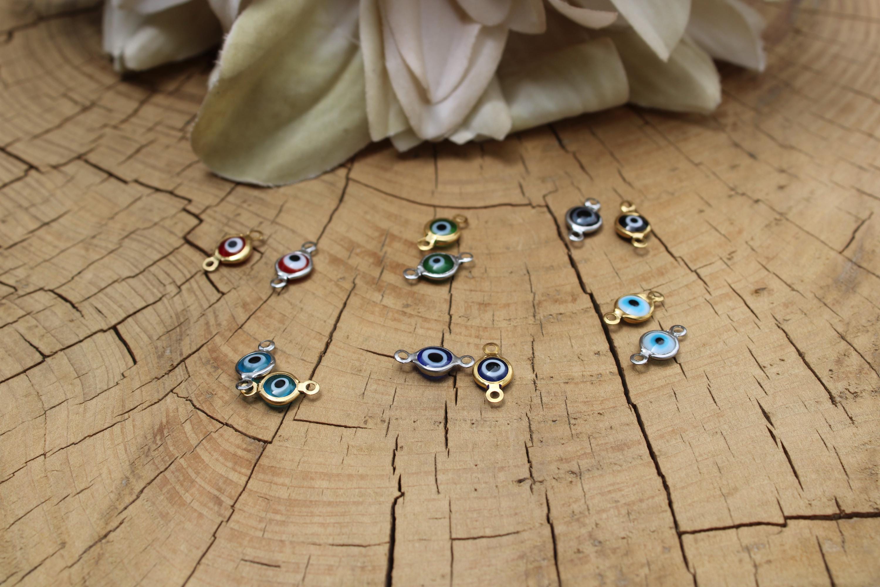 •Made with a stainless steel evil eye connector available in navy blue, light turquoise, green, white and blue , black and red.
