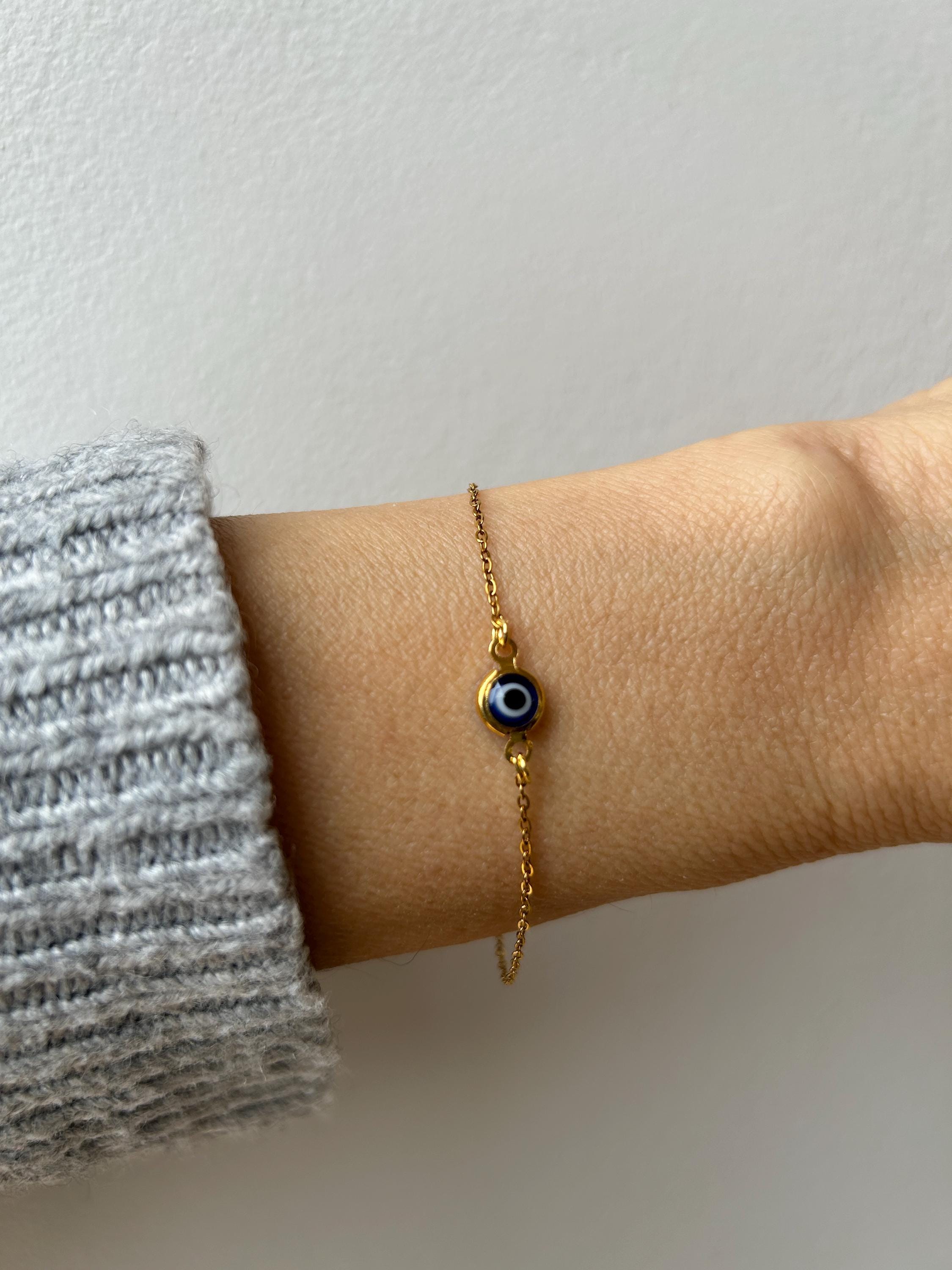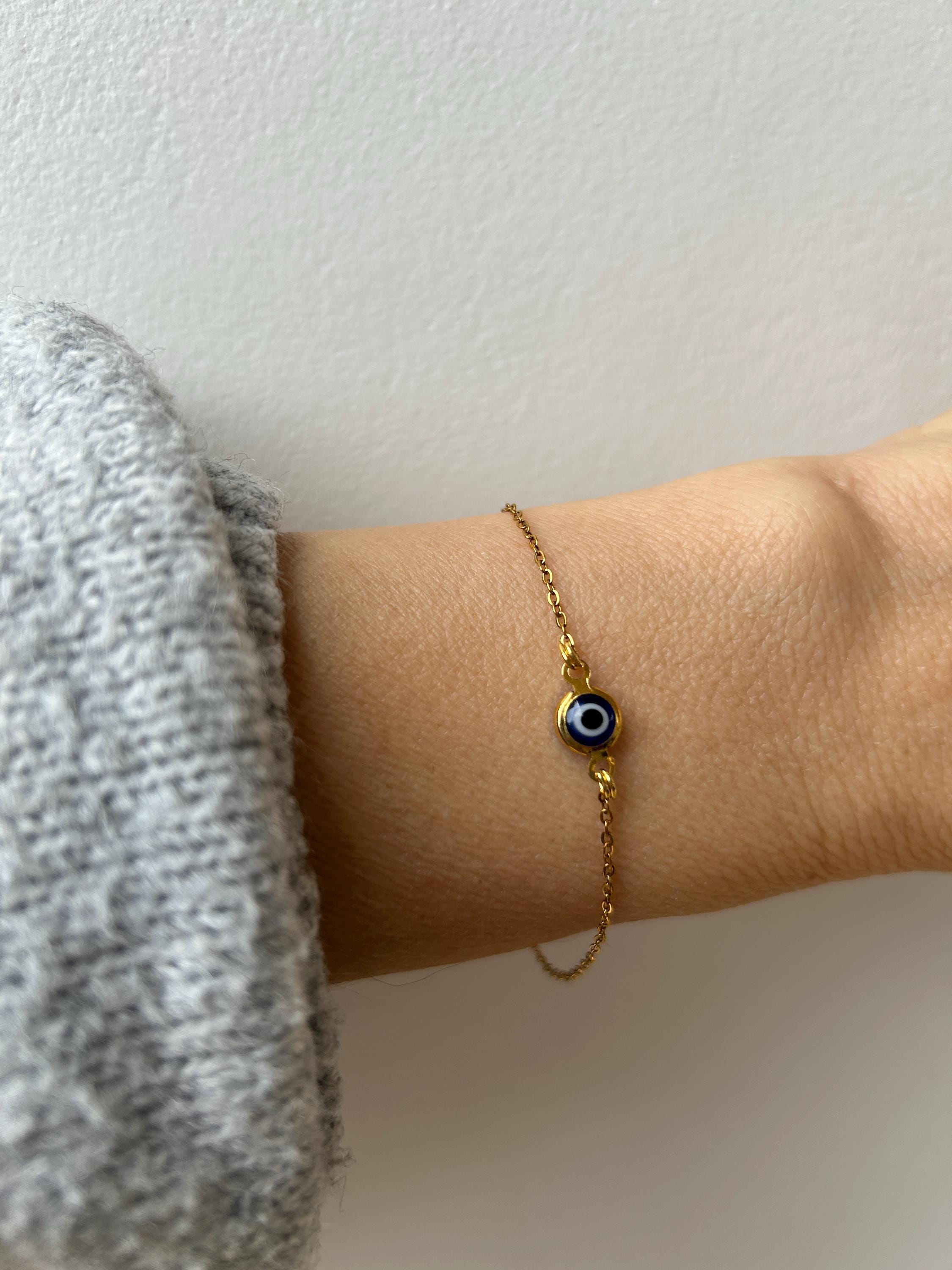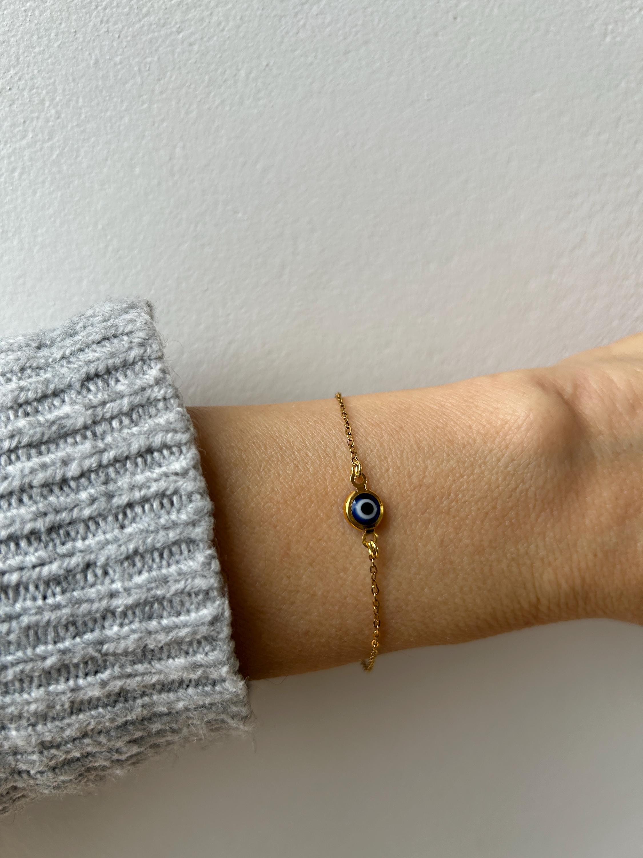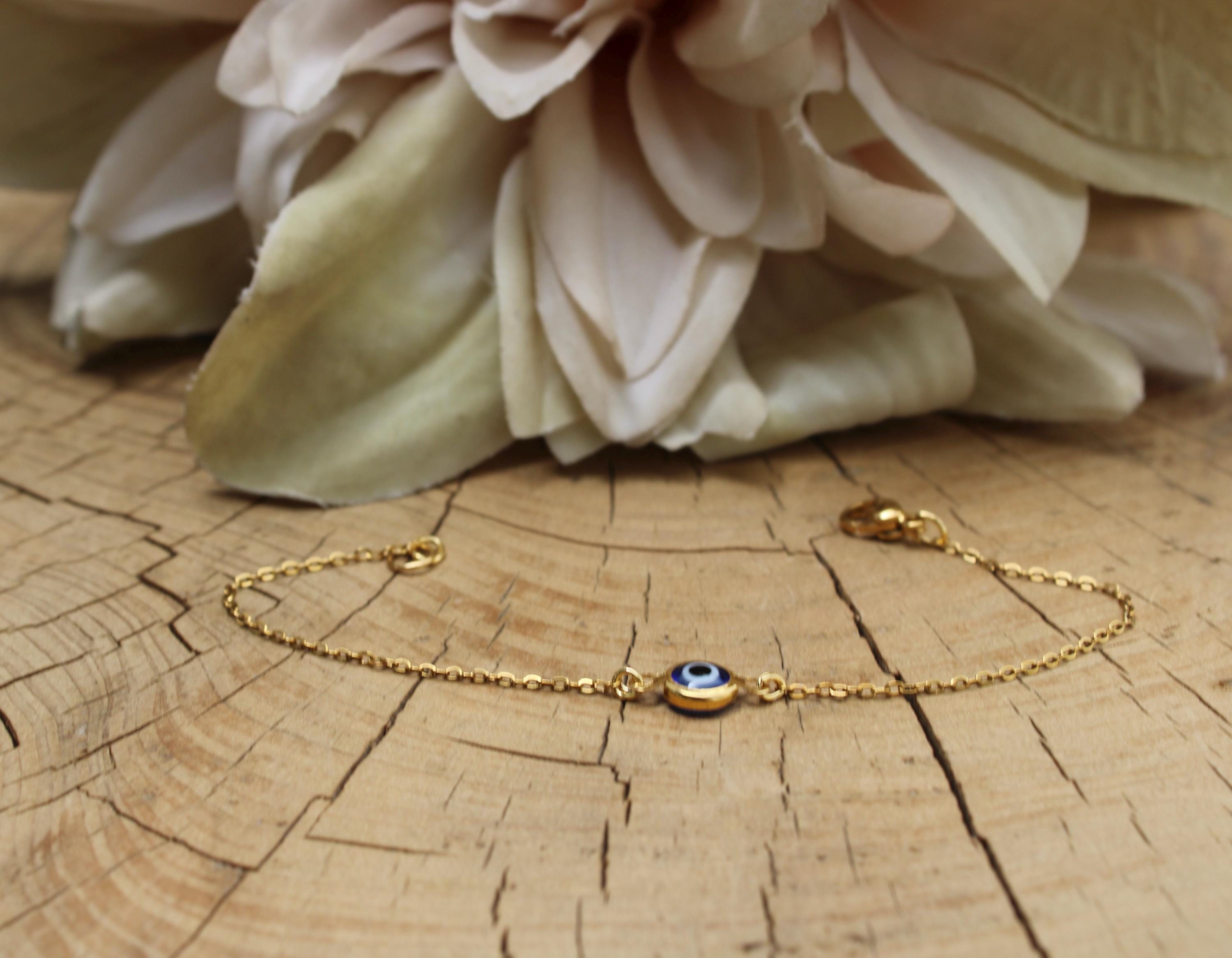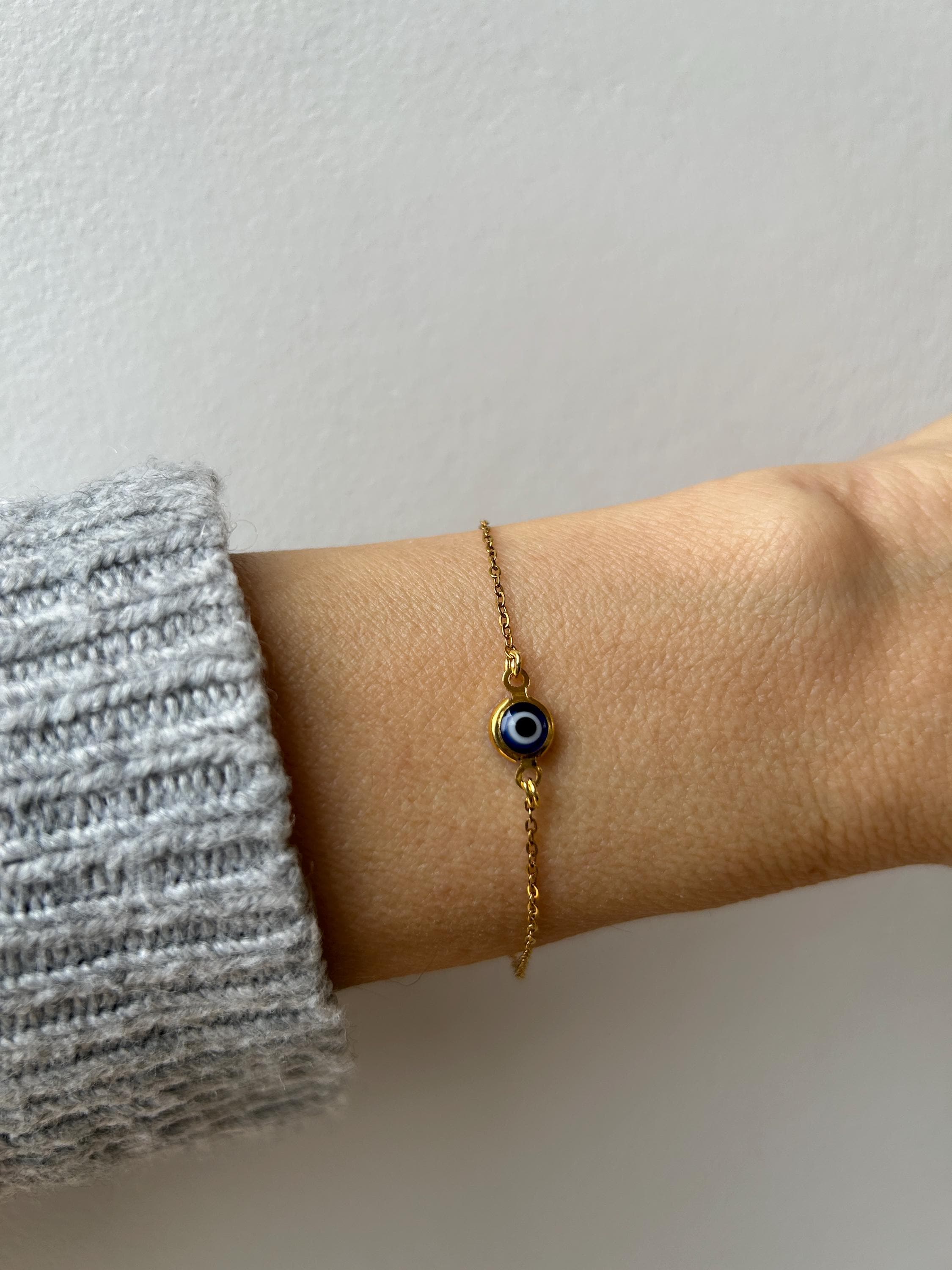 Brush away negative energy and keep yourself protected with this simple evil eye bracelet! You can customise it by choosing the chain and evil eye colour you prefer.