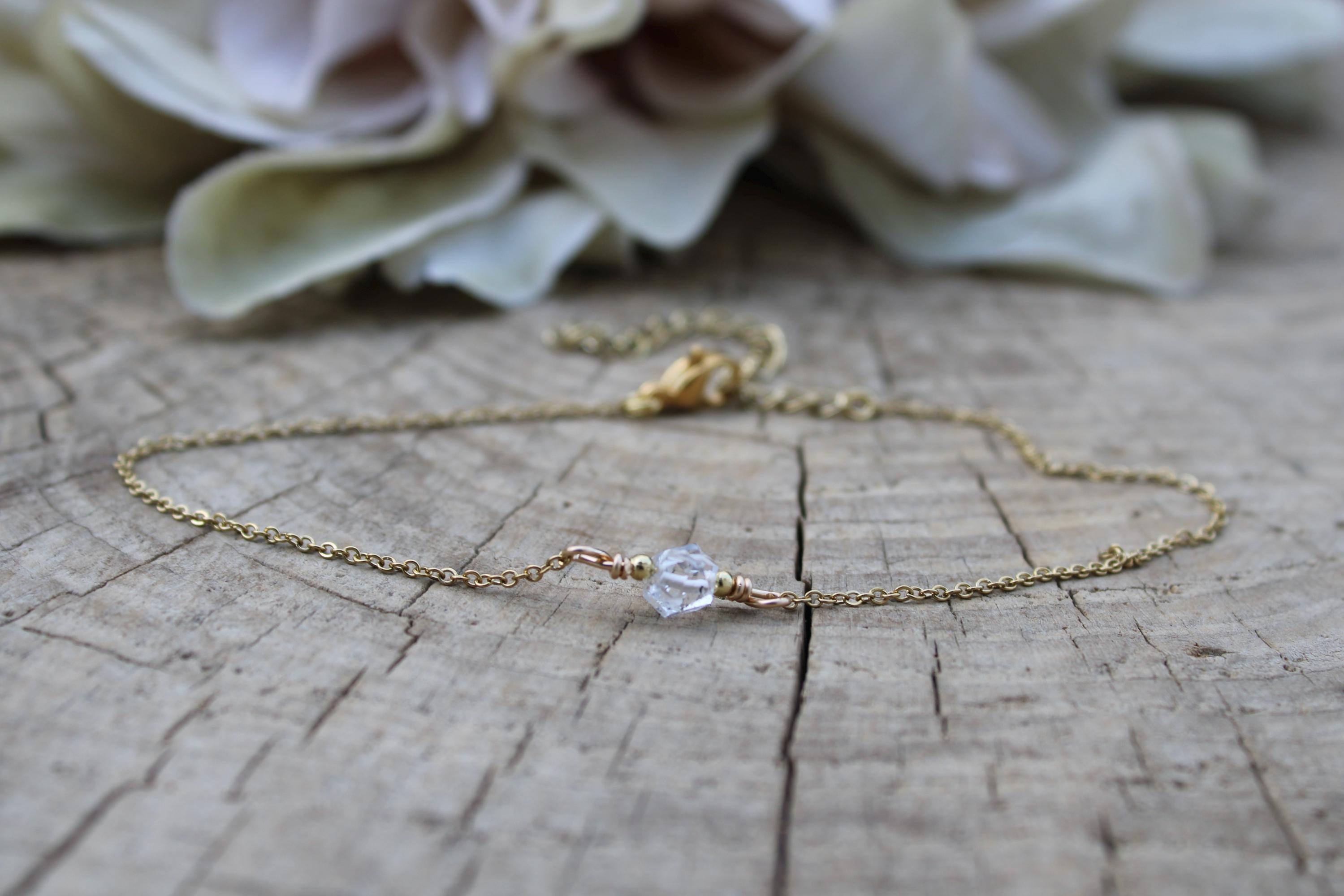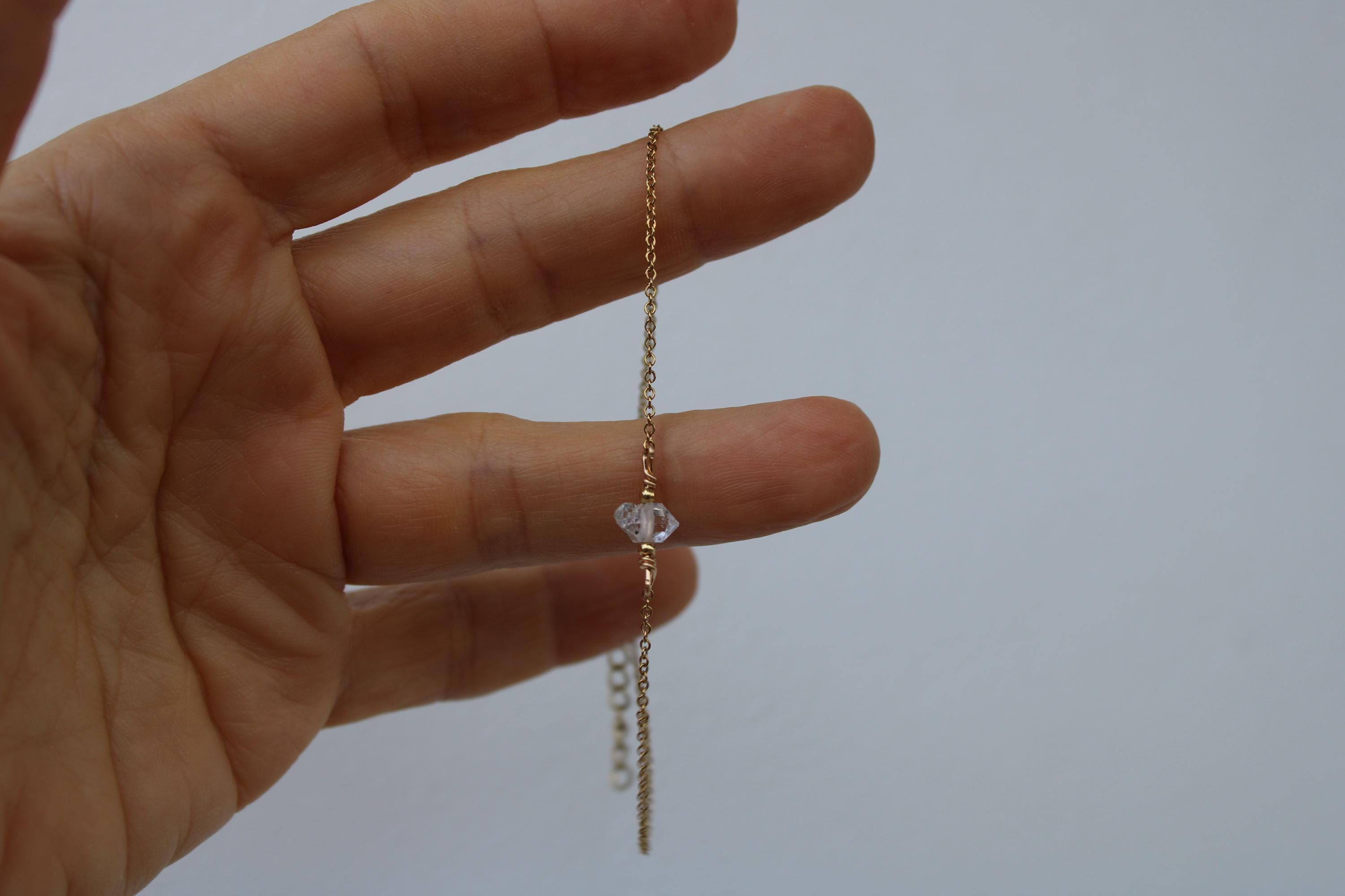 • And a sparkly herkimer diamond that has been wire wrapped to the chain.