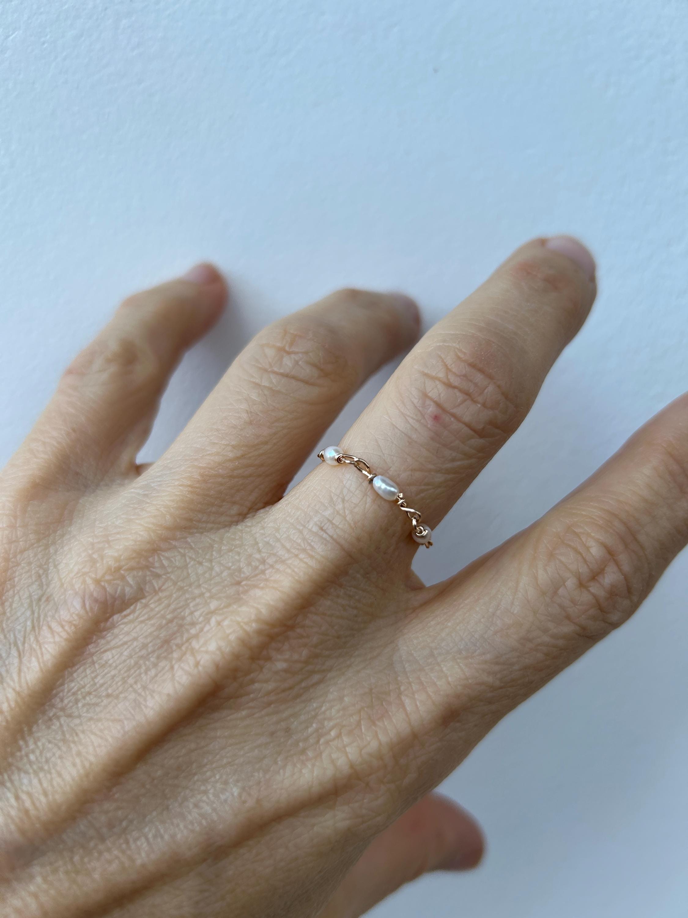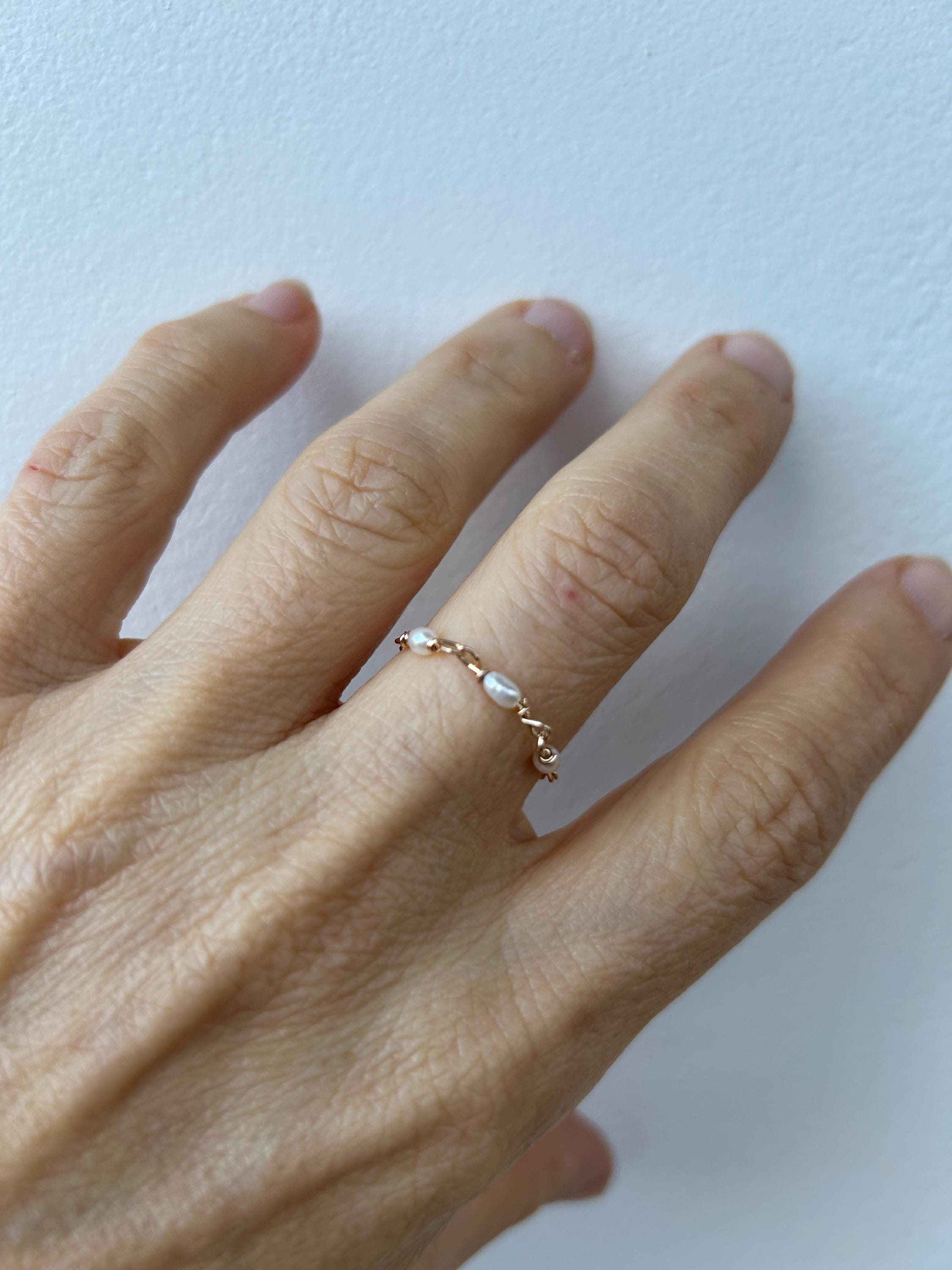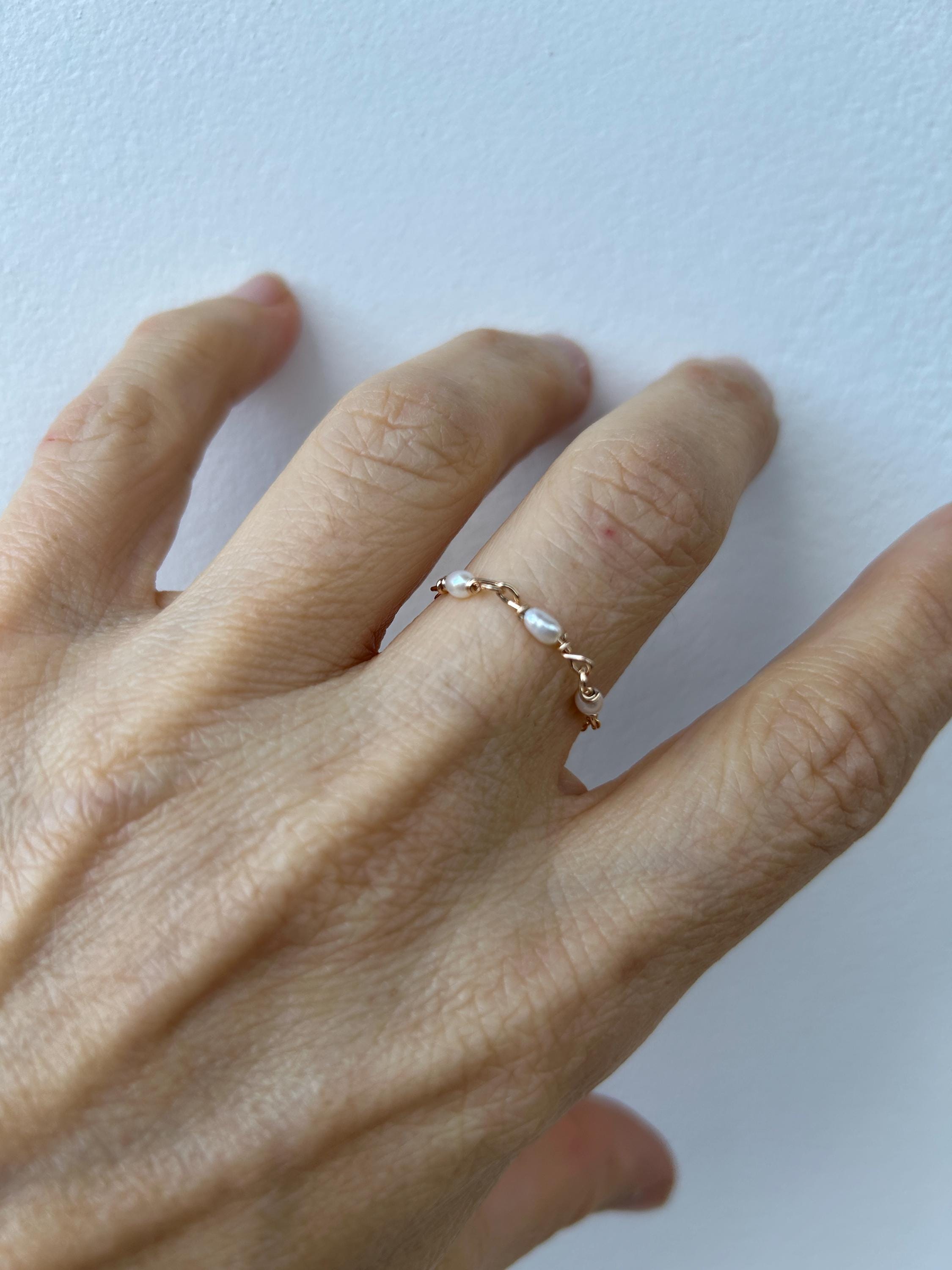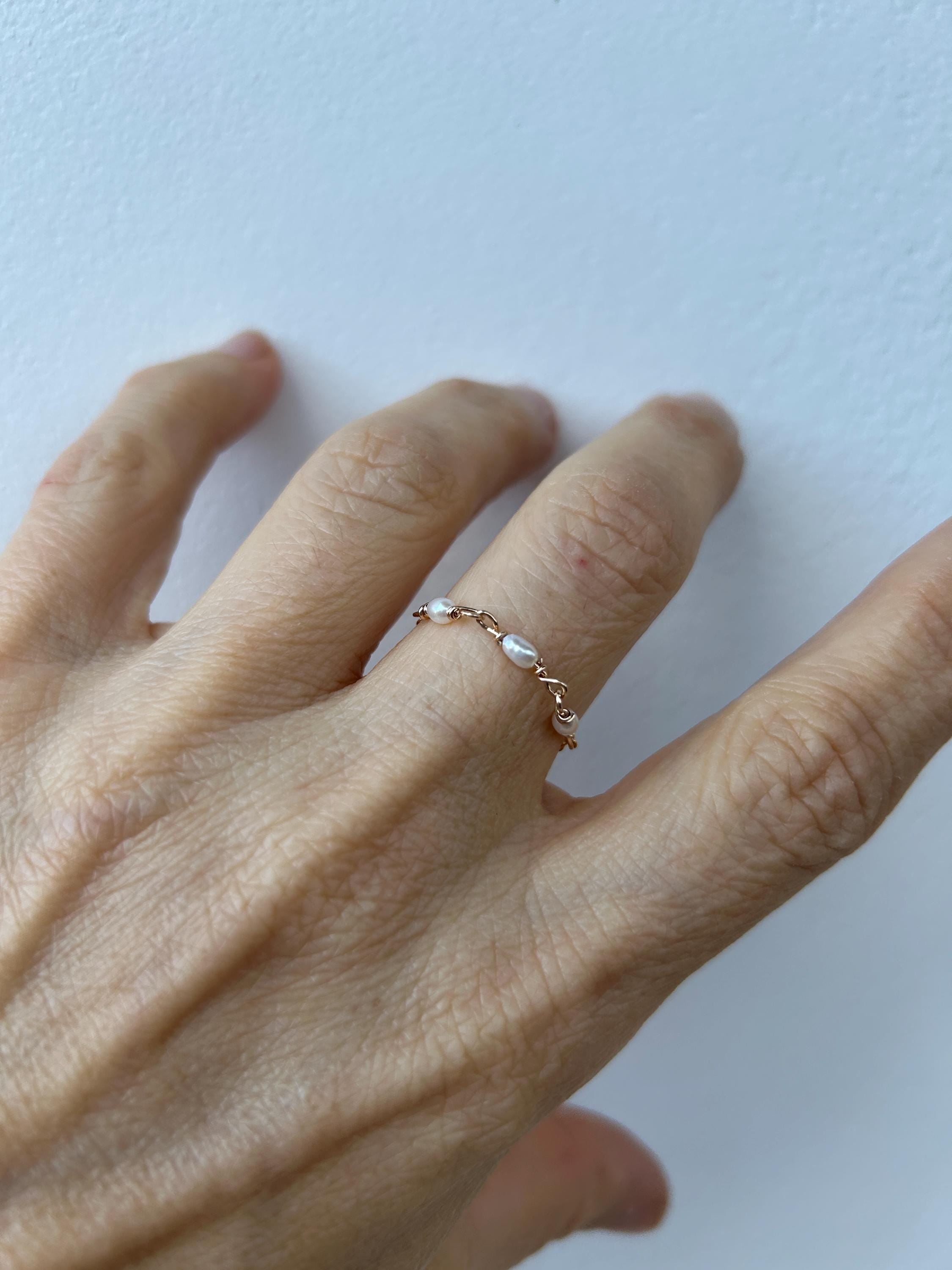 This little chain ring offers a fresh take on a traditional band ring. It is also very lightweight and comfortable to wear.